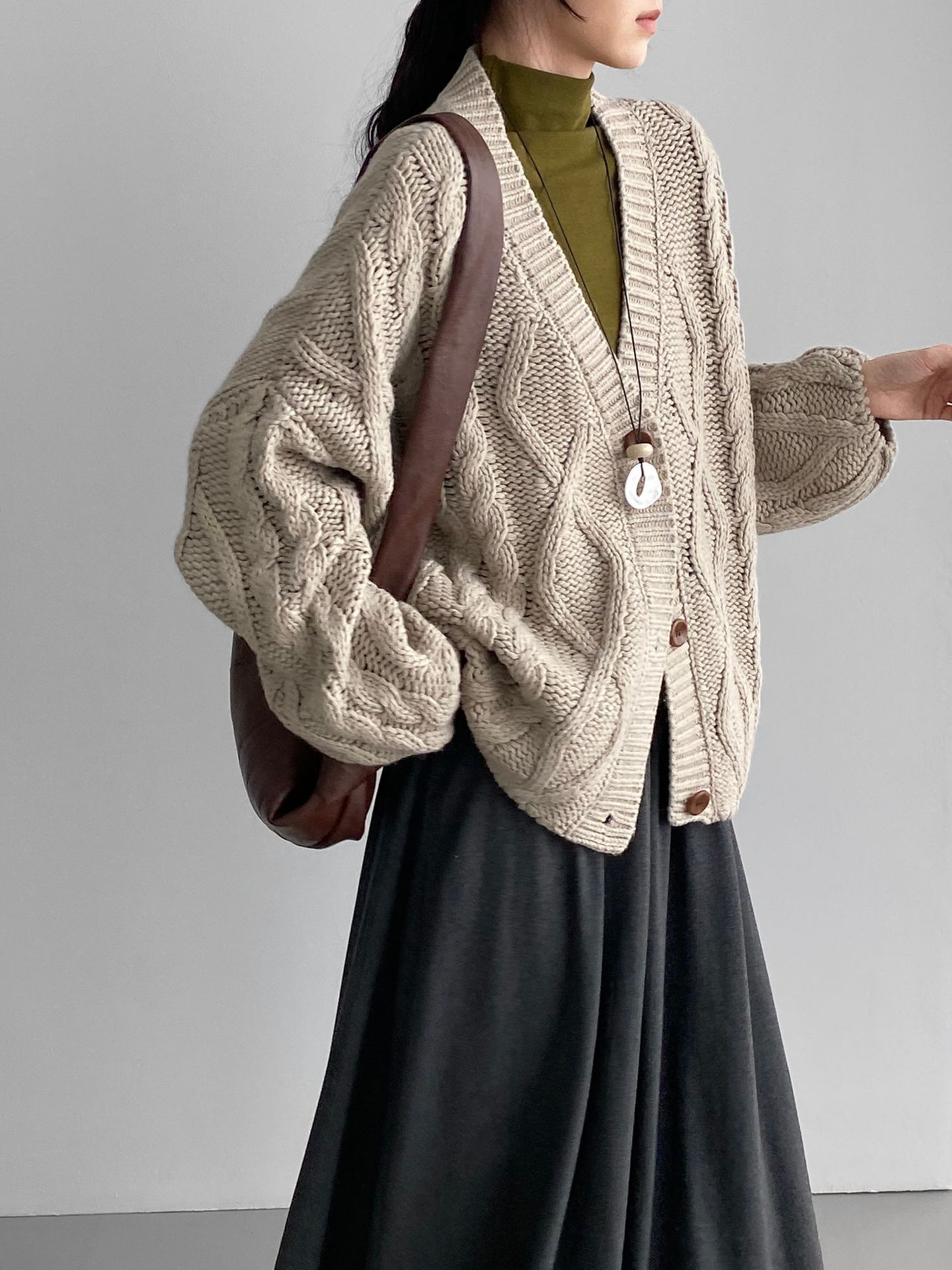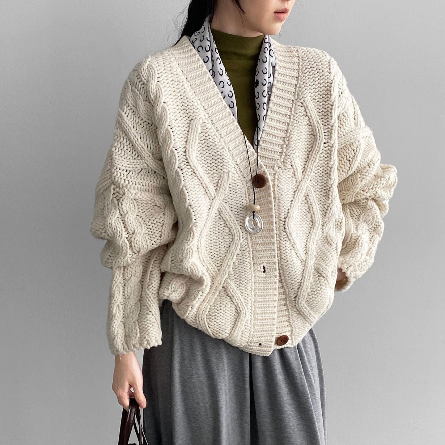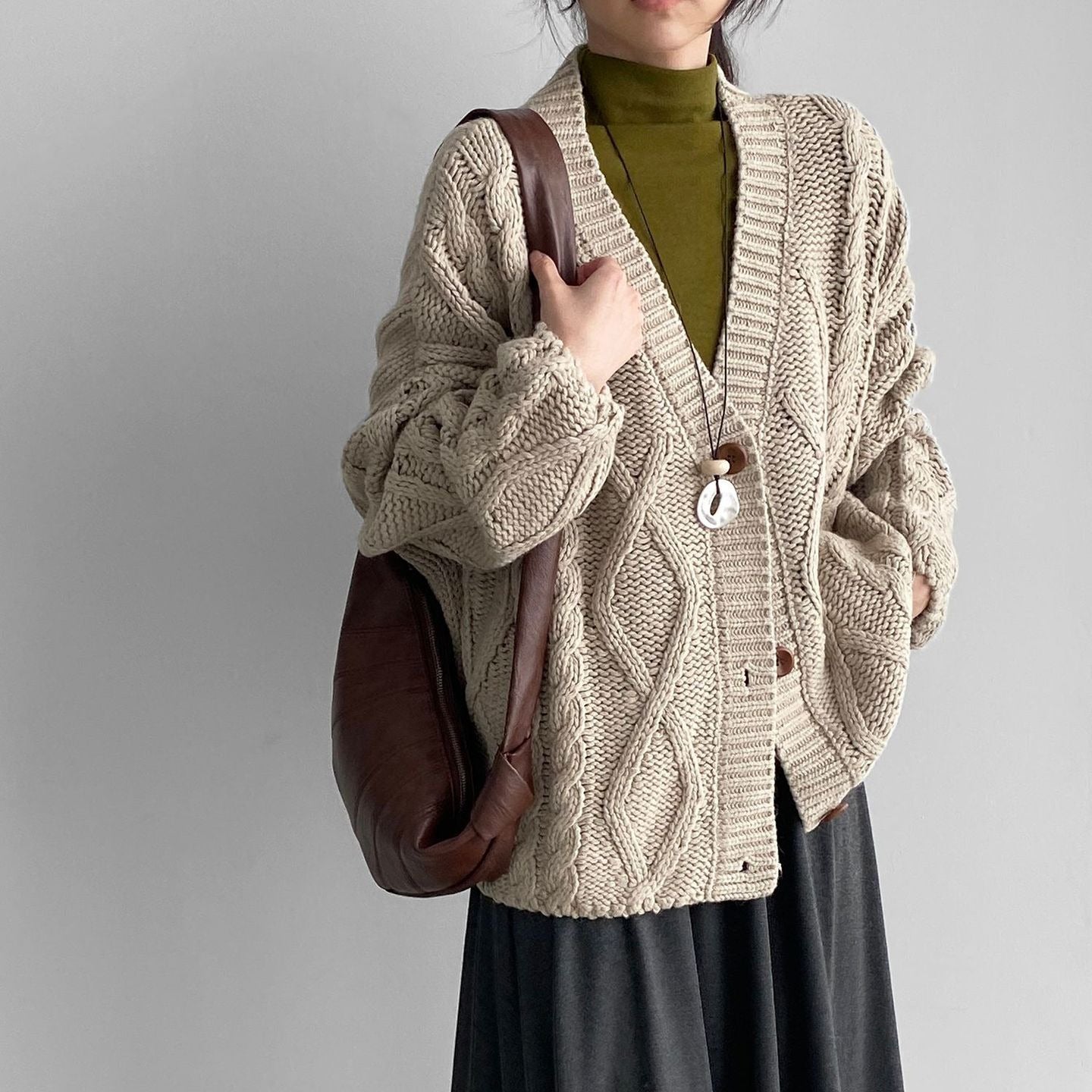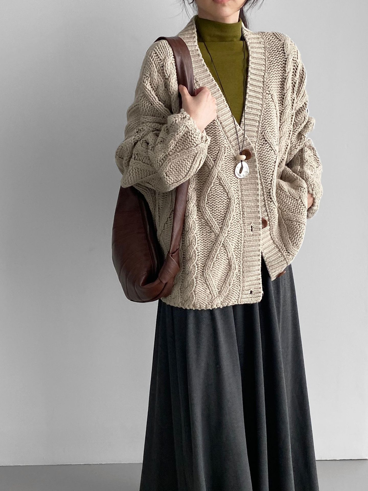 【アウター】秋冬新作 ヴィンテージ風 ゆったり 厚手ケーブルニット カーディガン【JZシリーズ】