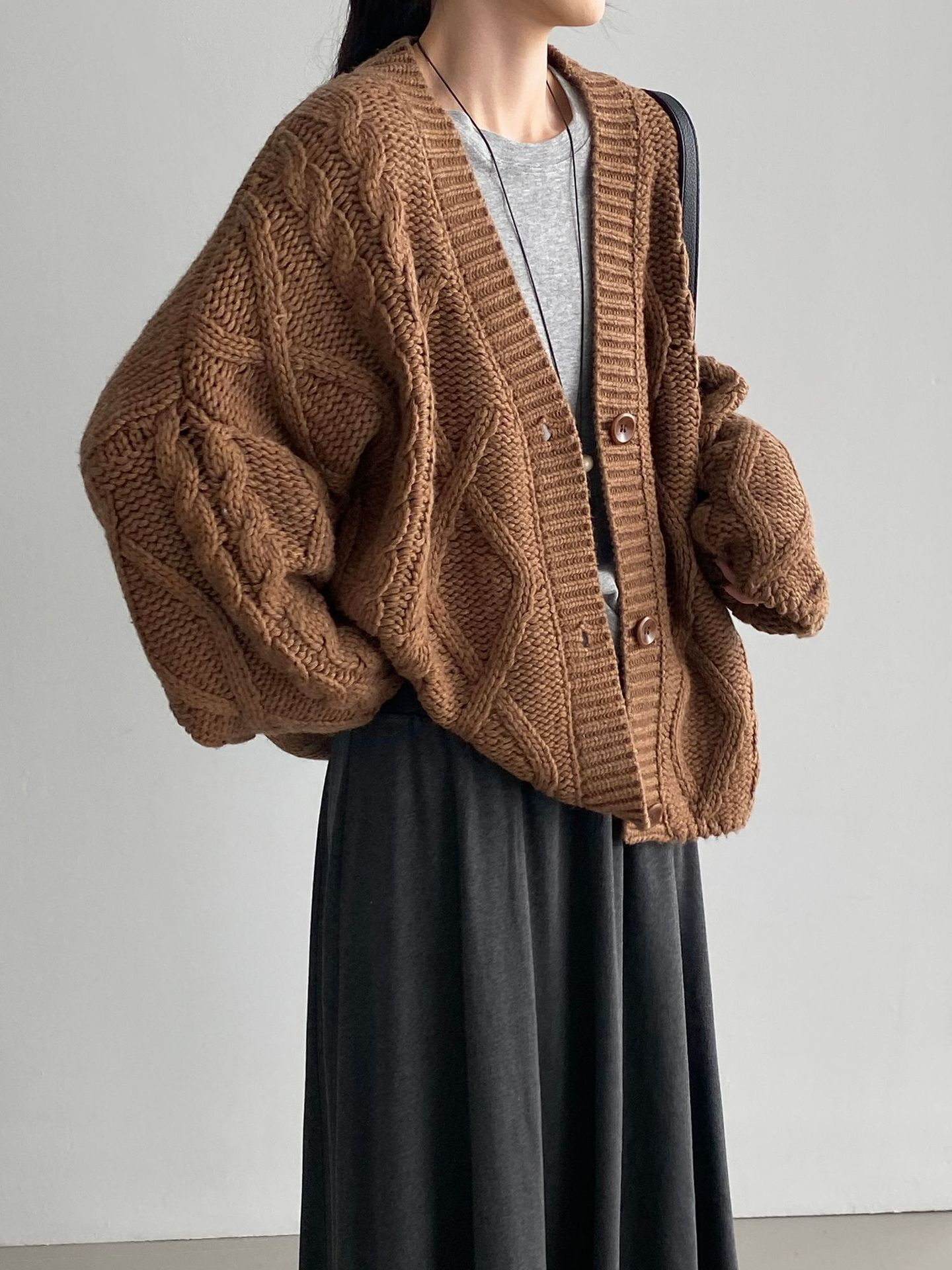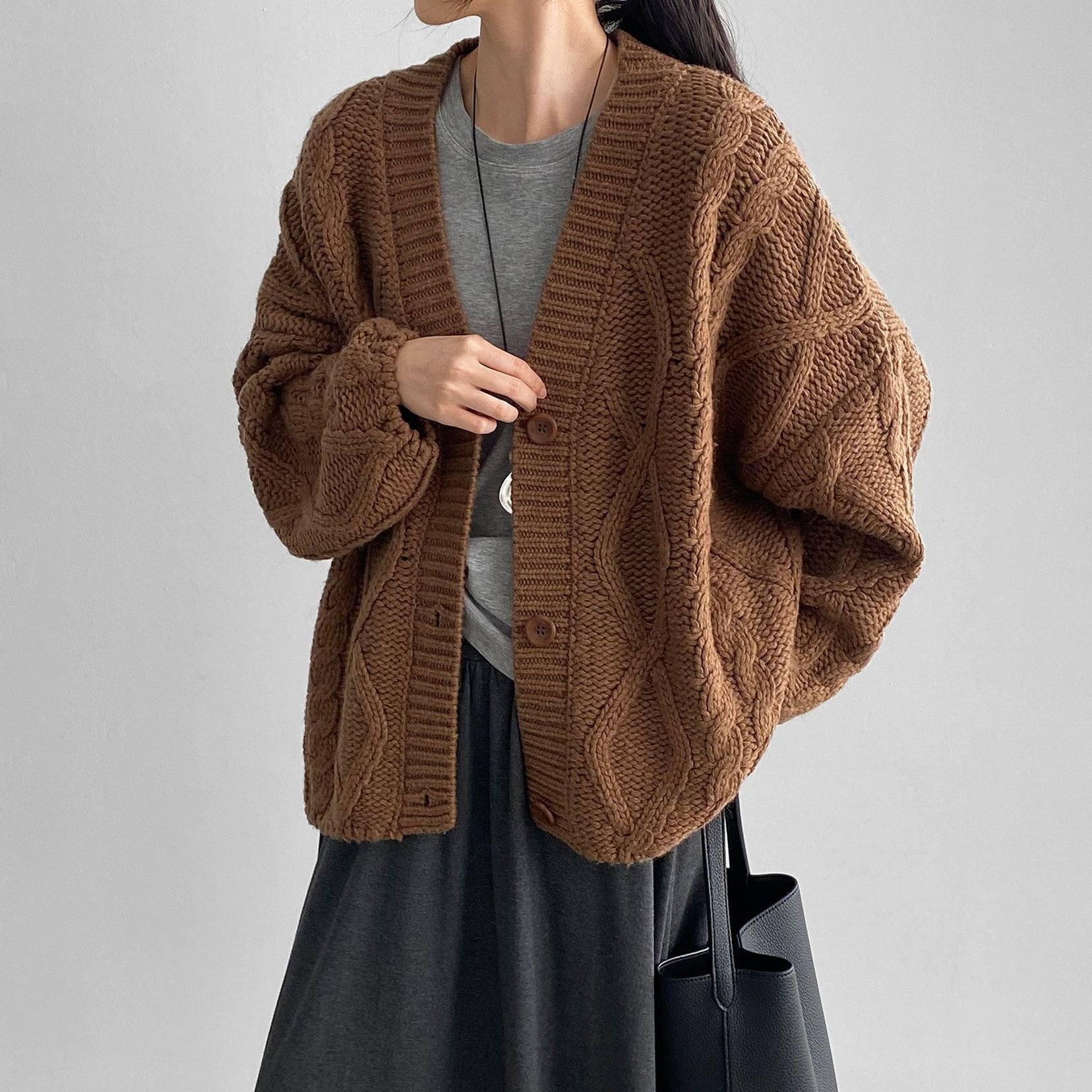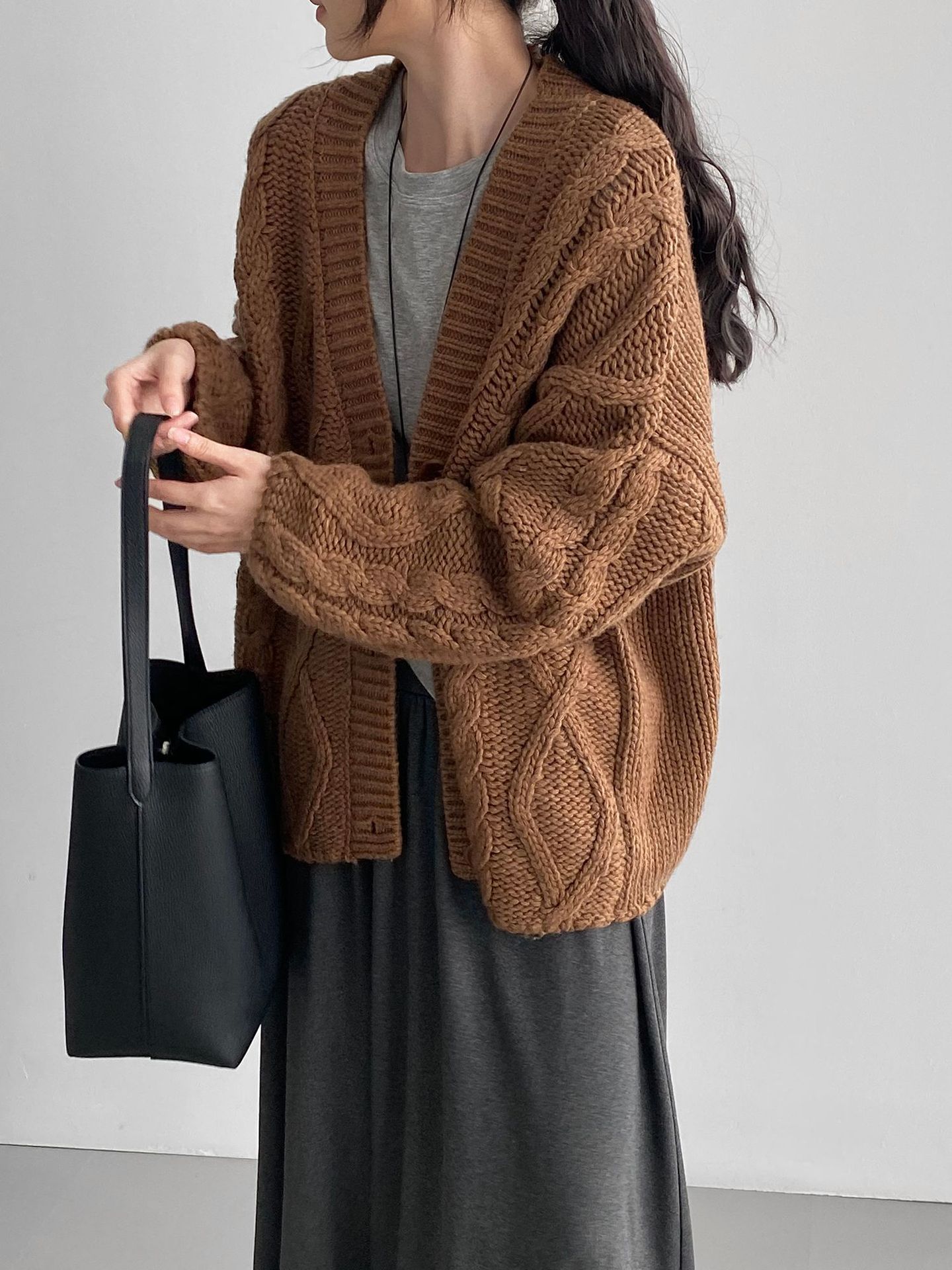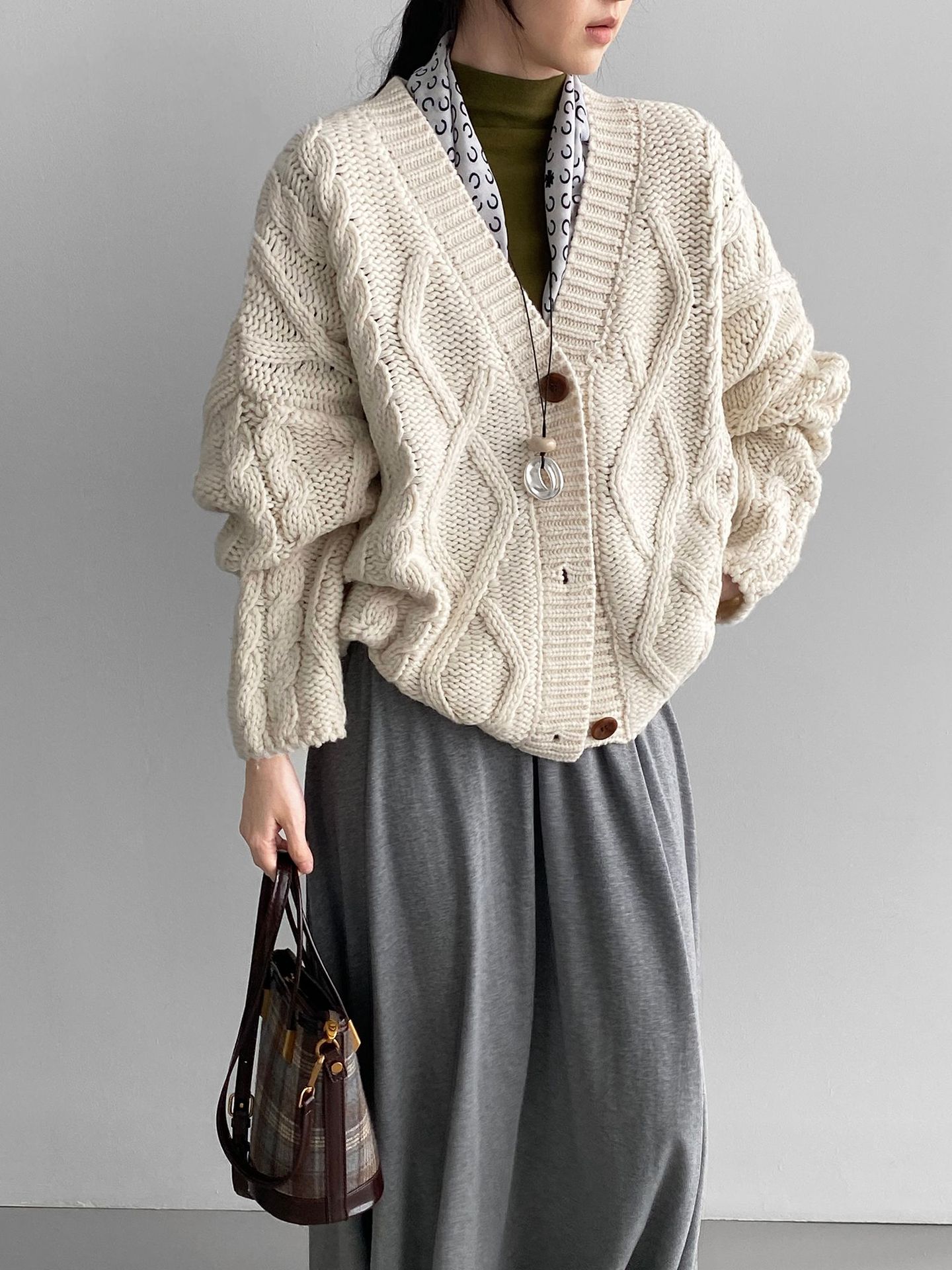 【アウター】秋冬新作 ヴィンテージ風 ゆったり 厚手ケーブルニット カーディガン【JZシリーズ】