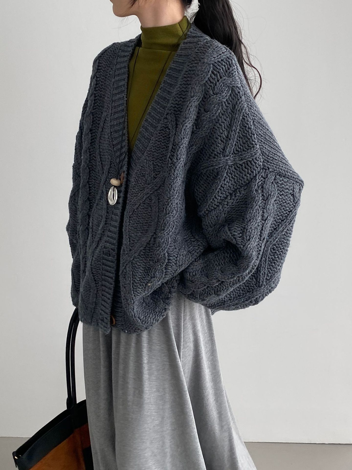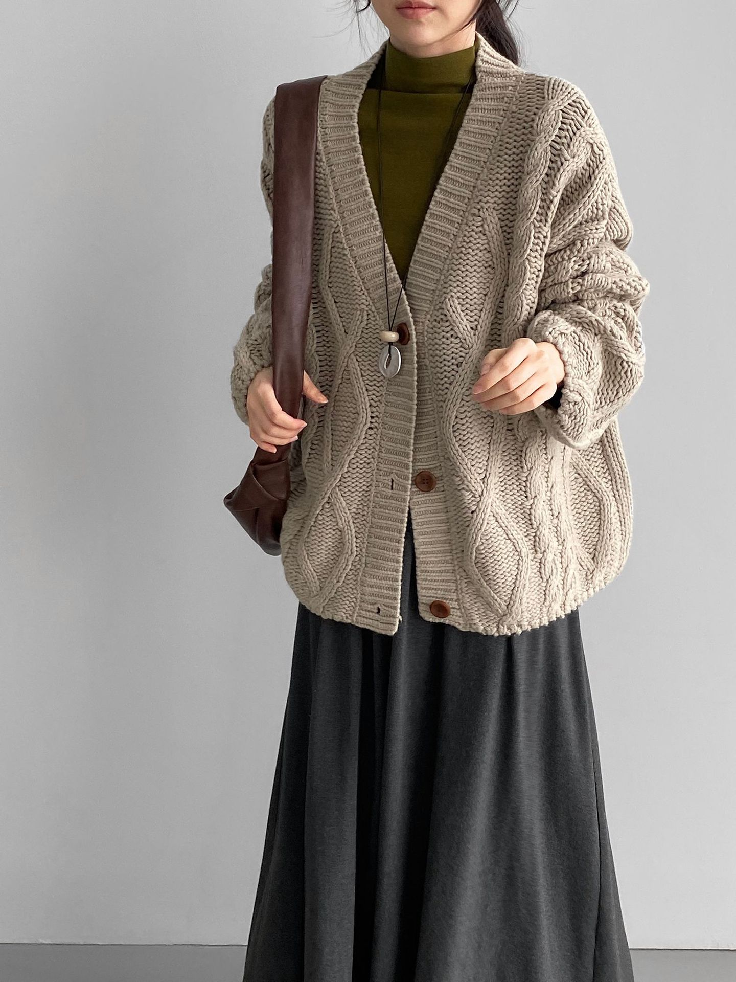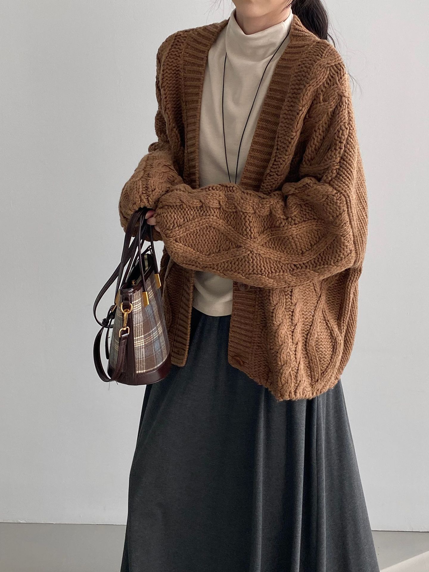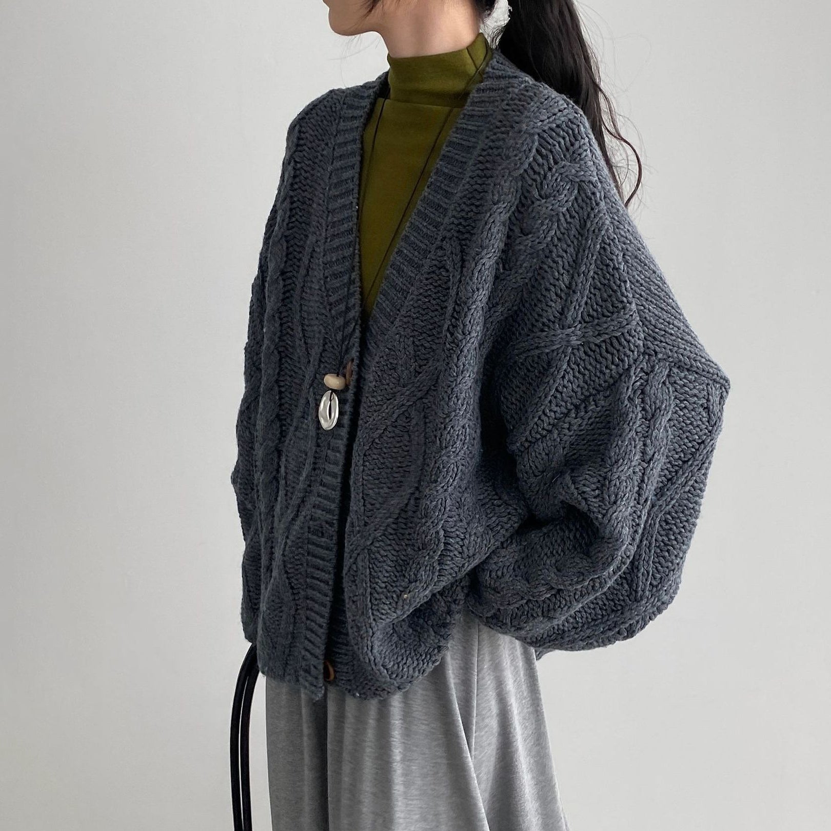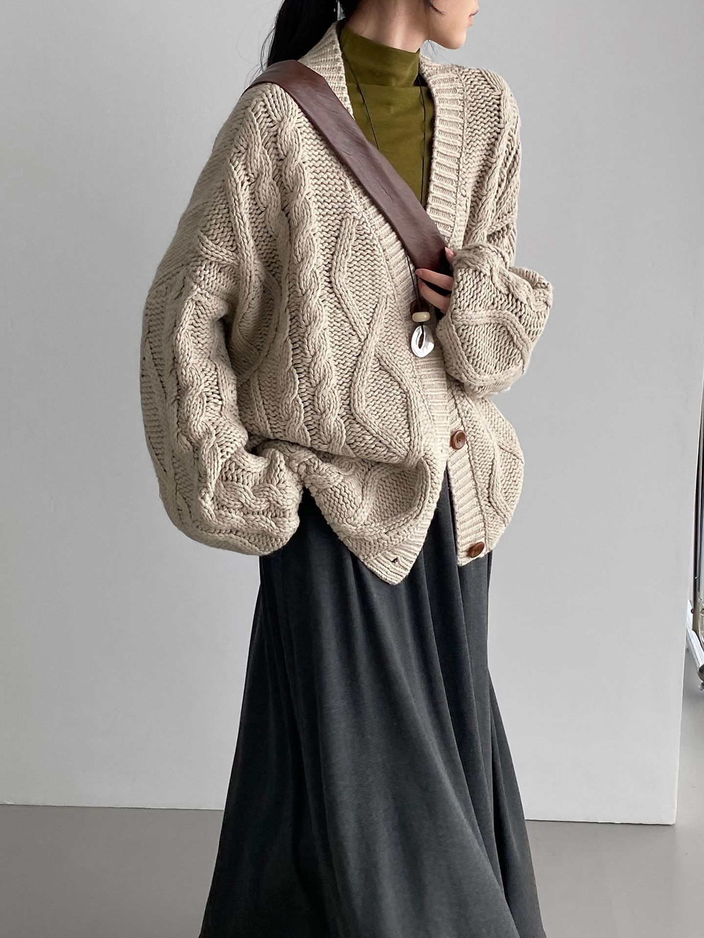 【アウター】秋冬新作 ヴィンテージ風 ゆったり 厚手ケーブルニット カーディガン【JZシリーズ】