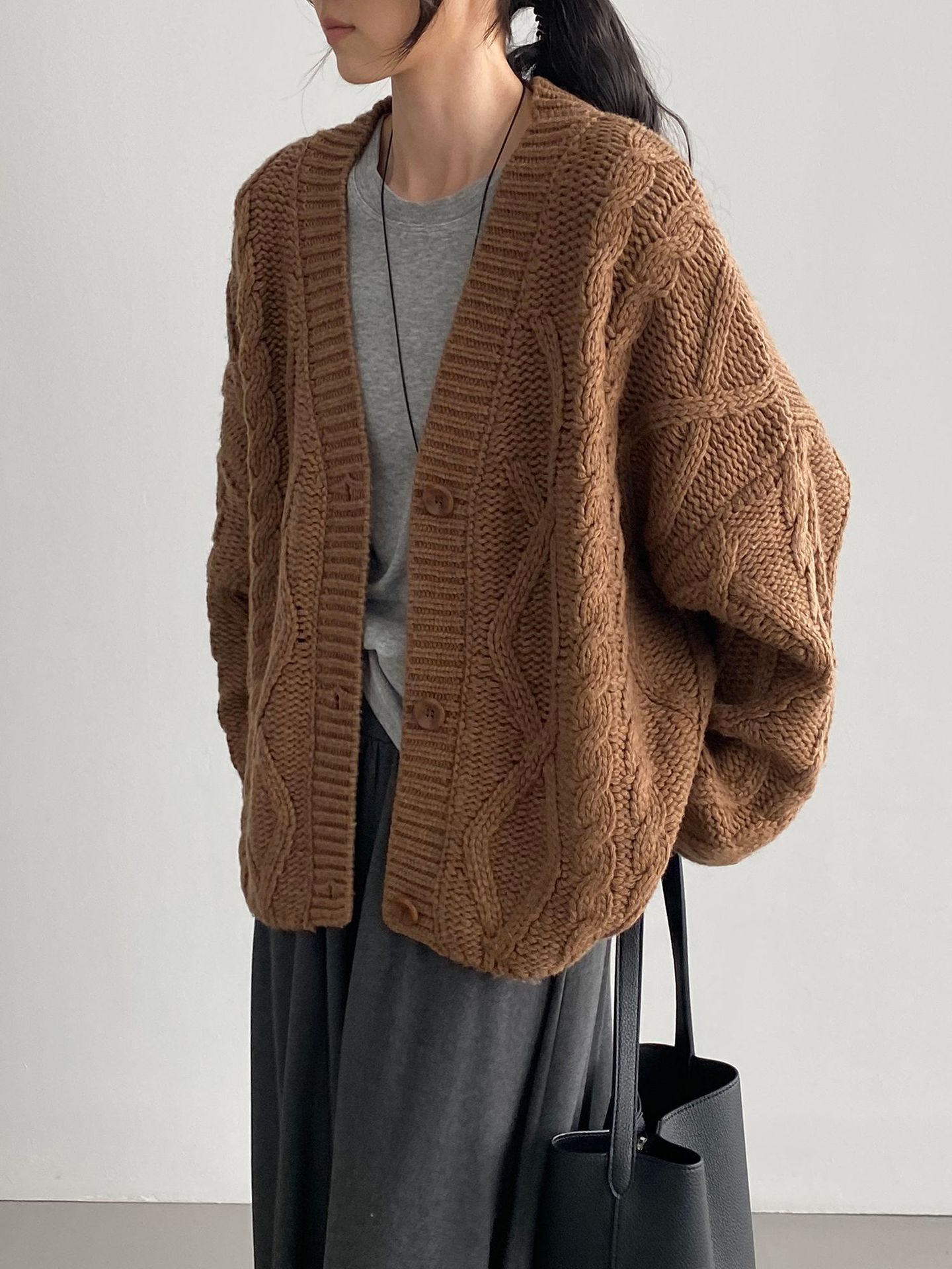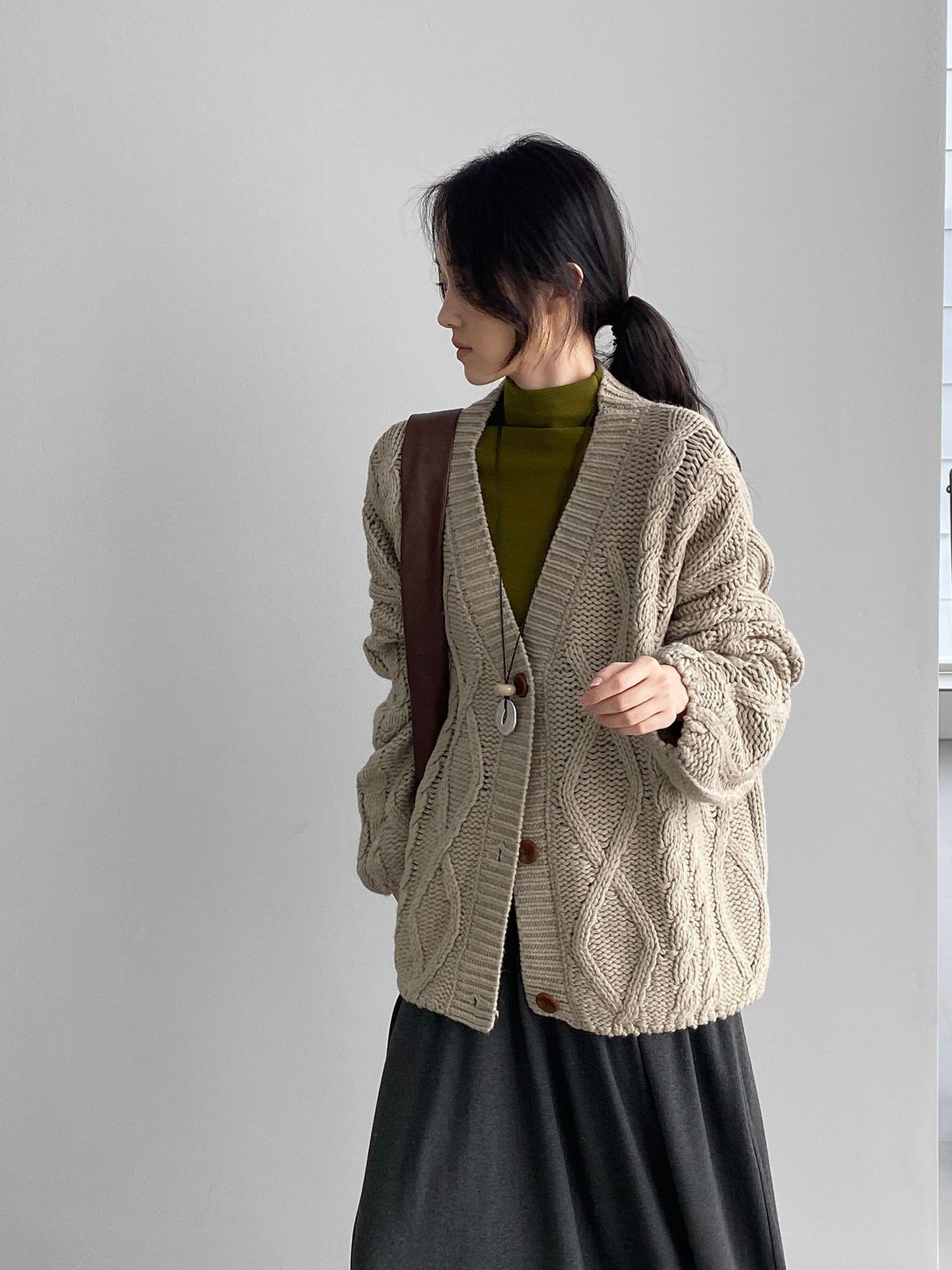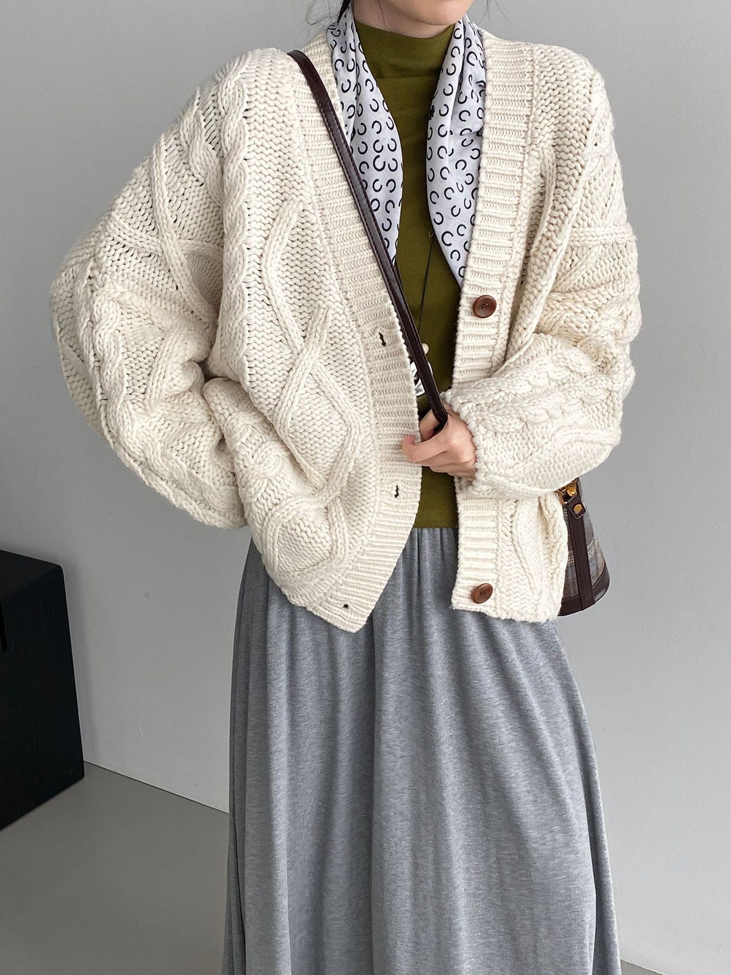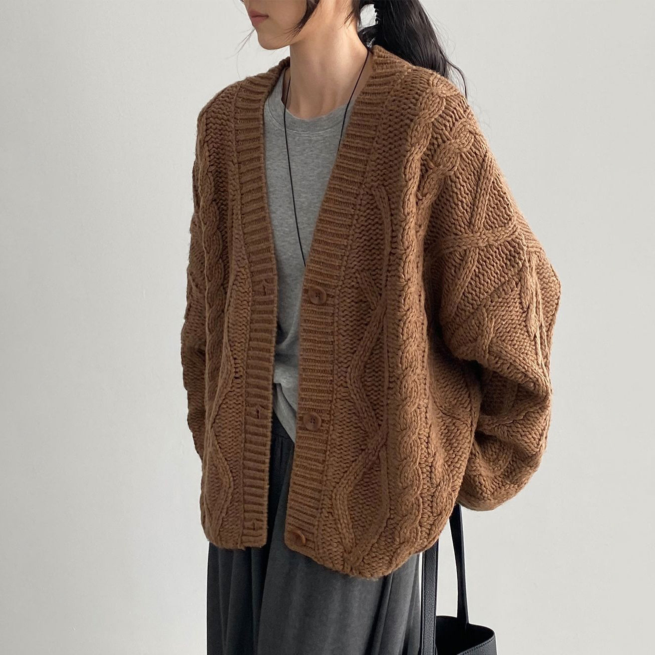 【アウター】秋冬新作 ヴィンテージ風 ゆったり 厚手ケーブルニット カーディガン【JZシリーズ】
