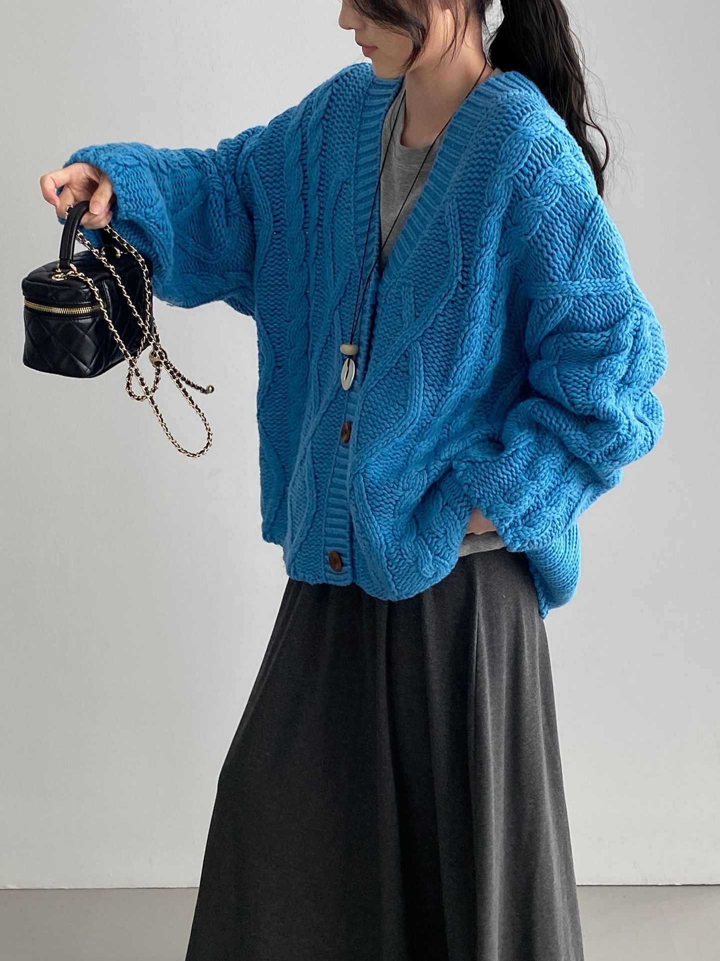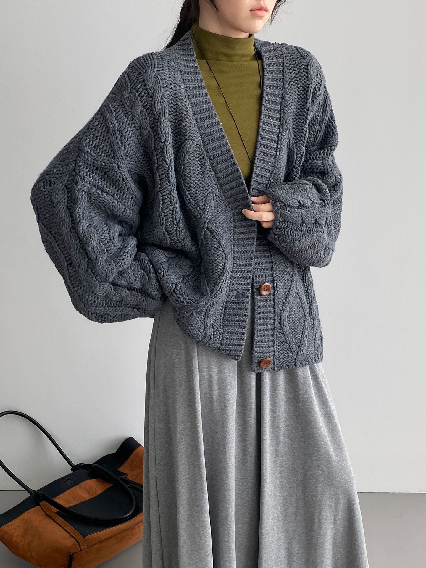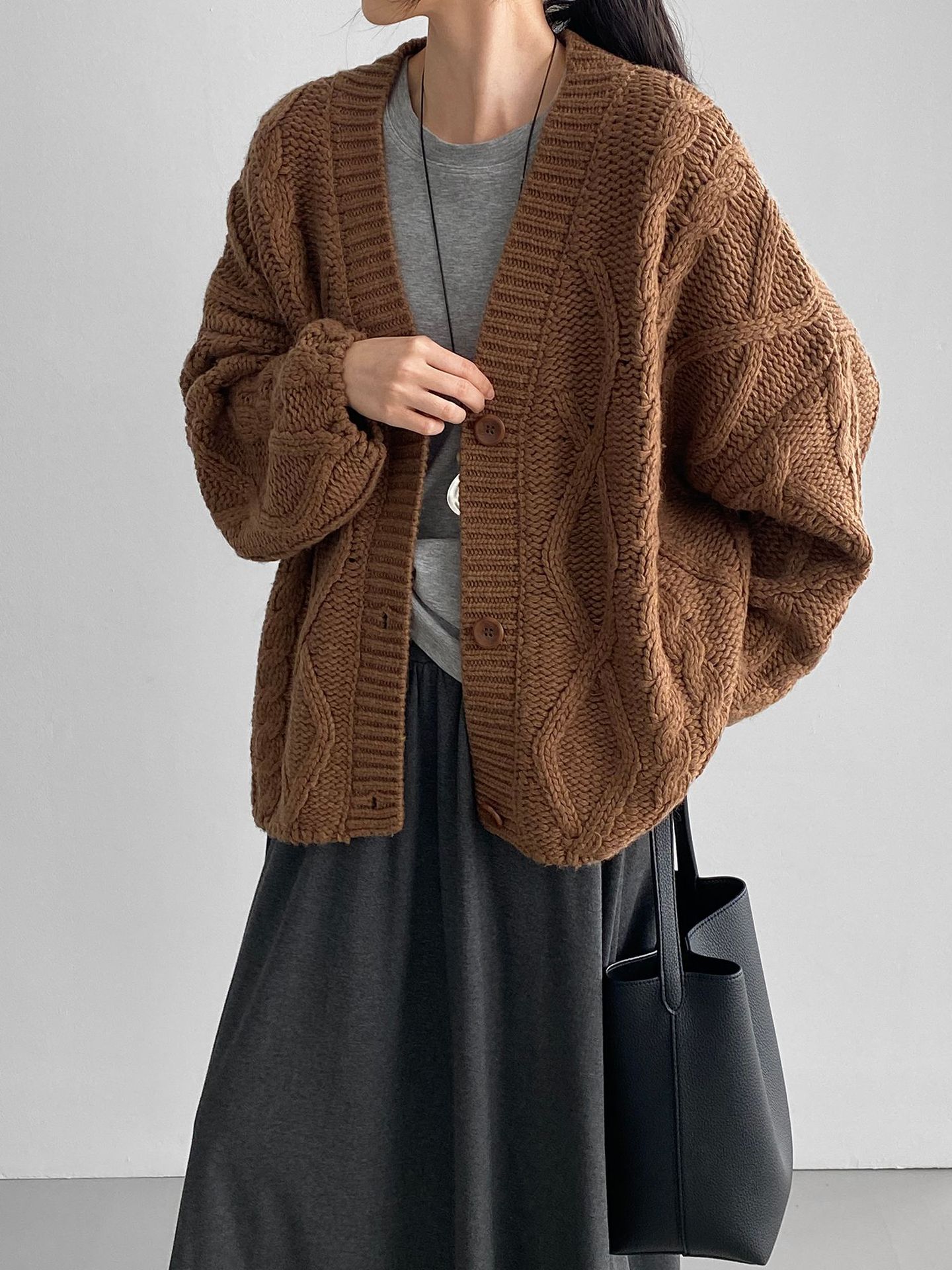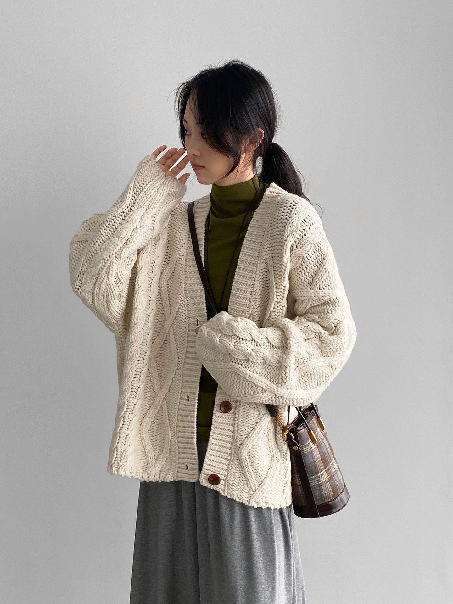 【アウター】秋冬新作 ヴィンテージ風 ゆったり 厚手ケーブルニット カーディガン【JZシリーズ】