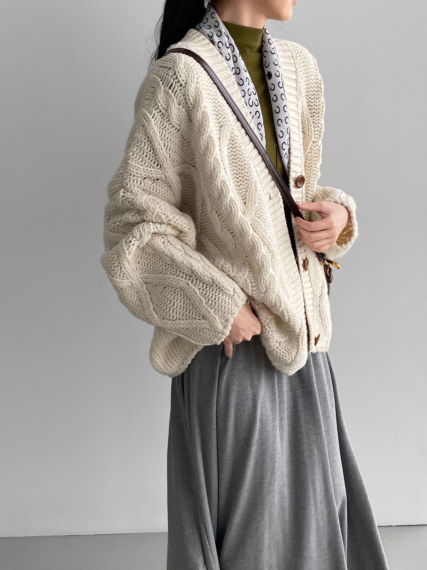 【商品名】【アウター】秋冬新作 ヴィンテージ風 ゆったり 厚手ケーブルニット カーディガン【JZシリーズ】