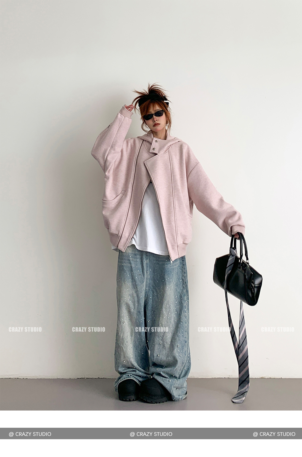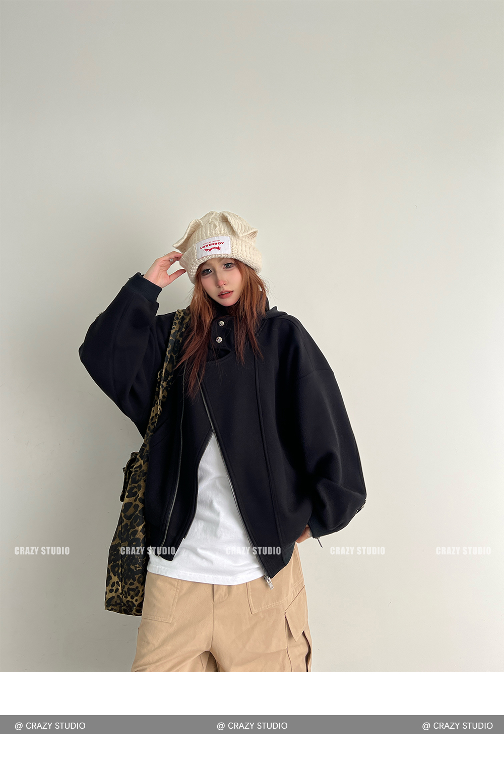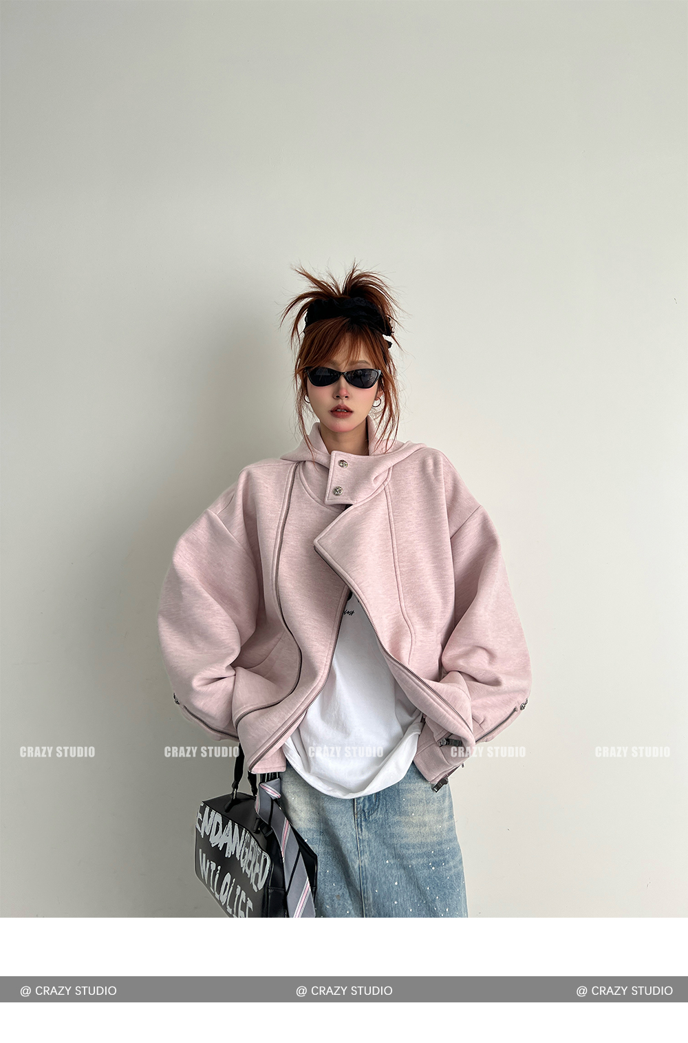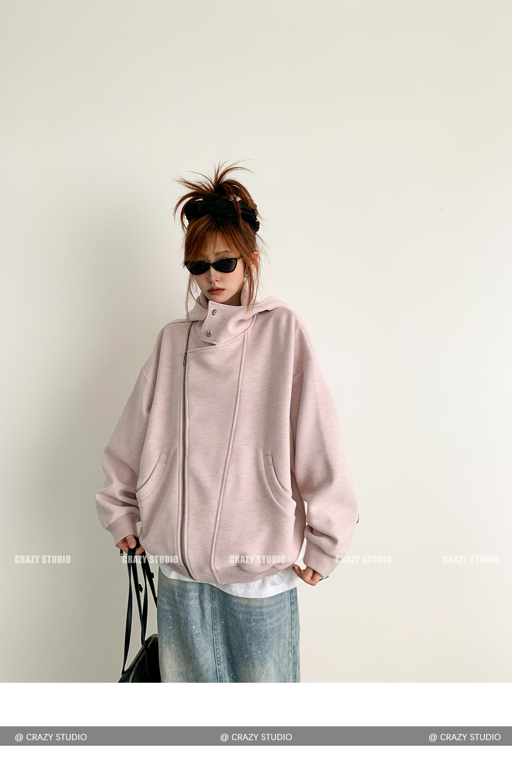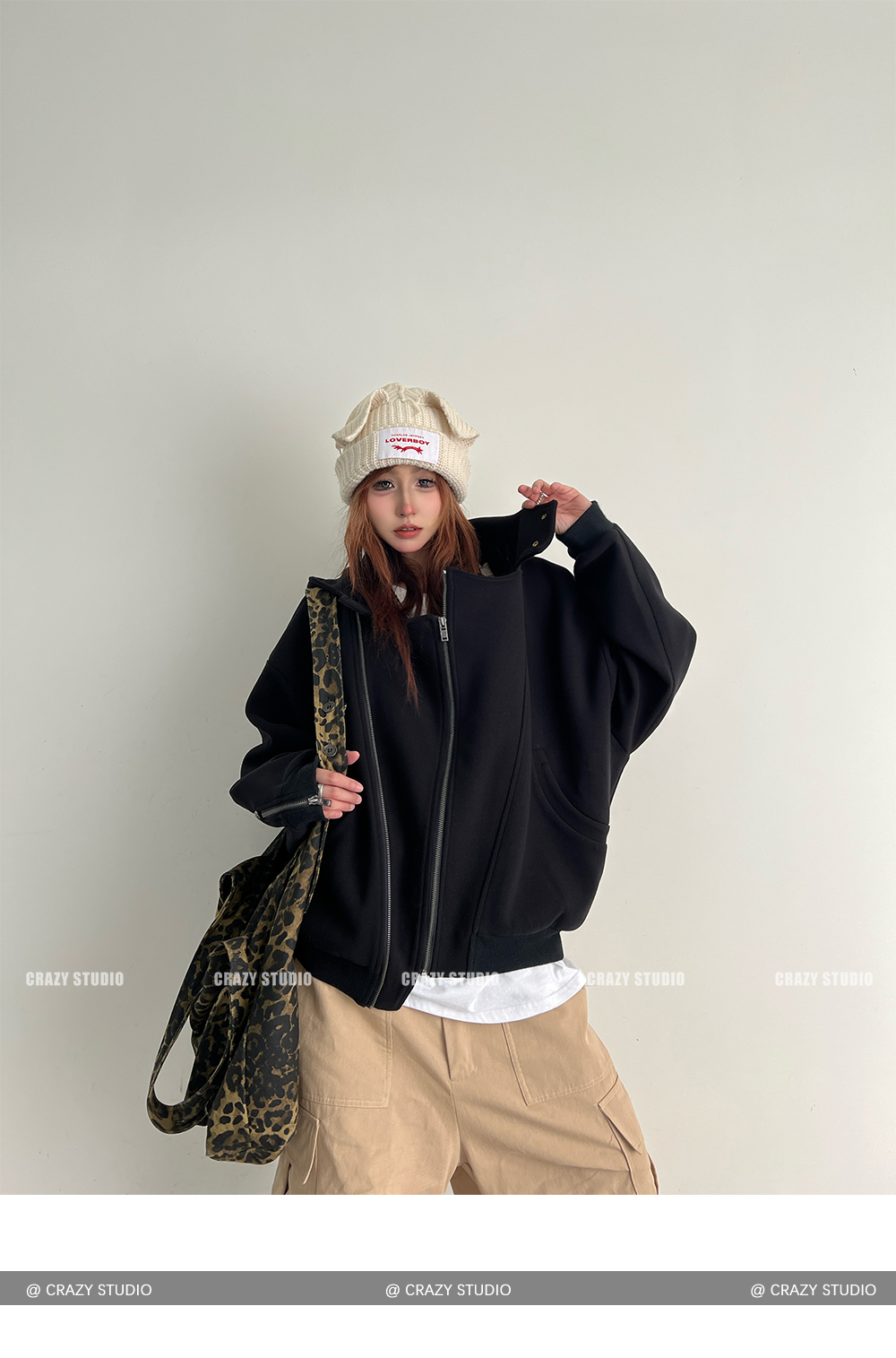 【商品名】【アウター】アメリカンヴィンテージ ユニーク カジュアル ゆったり フード付き ジップアップスウェット レディースジャケット【FCシリーズ】【15~20日内発送】