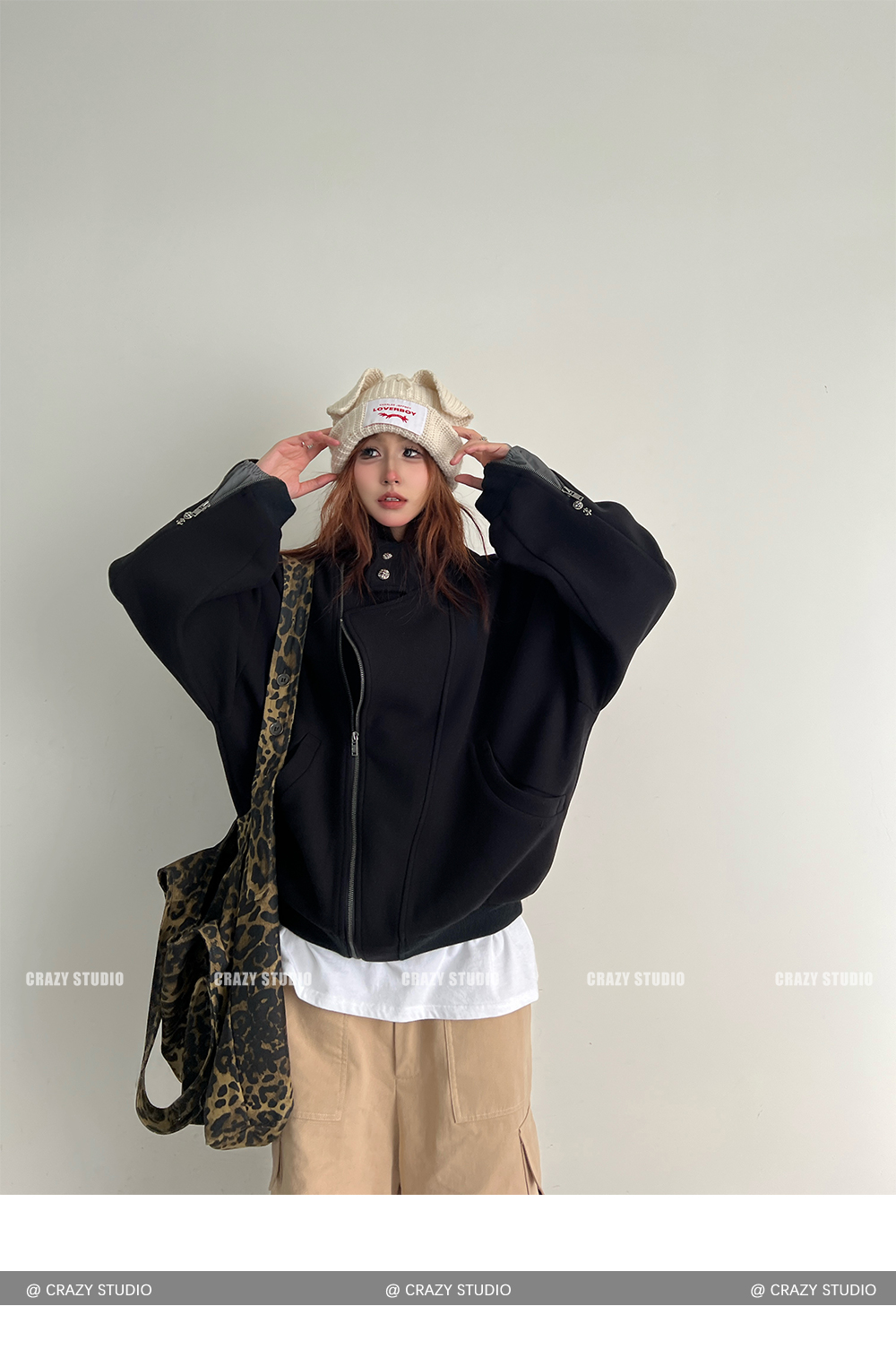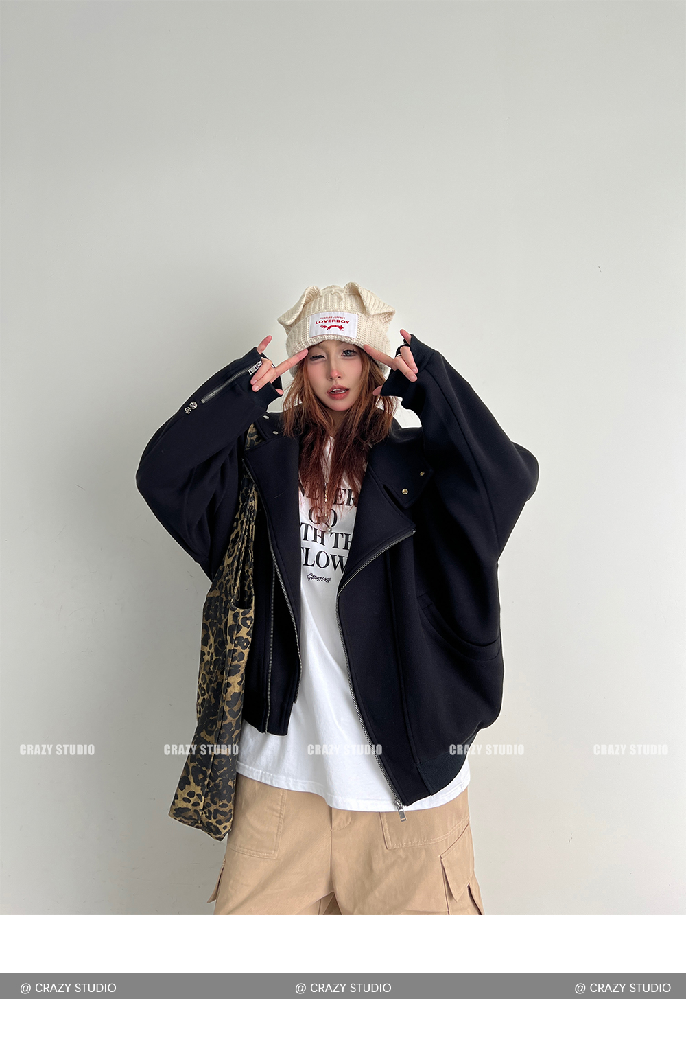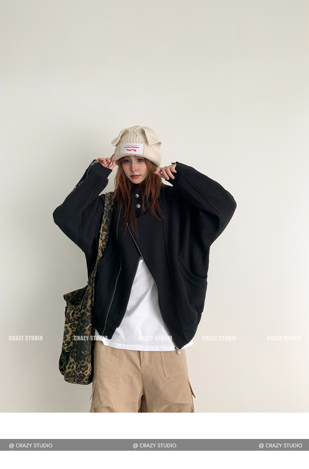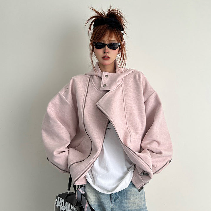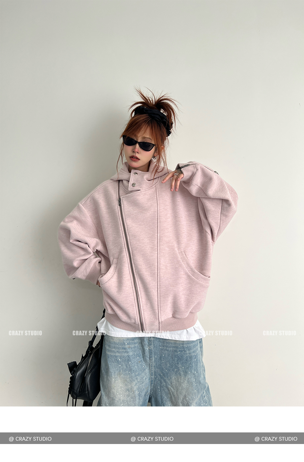 【商品名】【アウター】アメリカンヴィンテージ ユニーク カジュアル ゆったり フード付き ジップアップスウェット レディースジャケット【FCシリーズ】【15~20日内発送】