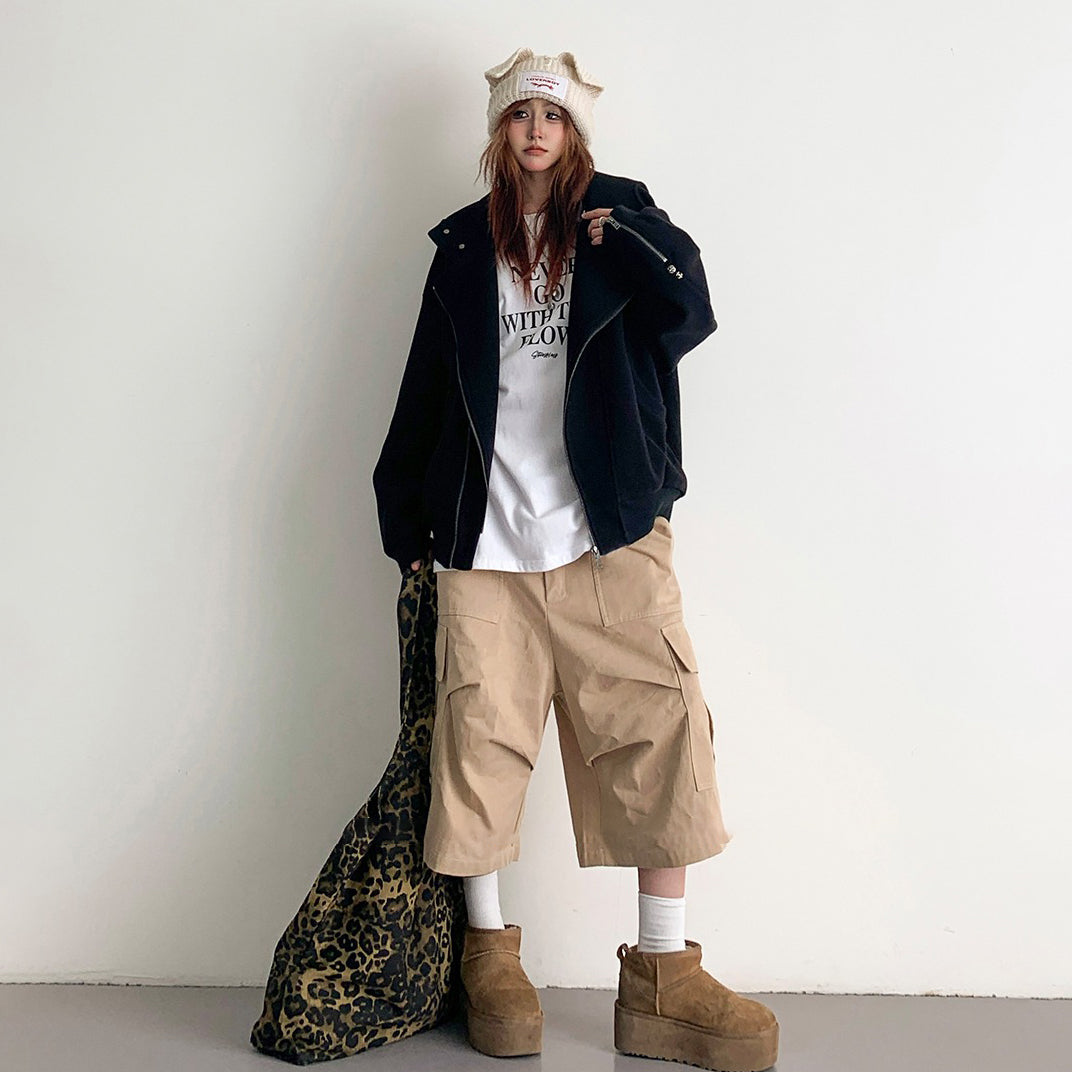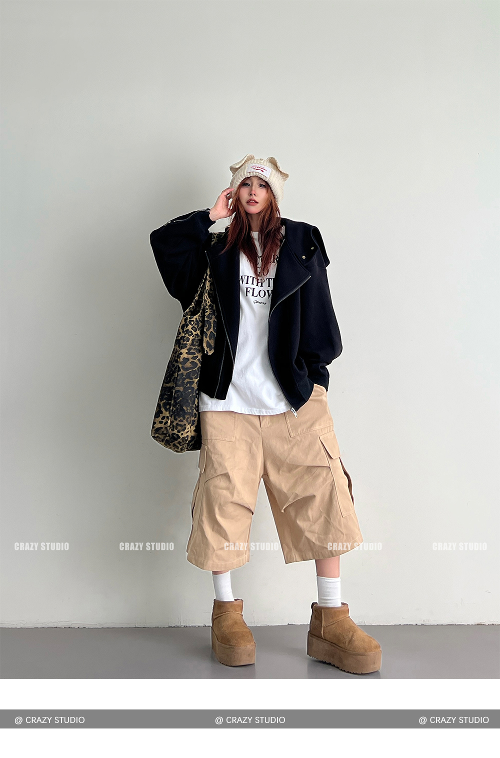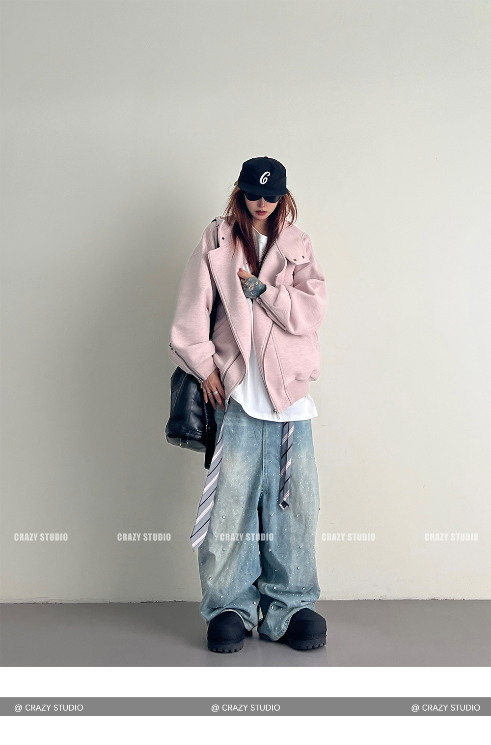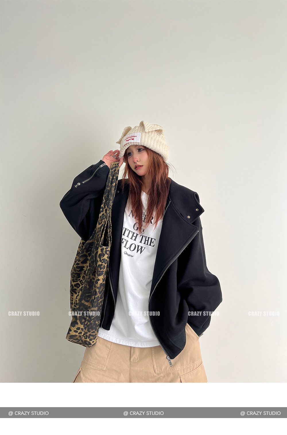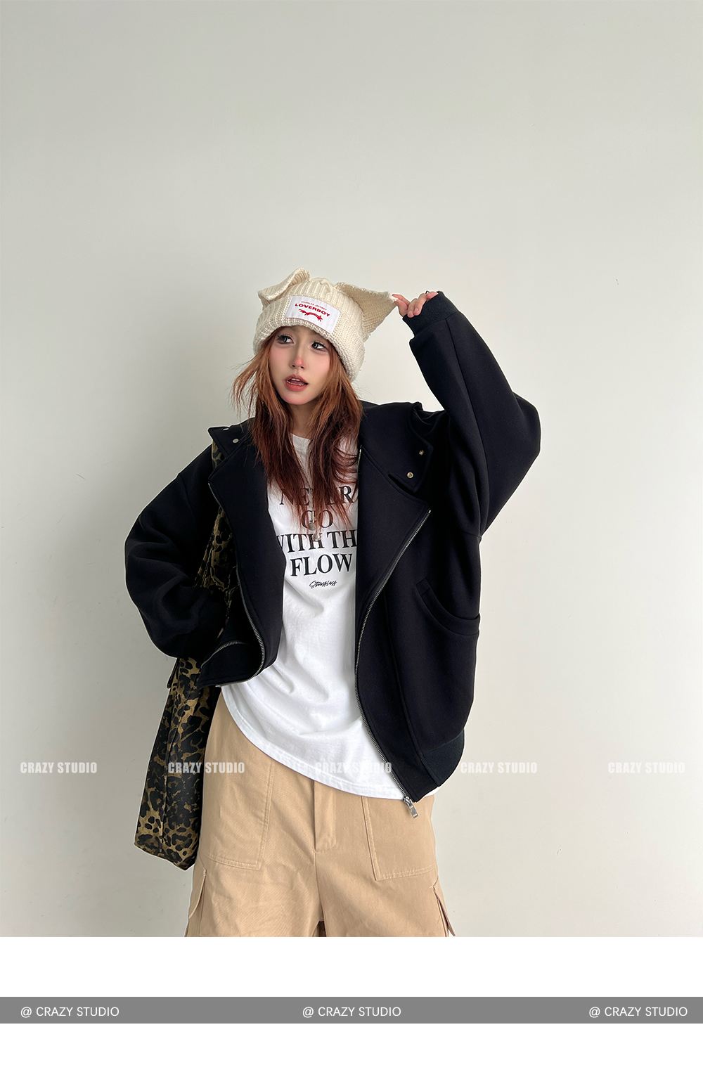 【商品名】【アウター】アメリカンヴィンテージ ユニーク カジュアル ゆったり フード付き ジップアップスウェット レディースジャケット【FCシリーズ】【15~20日内発送】