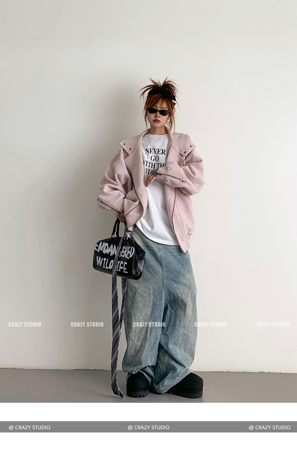 【トップス】💖カップルでも着られる!ワイドフーディ 裏起毛 重工パッチ&刺繍 レディース 冬新作【FCシリーズ】