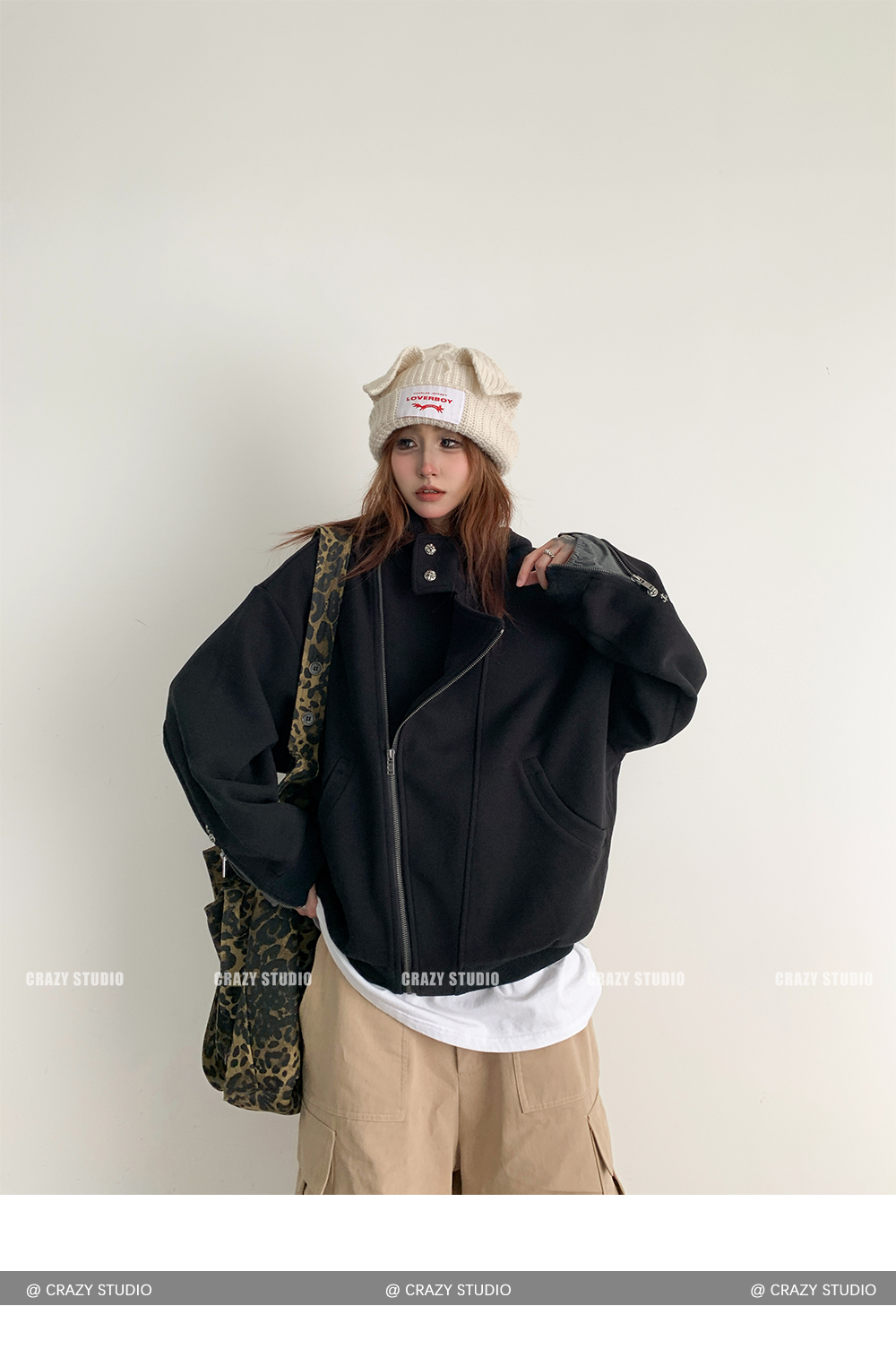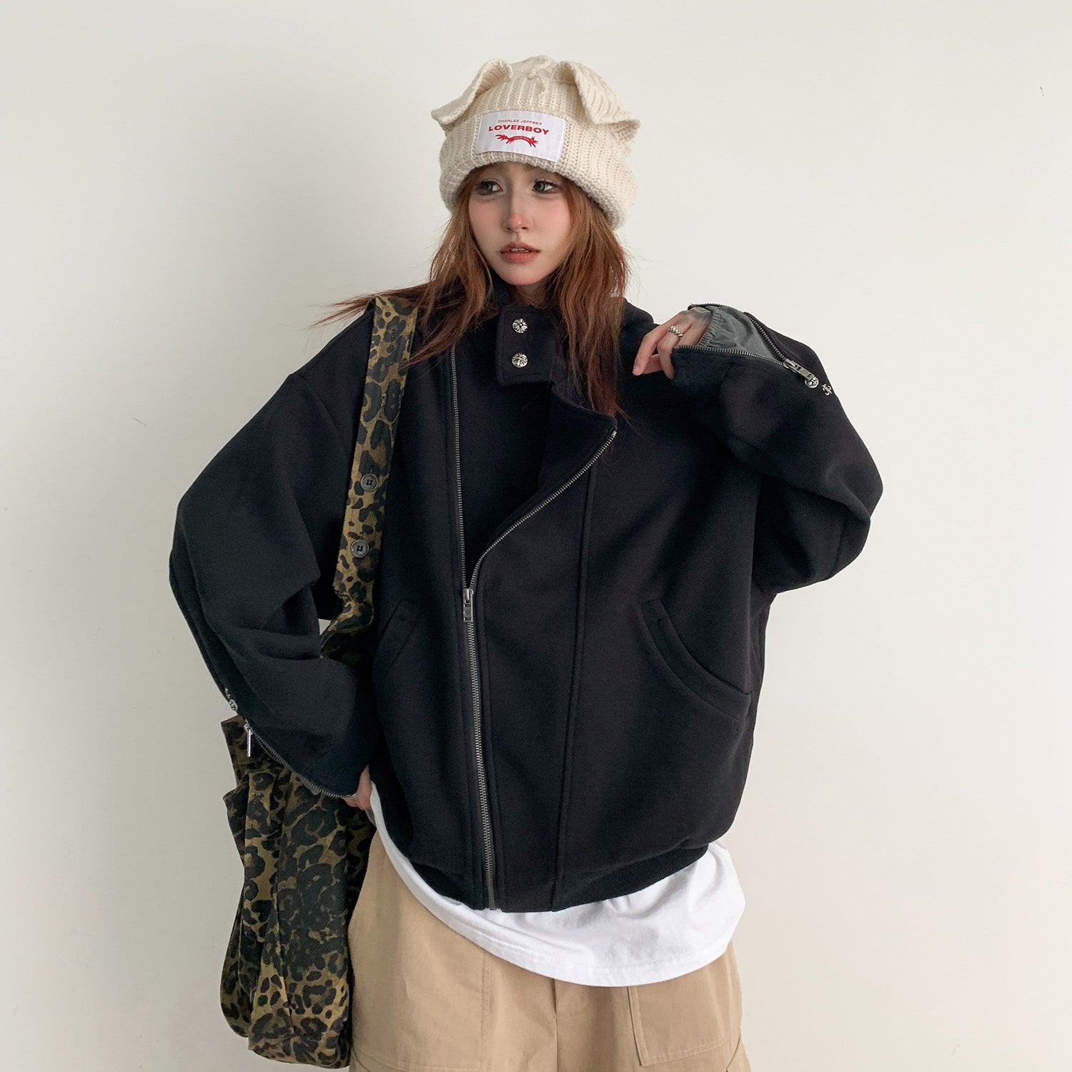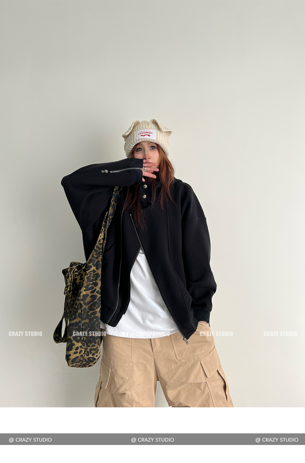 【トップス】ルーズ ファスナー付き 立襟 春 秋 冬 プルオーバー ニット セーター 【FCシリーズ】