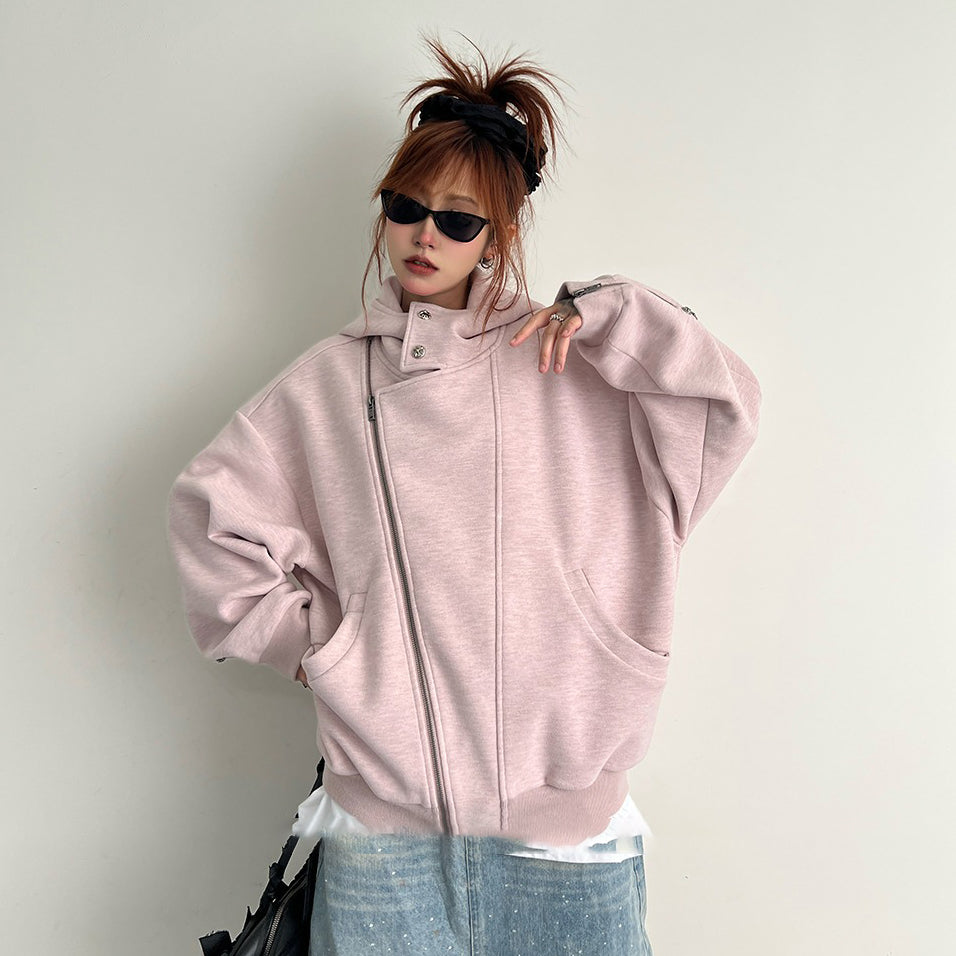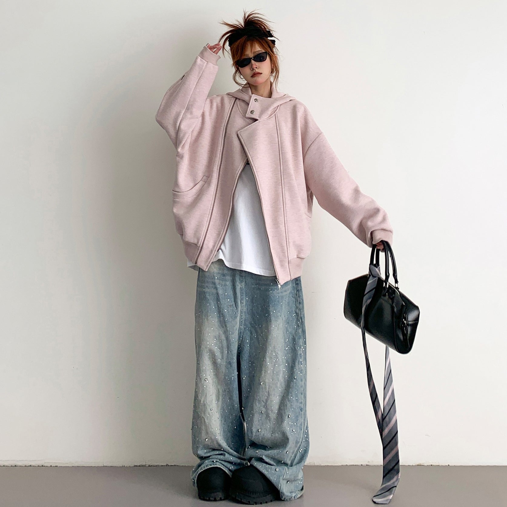 【アウター】アメリカンヴィンテージ ユニーク カジュアル ゆったり フード付き ジップアップスウェット レディースジャケット【FCシリーズ】【15~20日内発送】