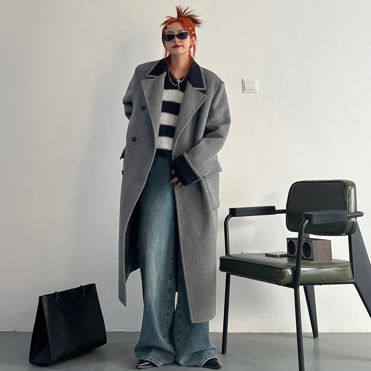 【アウター】韓国デザイン ヴィンテージ ツイードコート 中厚 中長丈 レディース 秋冬【FCシリーズ】