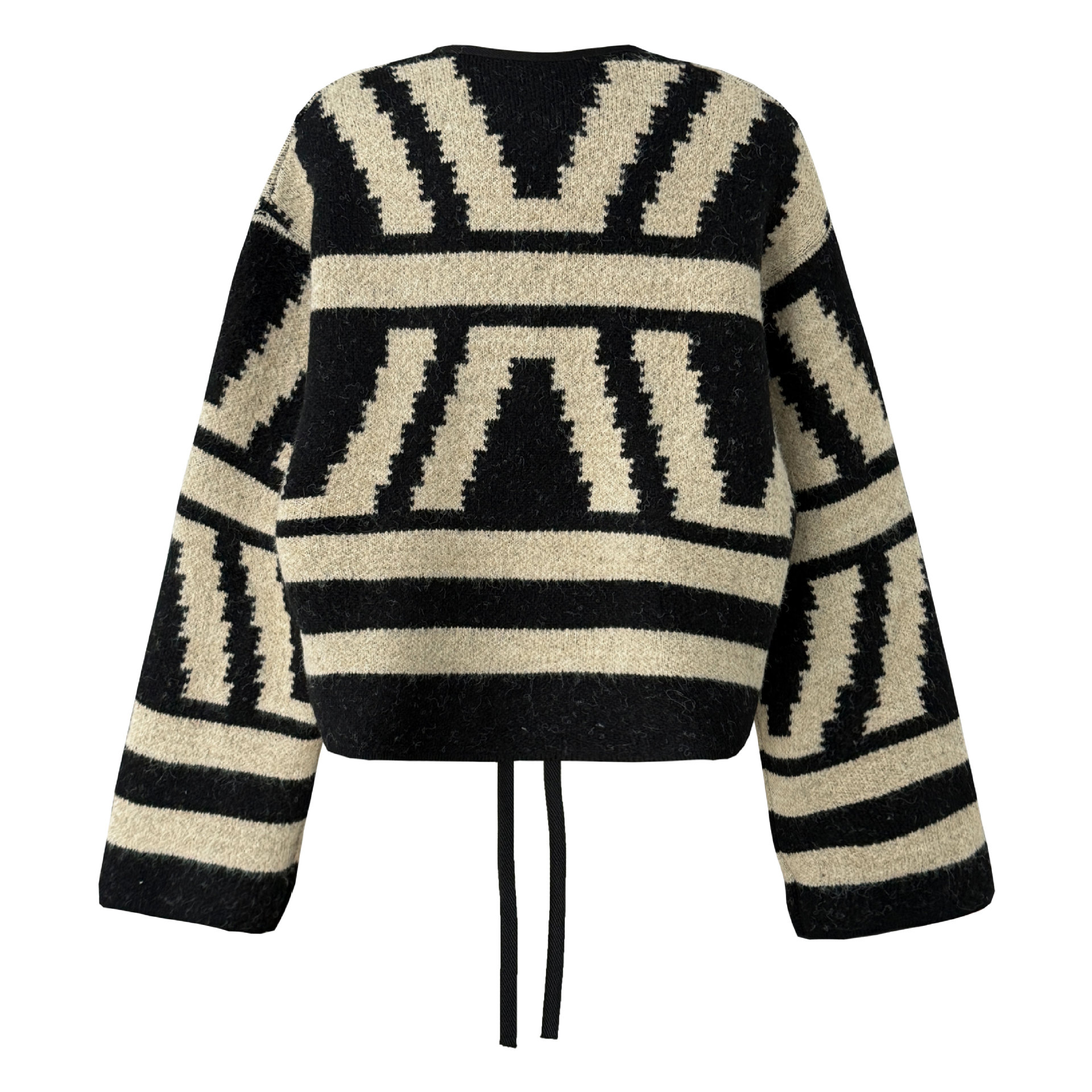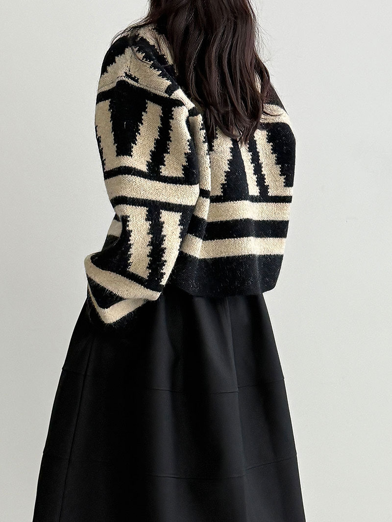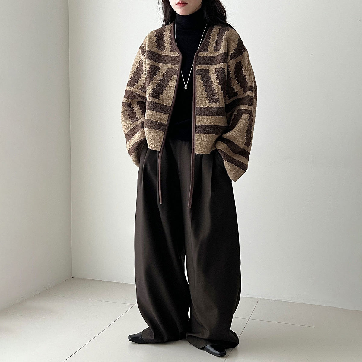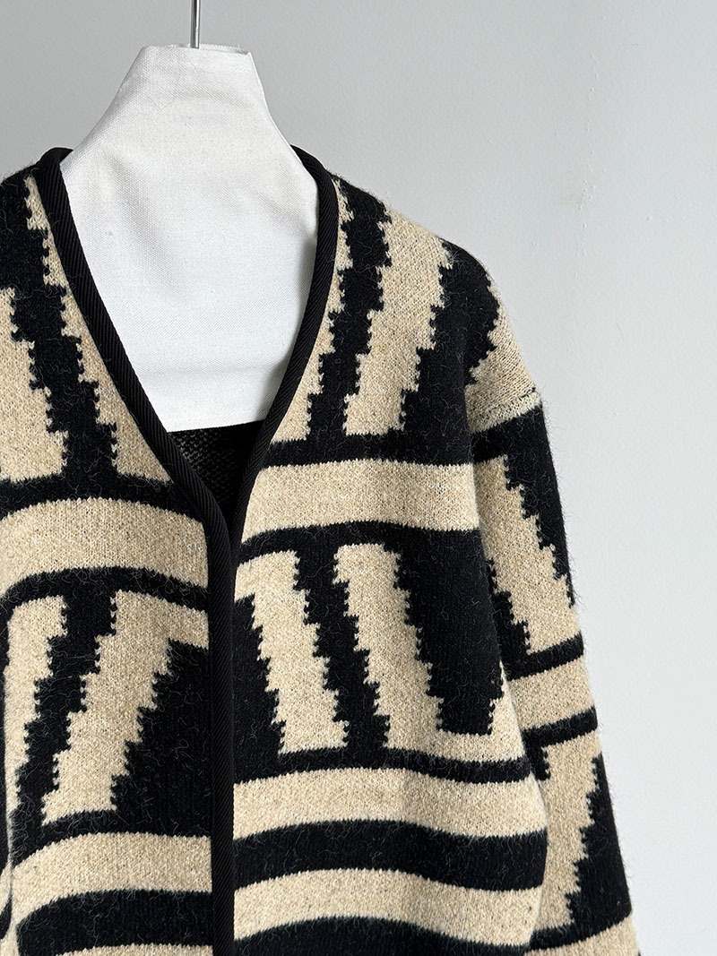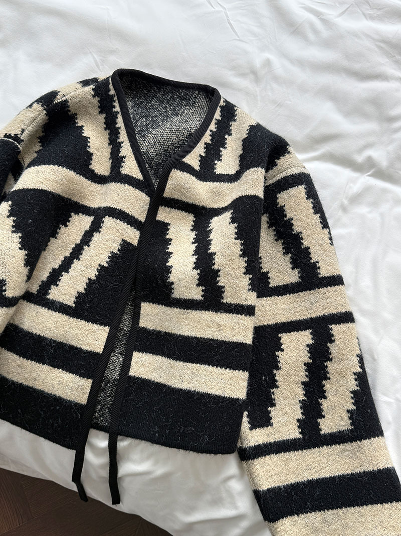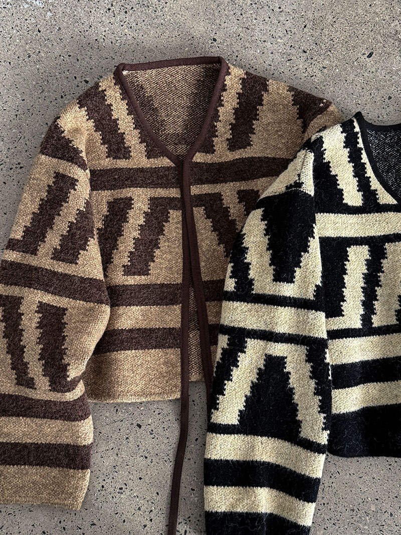 【アウター】秋新作 幾何柄 ニットカーディガン レディース レトロ ゆったり ショート丈【JZシリーズ】