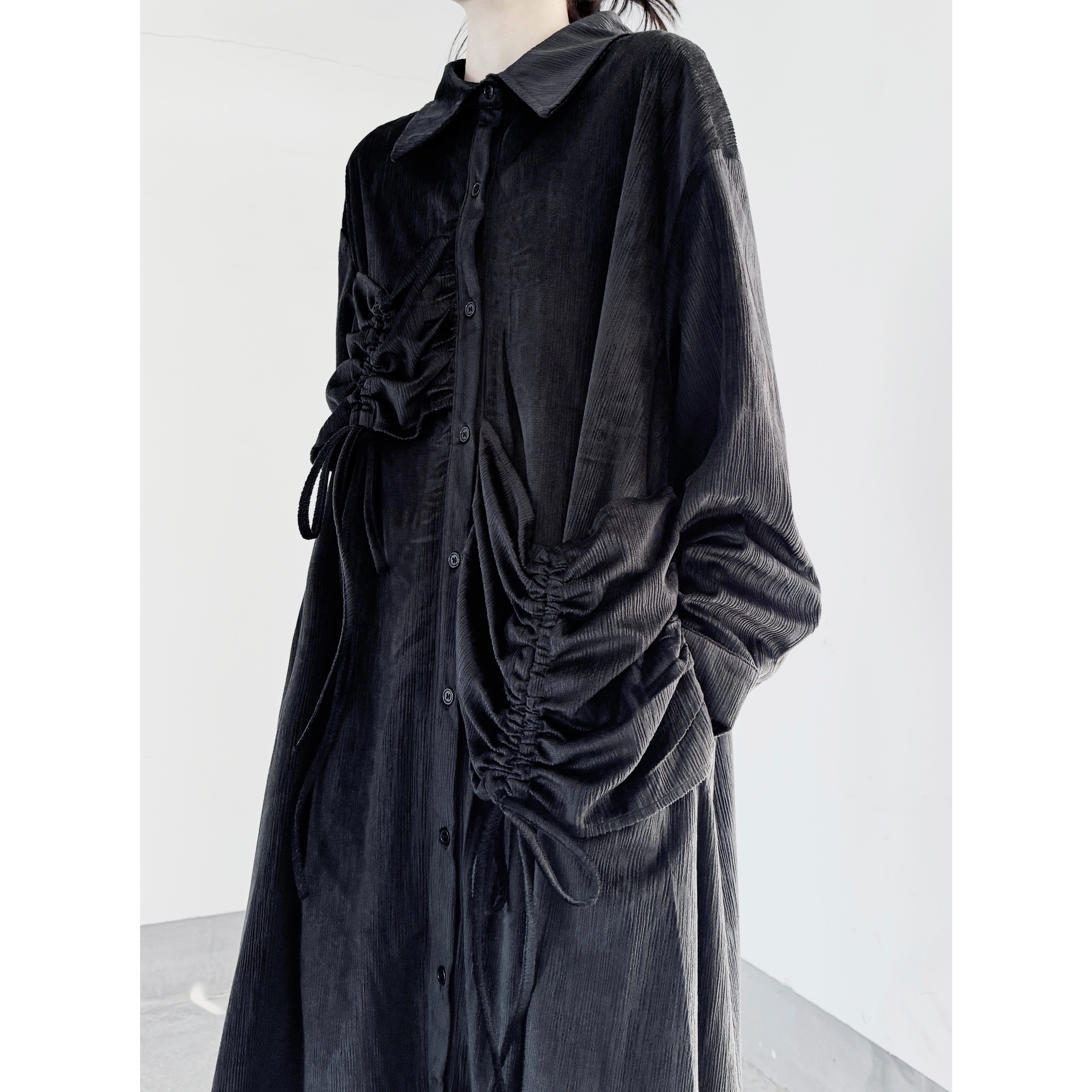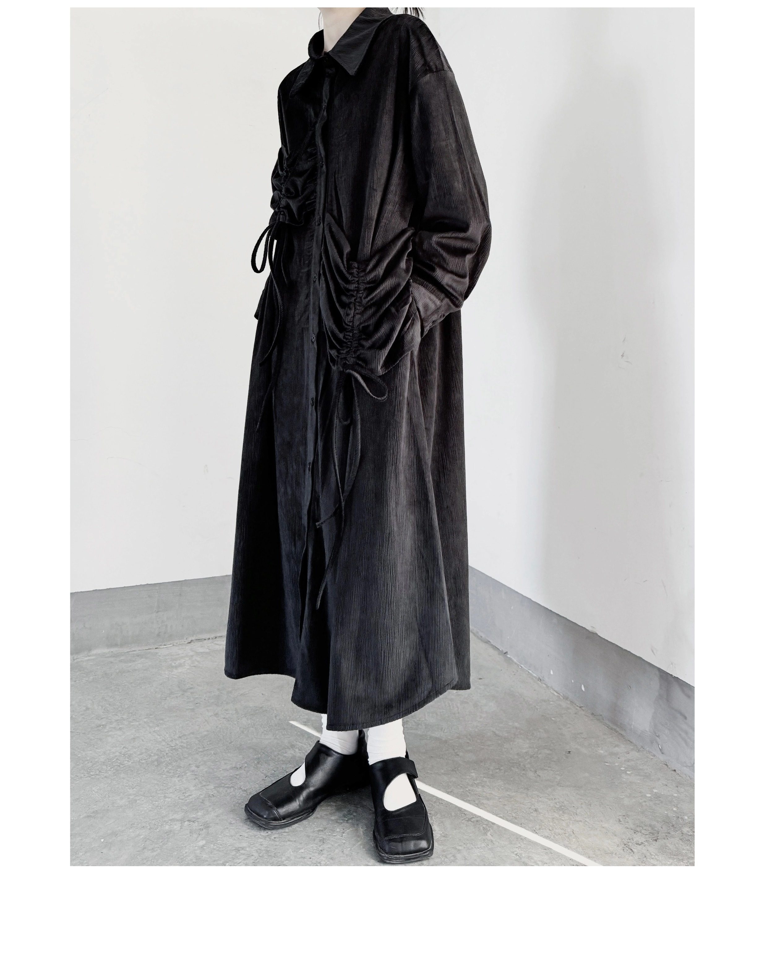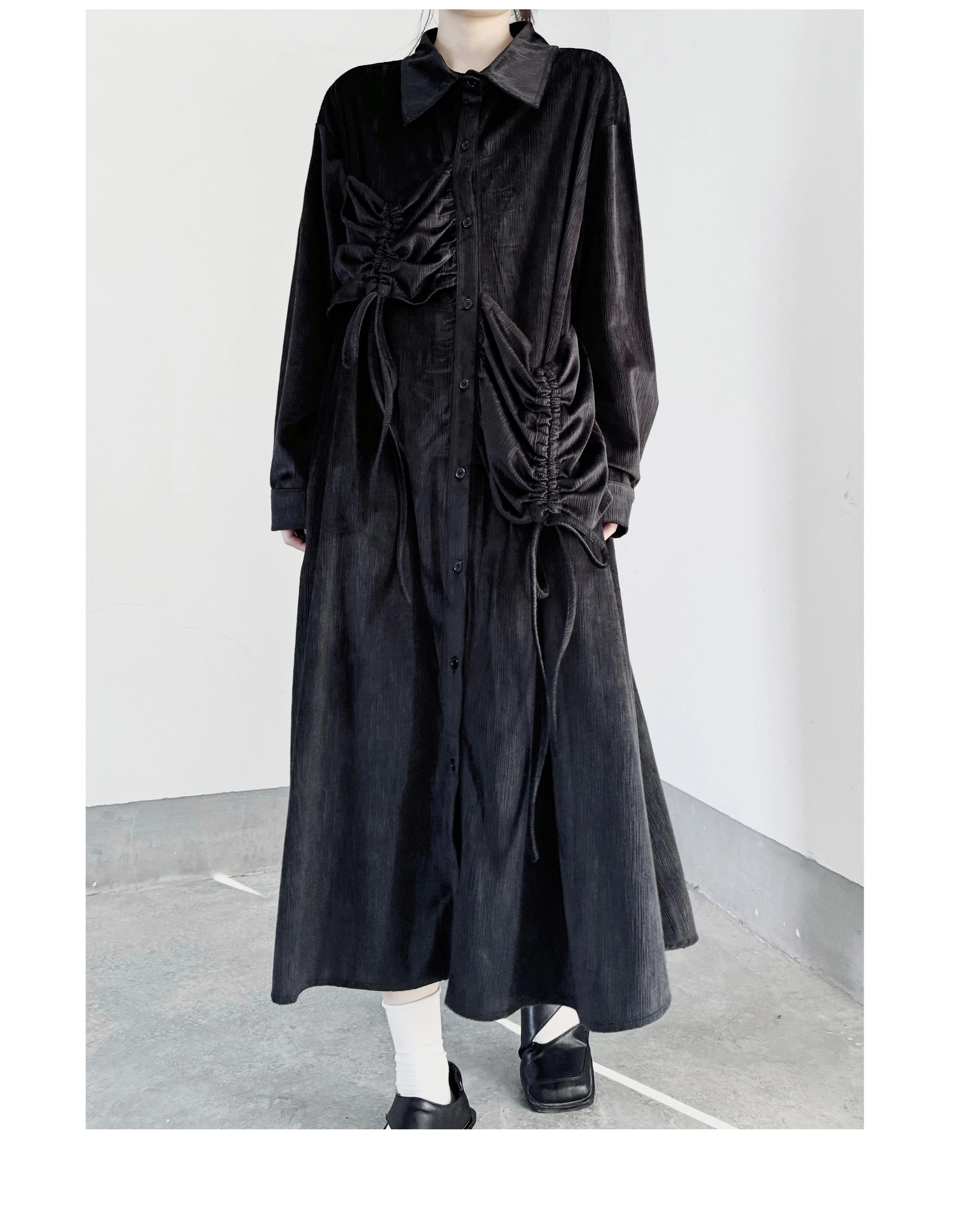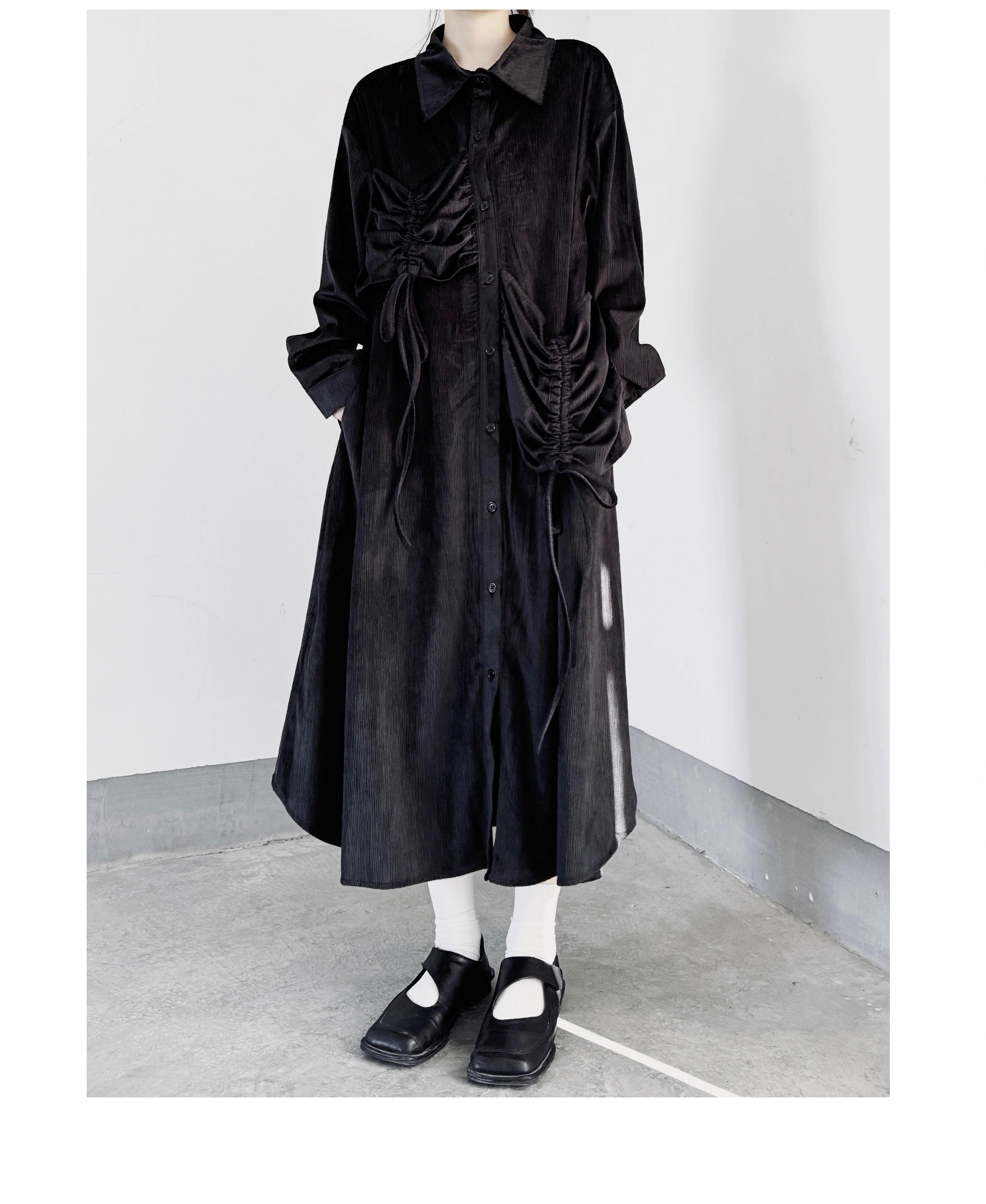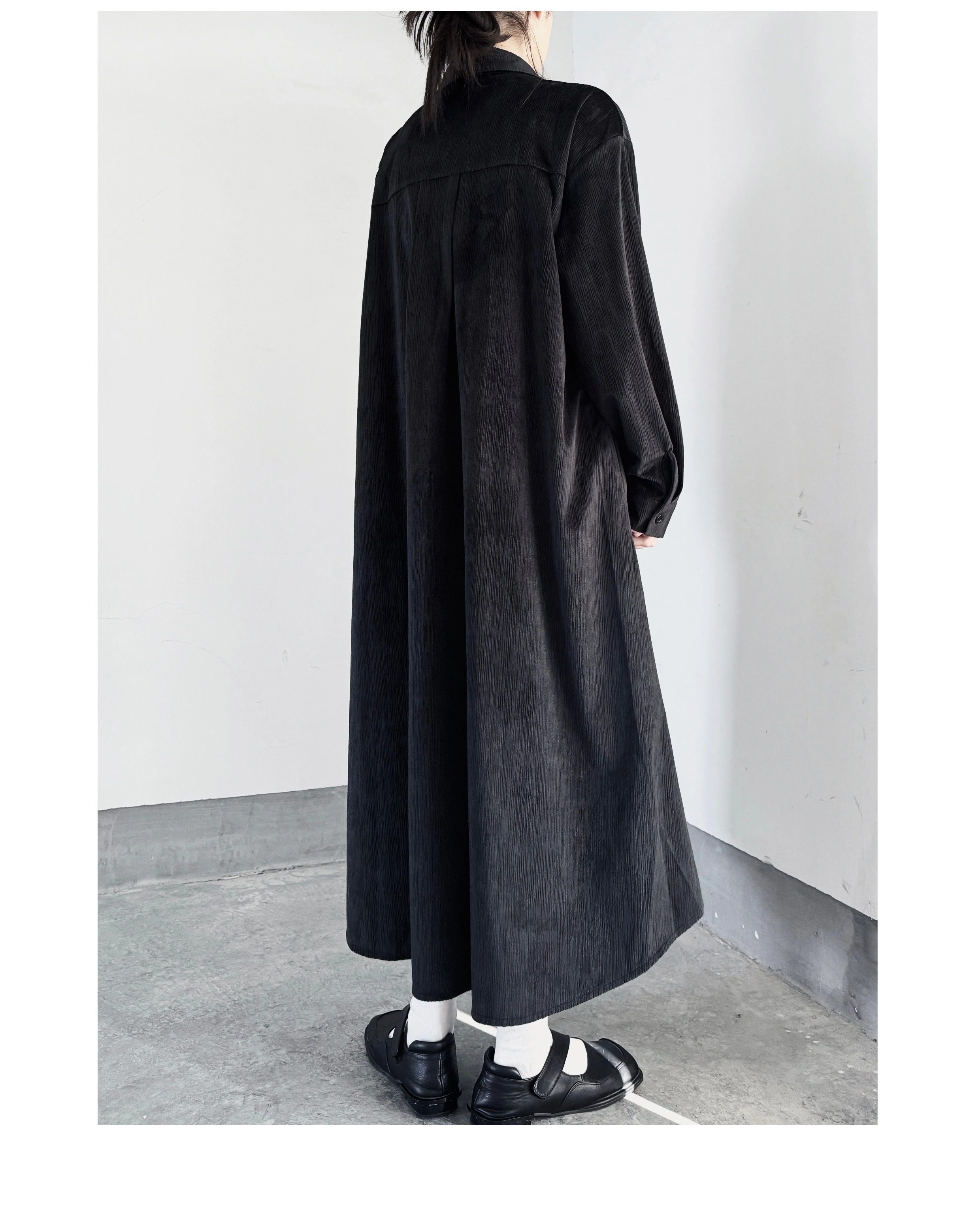 【商品名】【ワンピース】秋春新作 コーデュロイ シャツワンピース レディース ダークモード 大きめポケット デザイン 長袖【AHシリーズ】