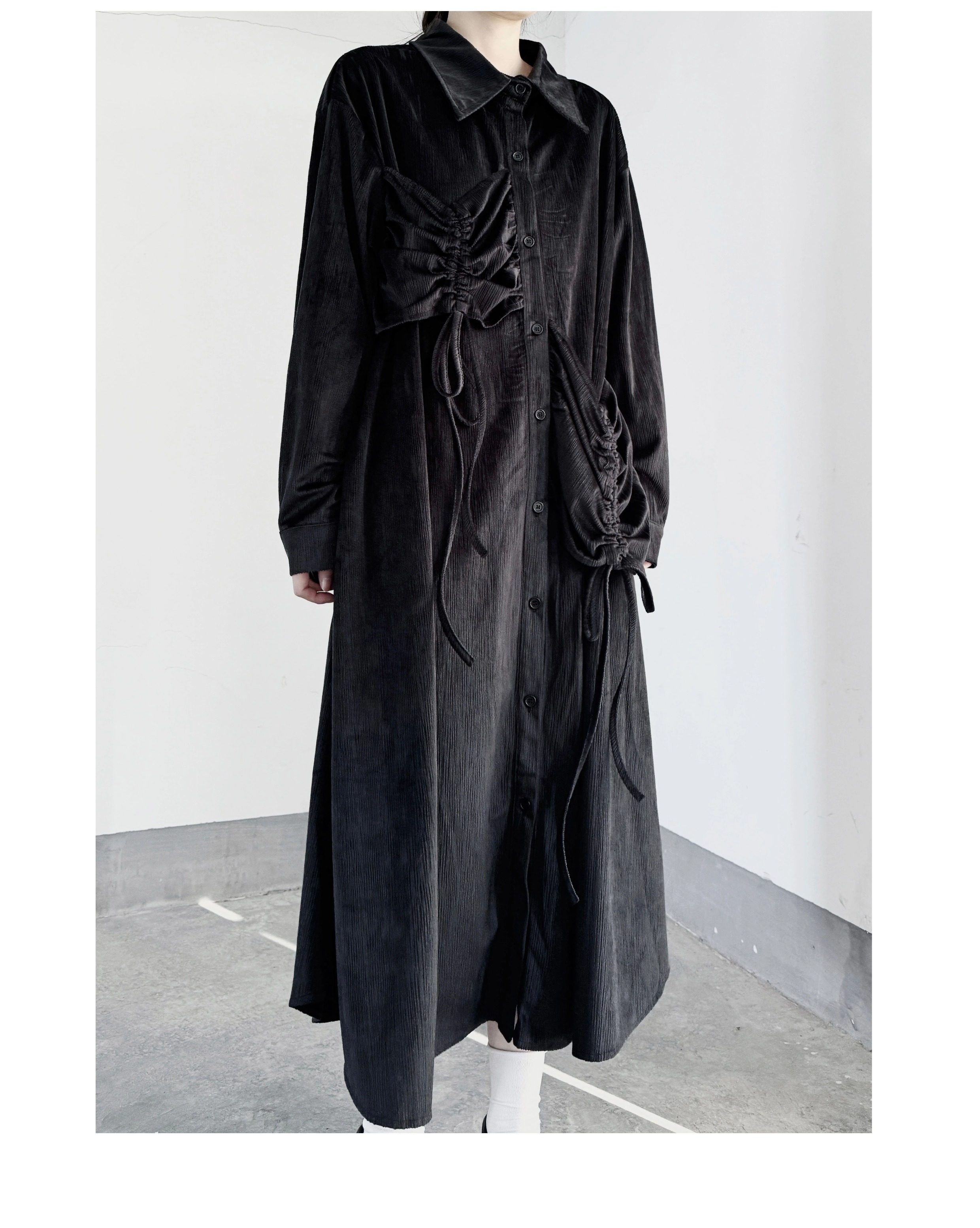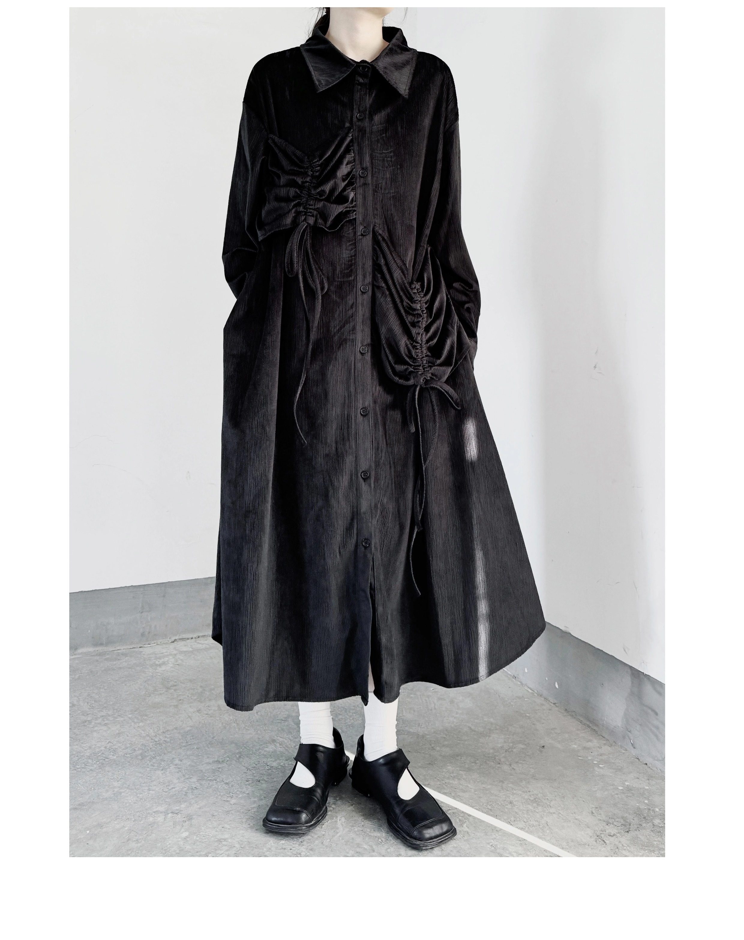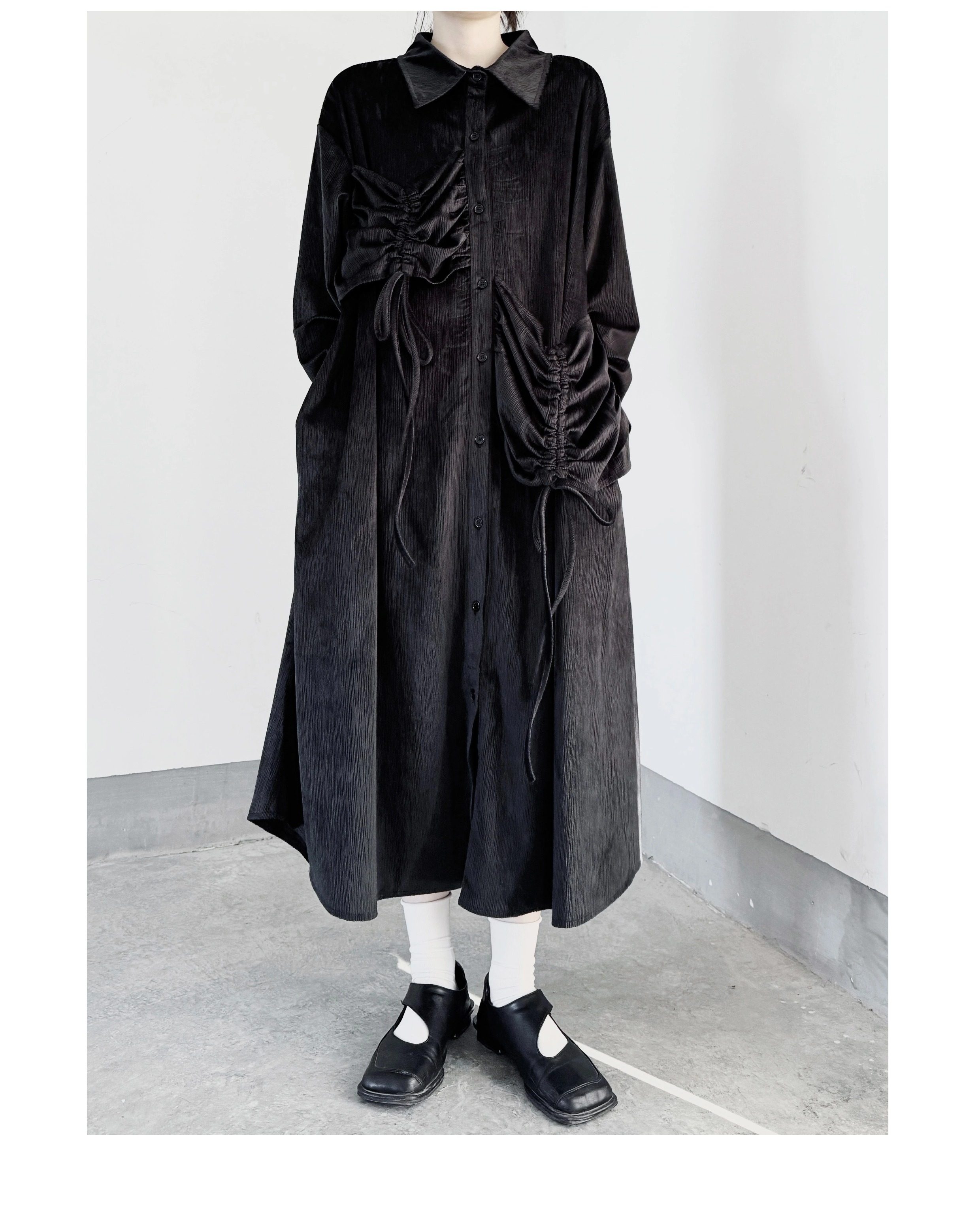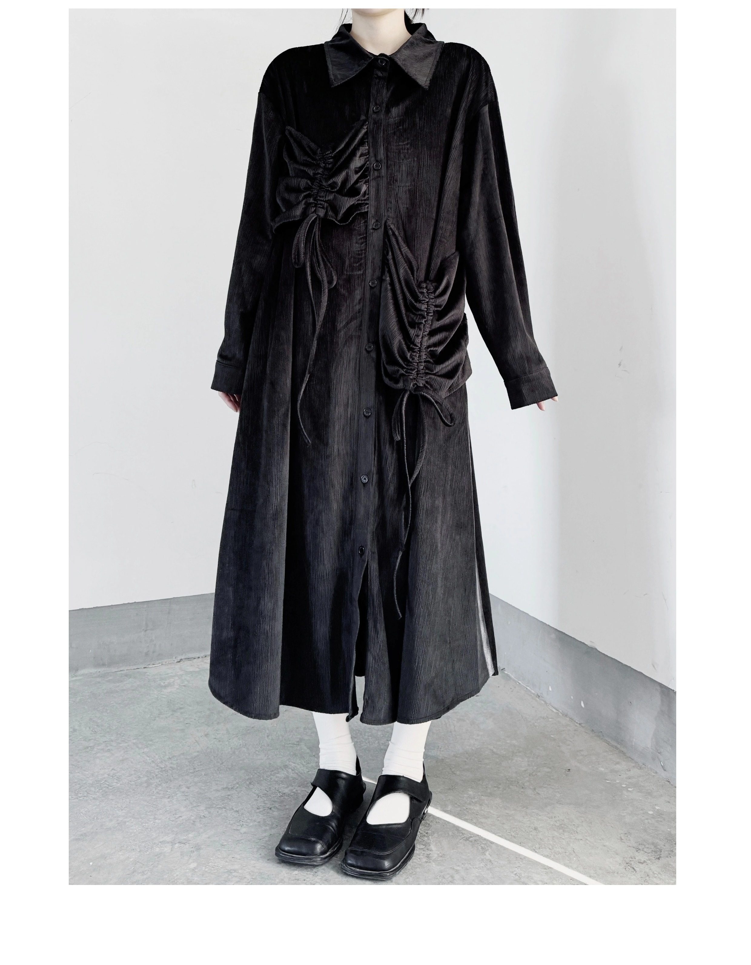 【ワンピース】秋春新作 コーデュロイ シャツワンピース レディース ダークモード 大きめポケット デザイン 長袖【AHシリーズ】