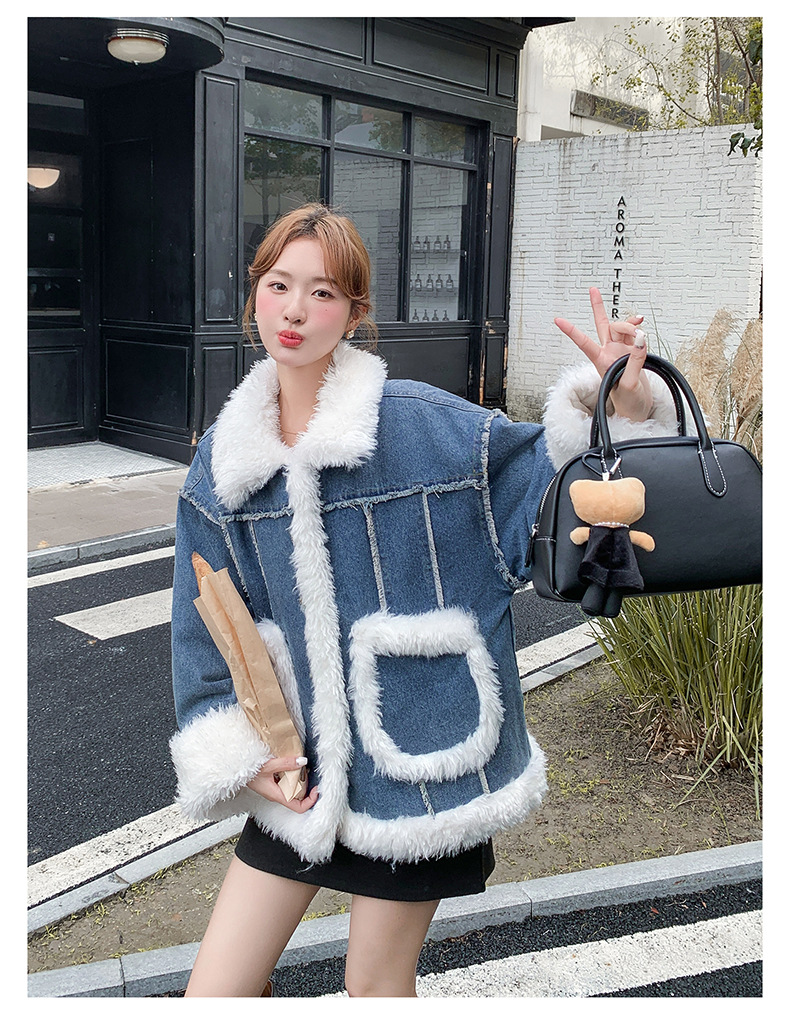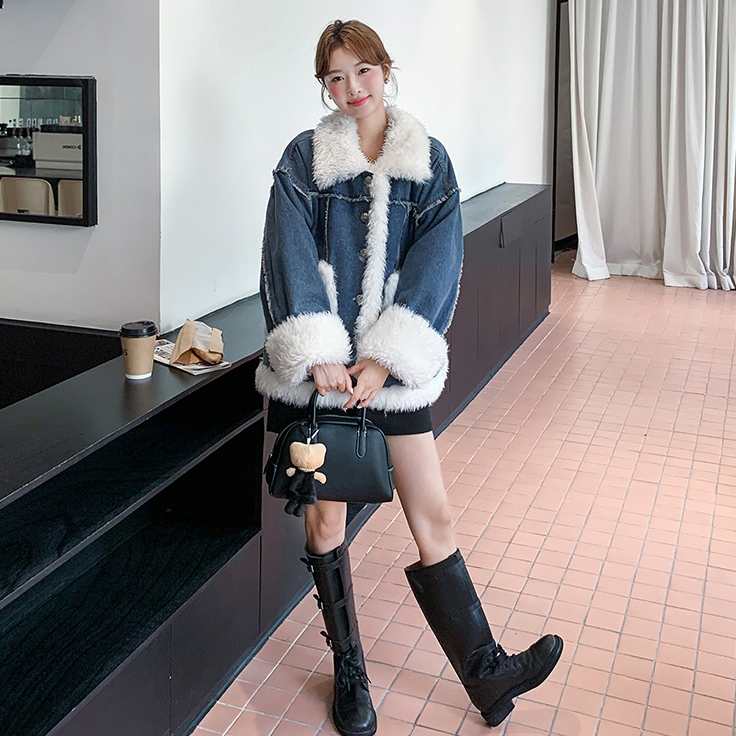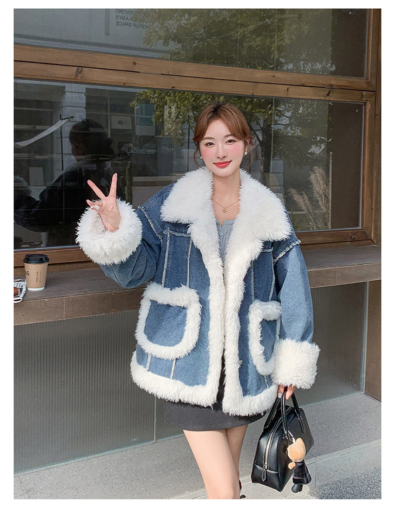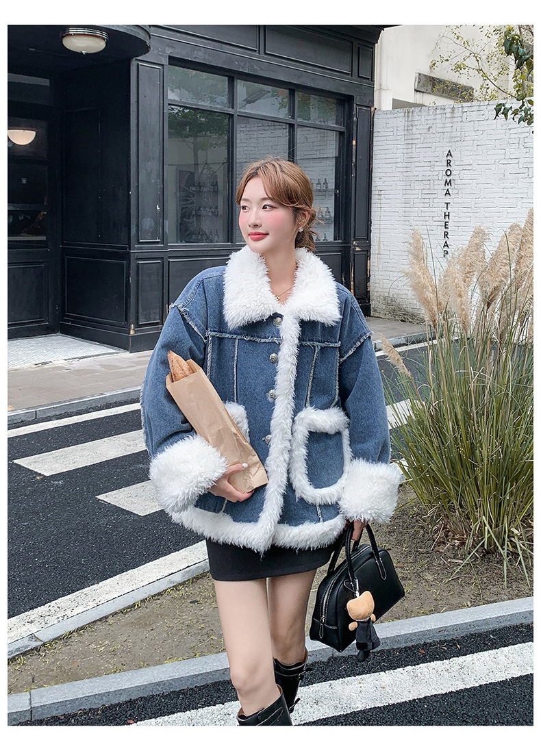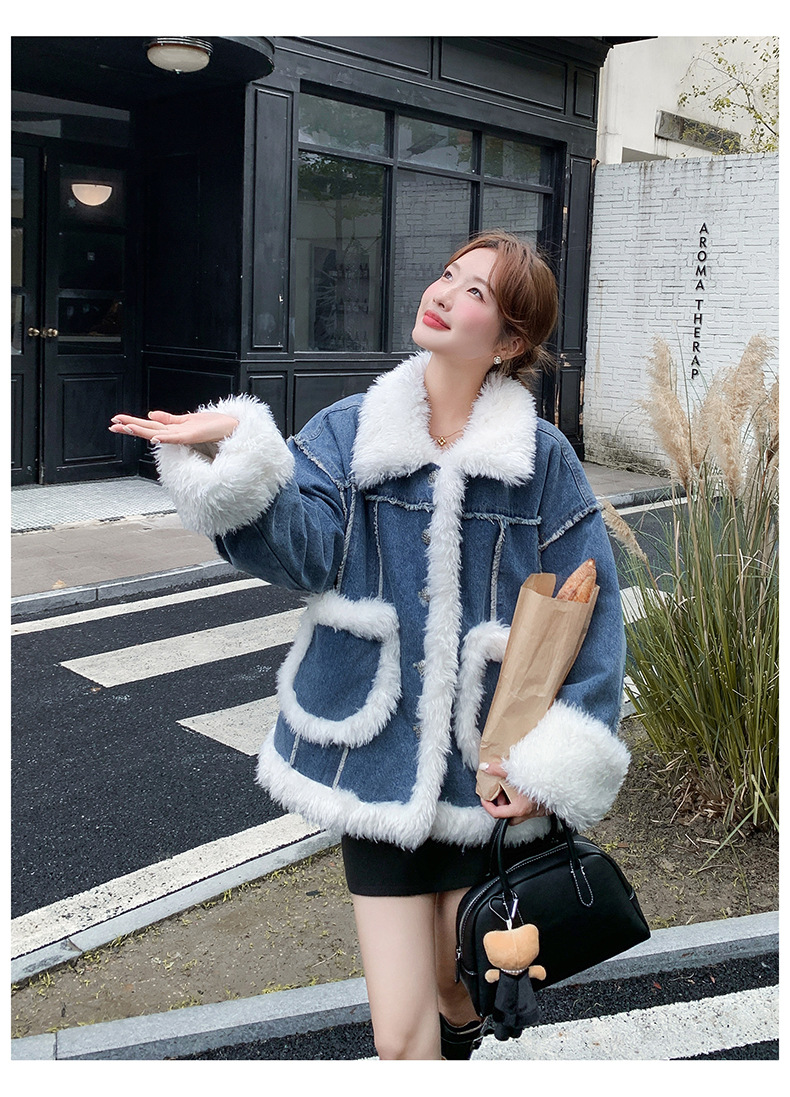 【アウター】ヴィンテージ風 ボア×ブルーデニムジャケット 2025冬 厚手 保温 中綿コート レディース おしゃれ【JZシリーズ】
