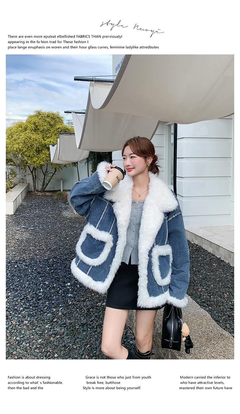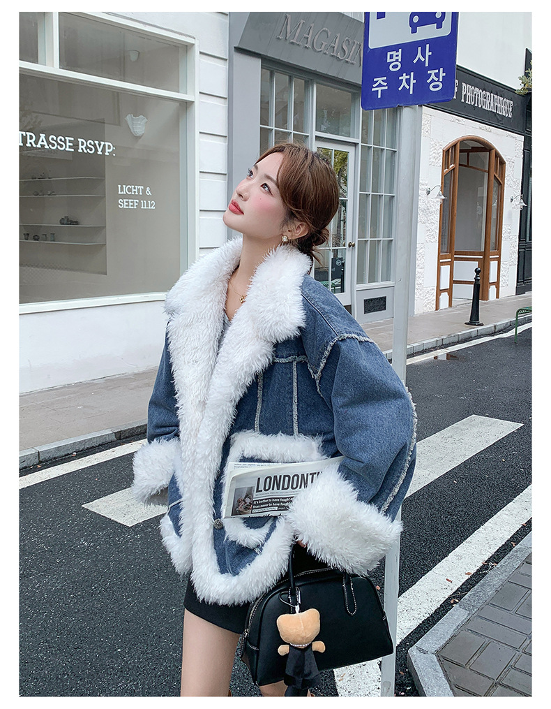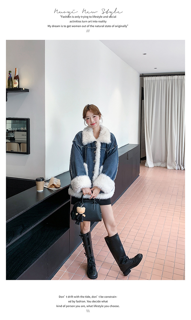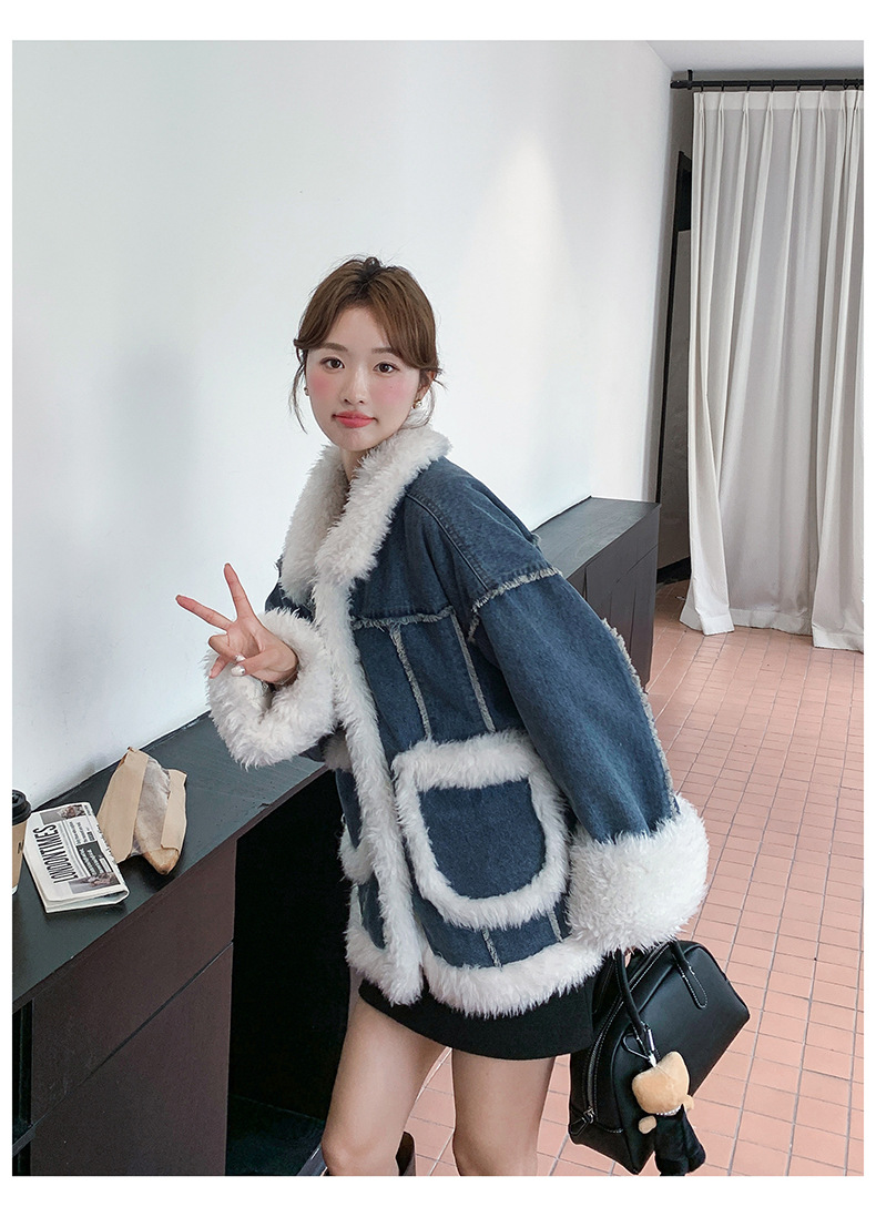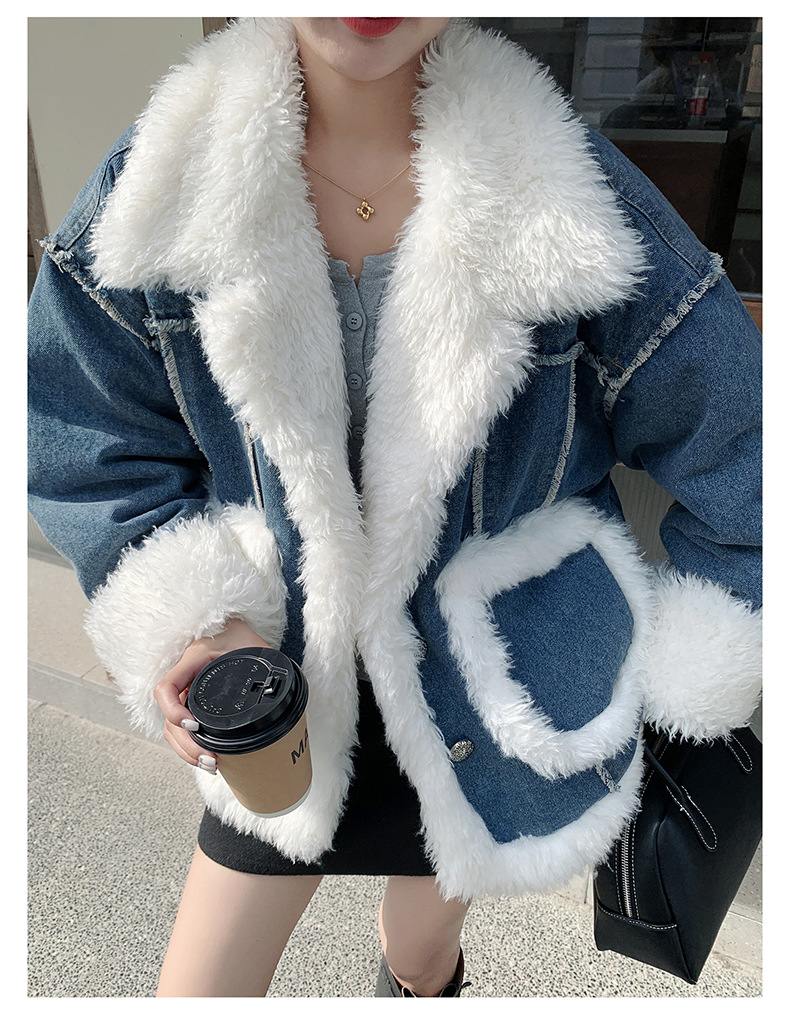 【アウター】ヴィンテージ風 ボア×ブルーデニムジャケット 2025冬 厚手 保温 中綿コート レディース おしゃれ【JZシリーズ】