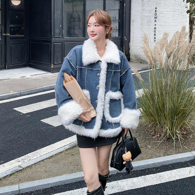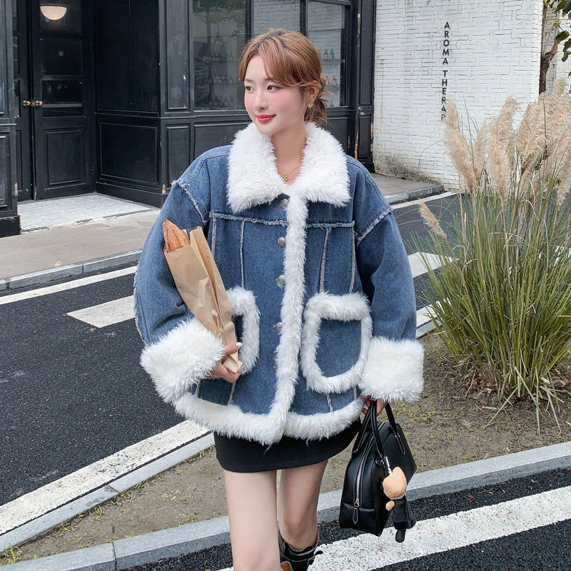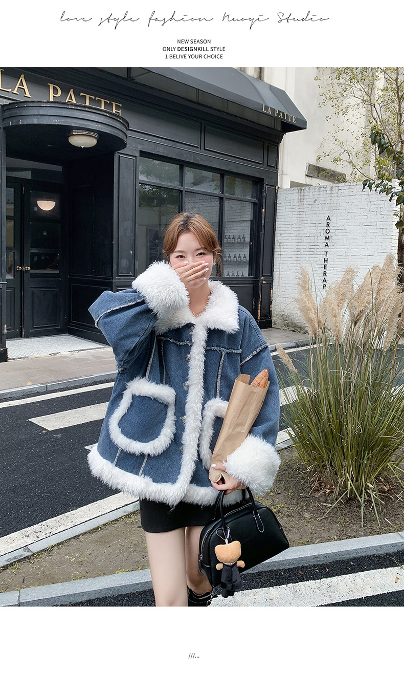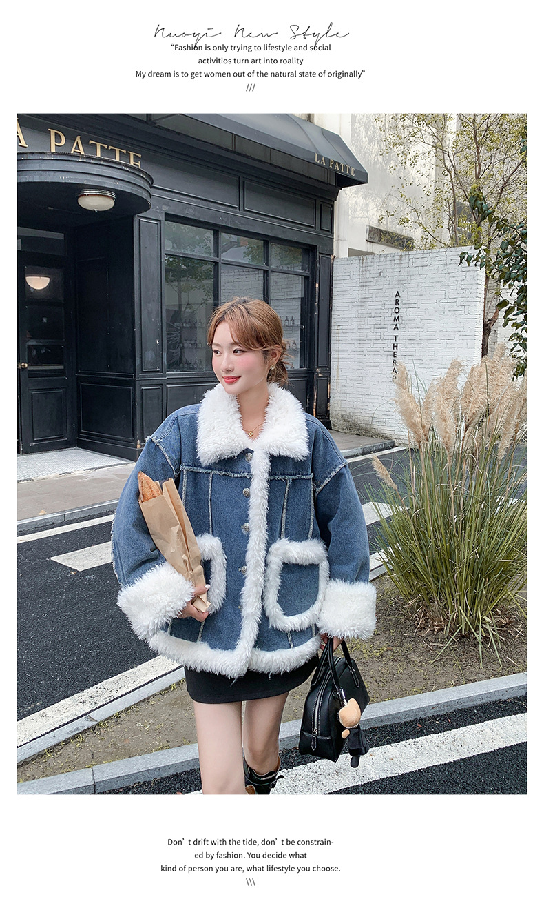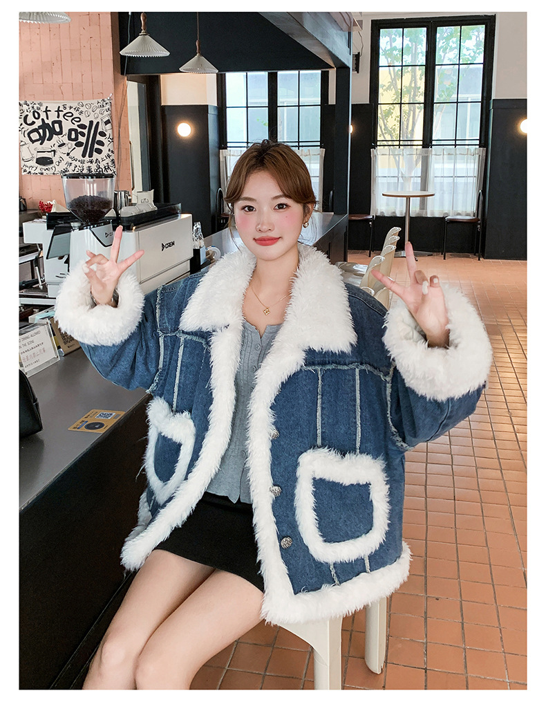 【アウター】ヴィンテージ風 ボア×ブルーデニムジャケット 2025冬 厚手 保温 中綿コート レディース おしゃれ【JZシリーズ】