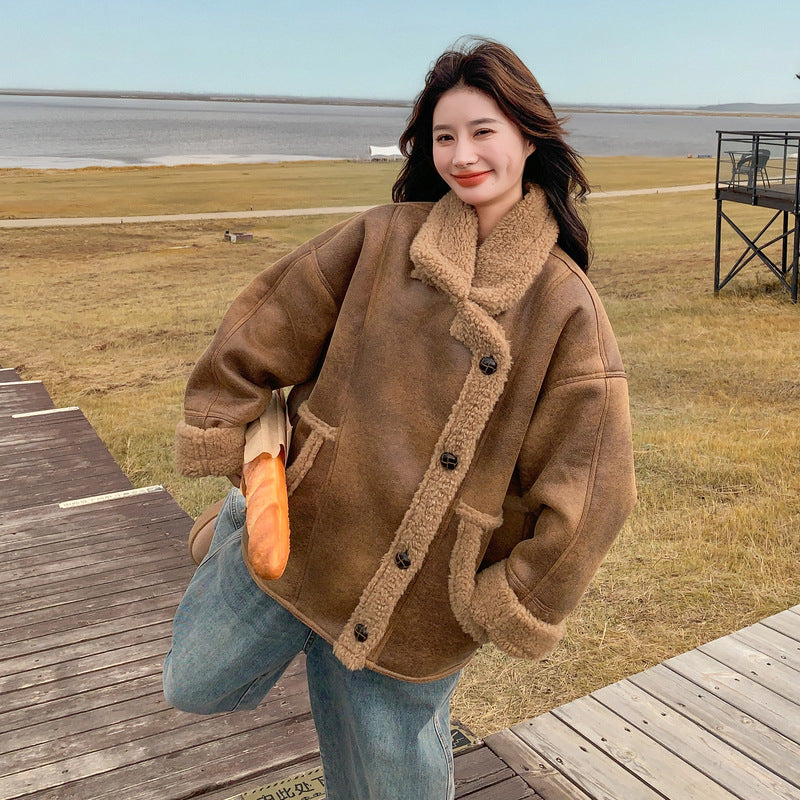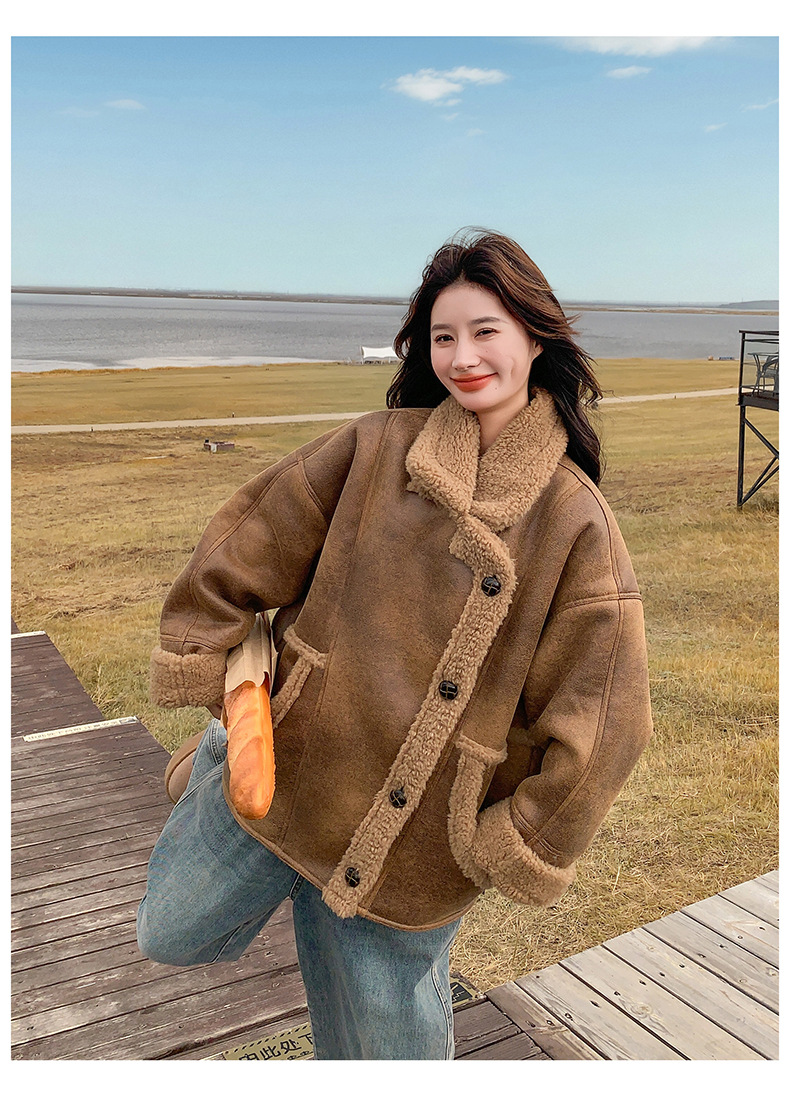 【アウター】レトロ感×バイカラー♡ボアジャケット 冬新作 レディース あったか【JZシリーズ】