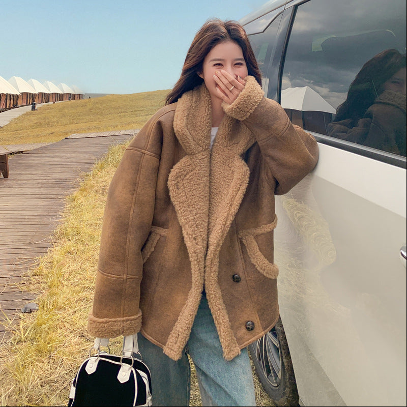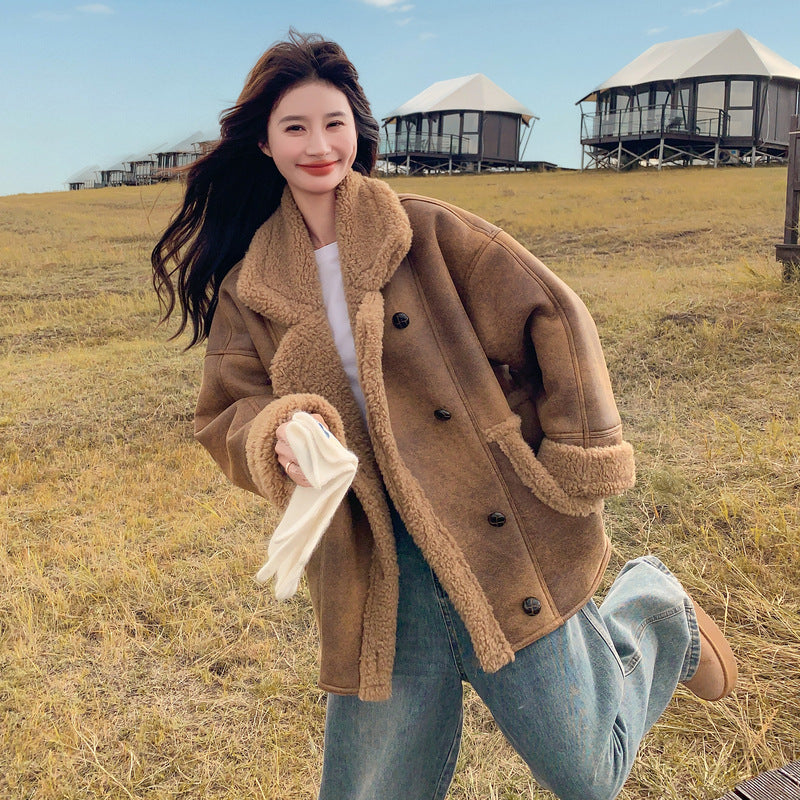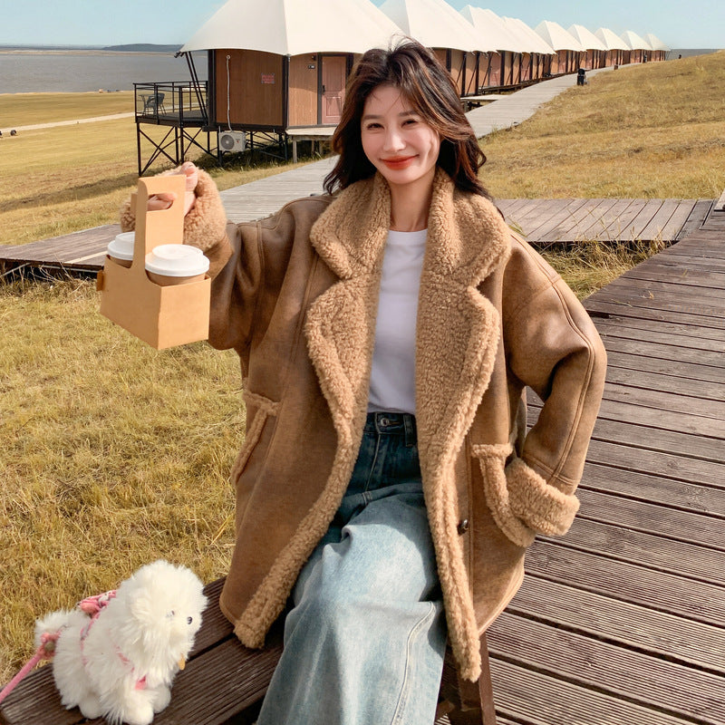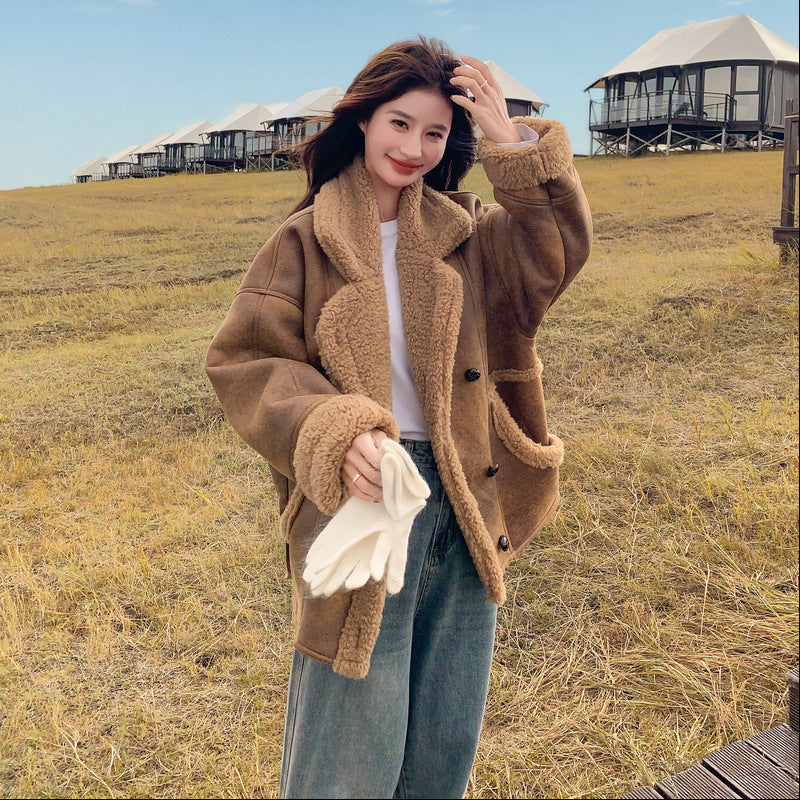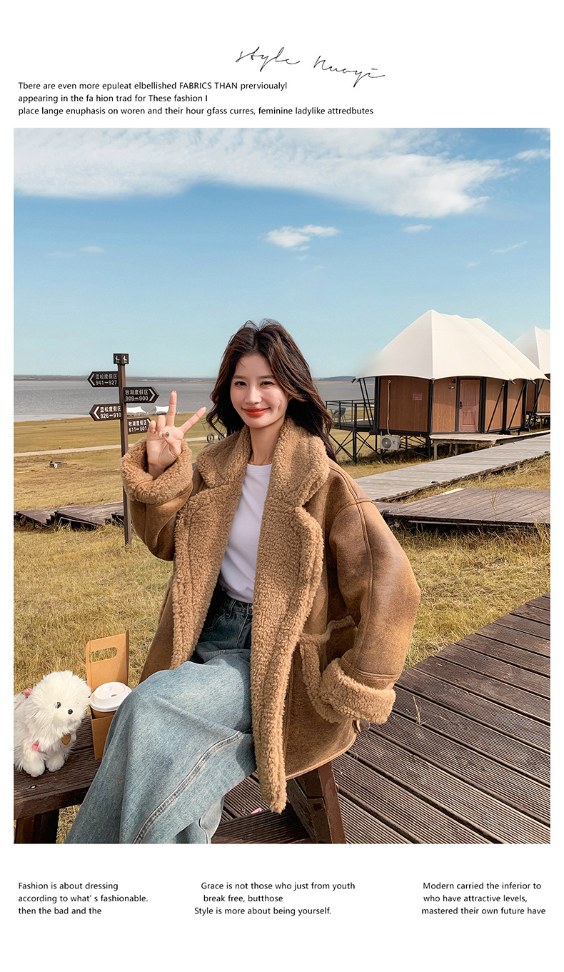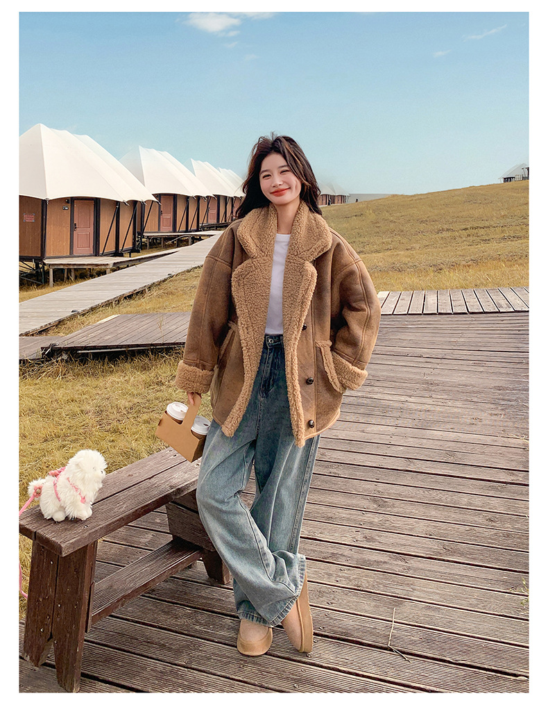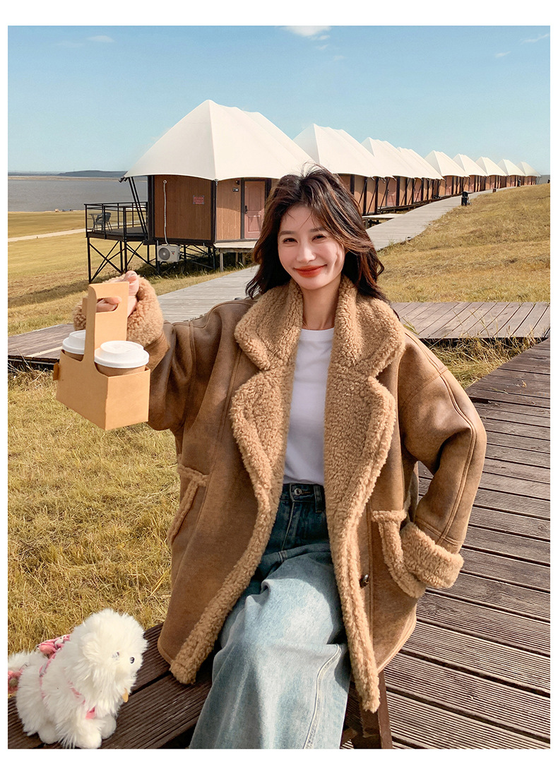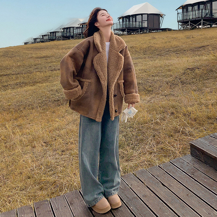 【商品名】【アウター】冬 レディース メラード風 フェイクムートン ボアコート カフェ色 小柄向け 厚手 あったか【JZシリーズ】