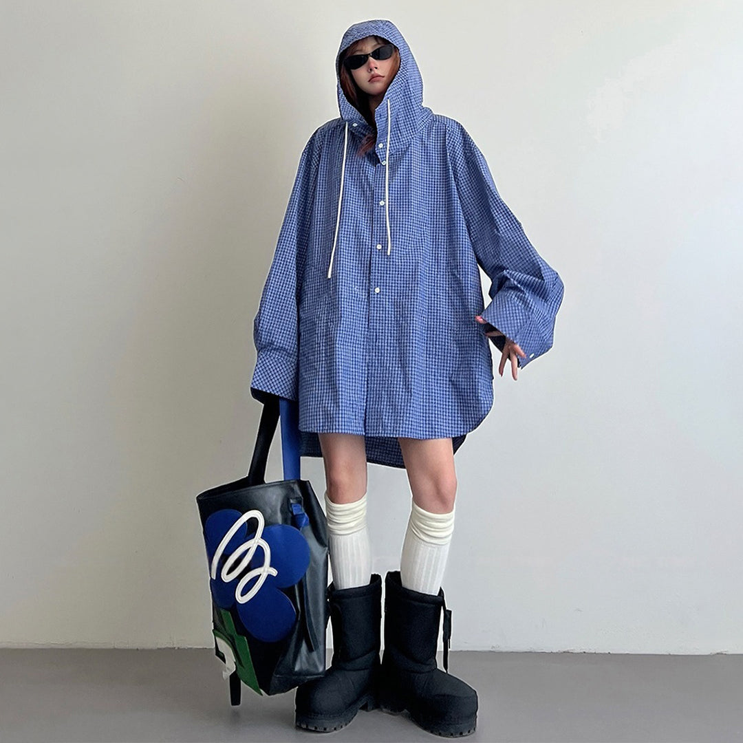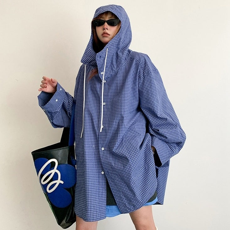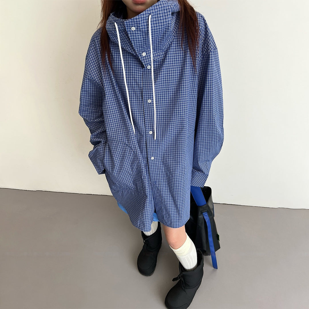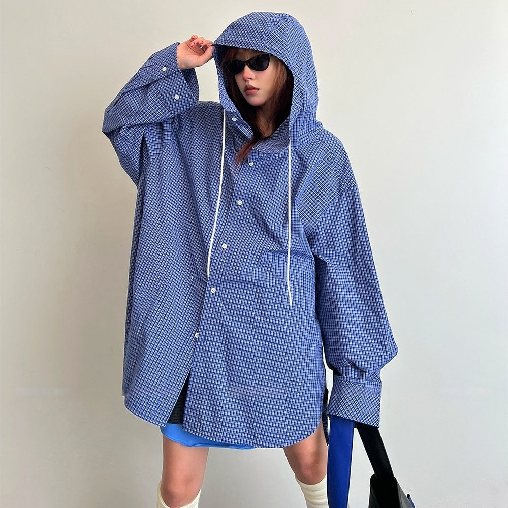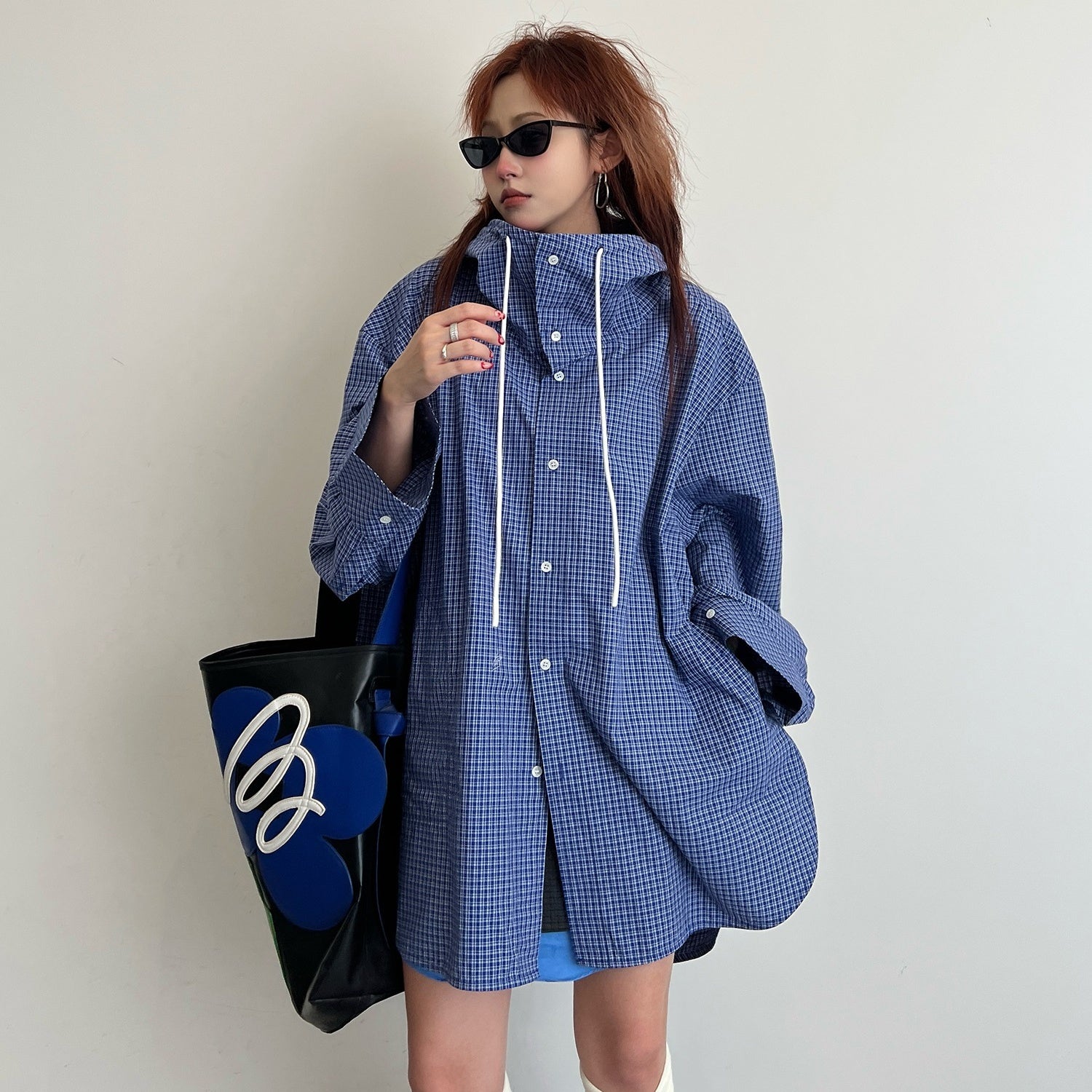 【アウター】春秋 ファッション チェック柄 フード付き ゆったり シャツカーディガン【FCシリーズ】