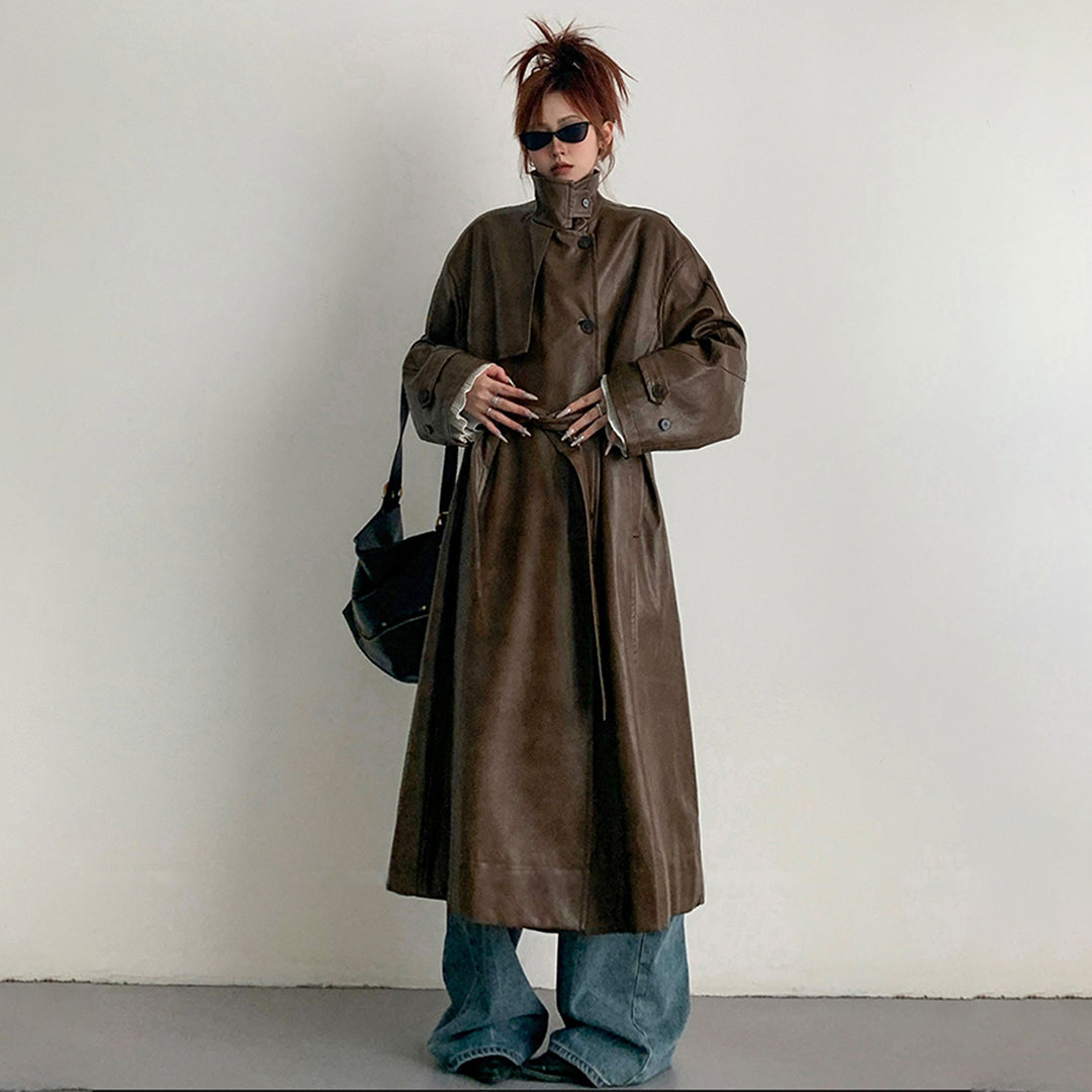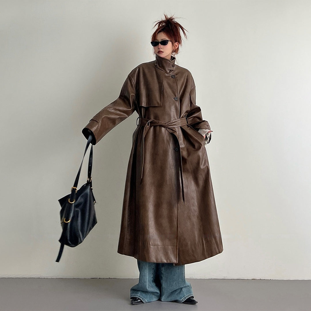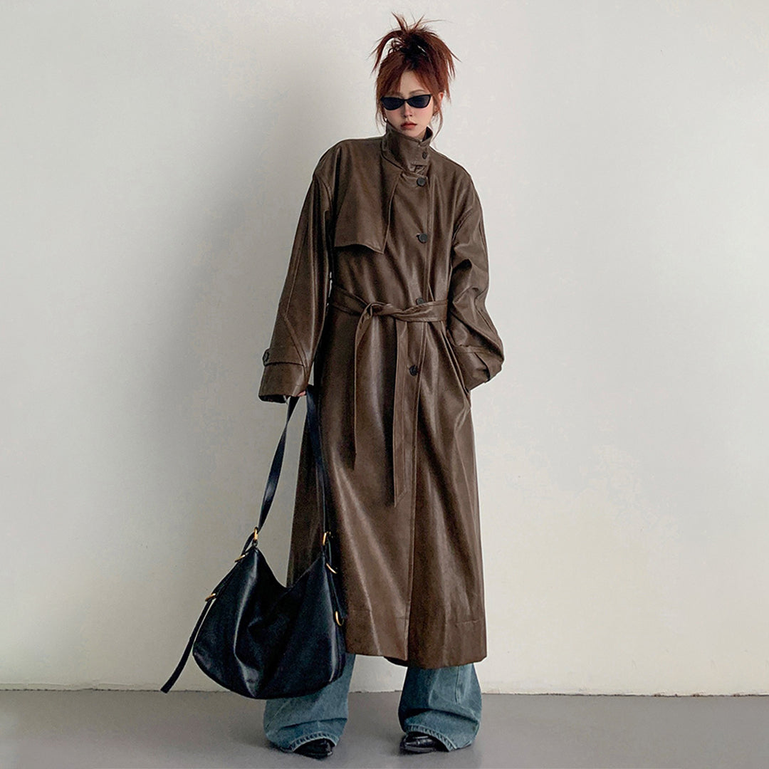 【商品名】【アウター】2025新作 イングランド風 ゆったり スタンドネック PU コート【FCシリーズ】