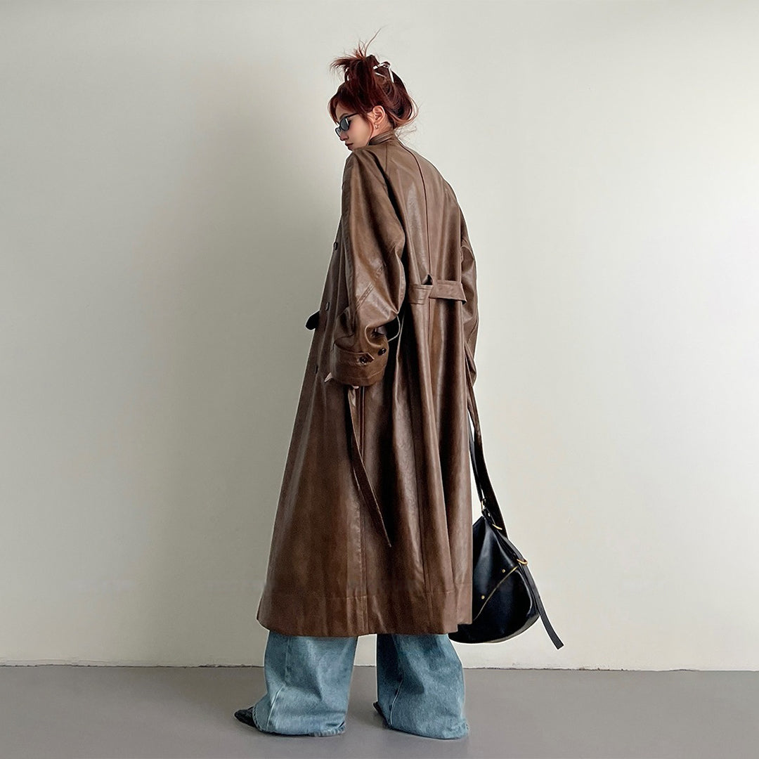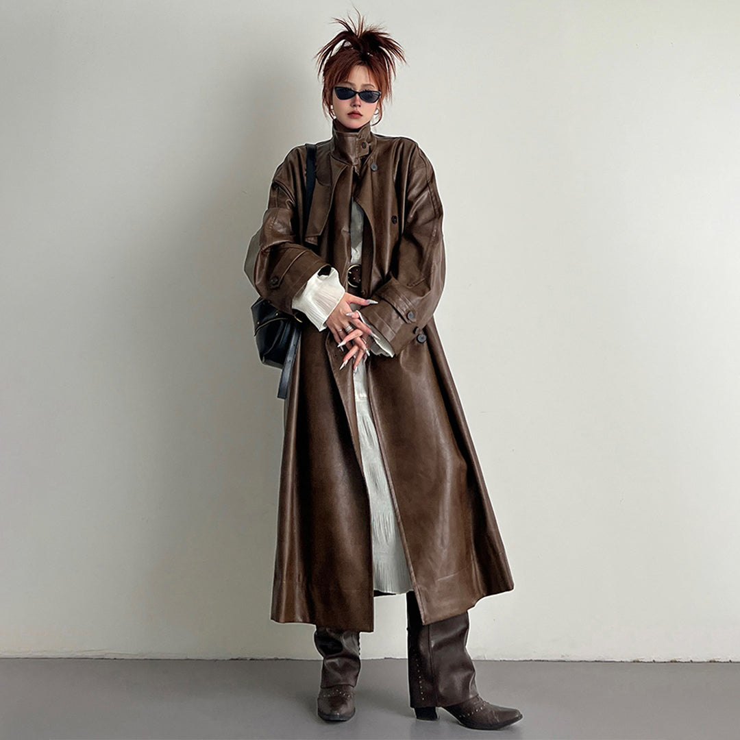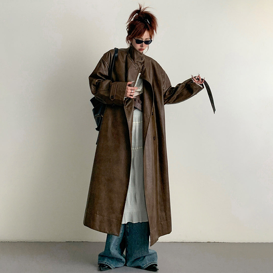 【商品名】【アウター】2025新作 イングランド風 ゆったり スタンドネック PU コート【FCシリーズ】