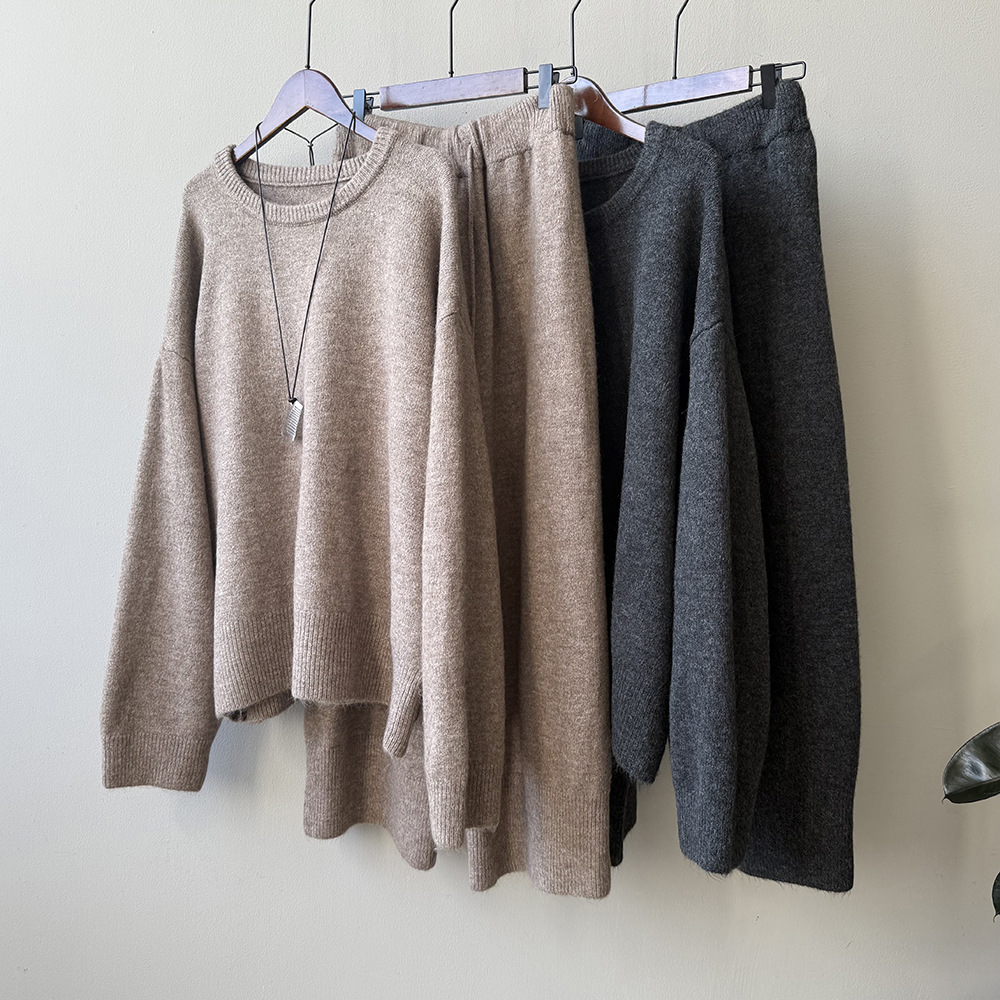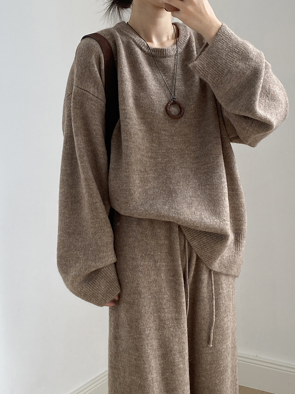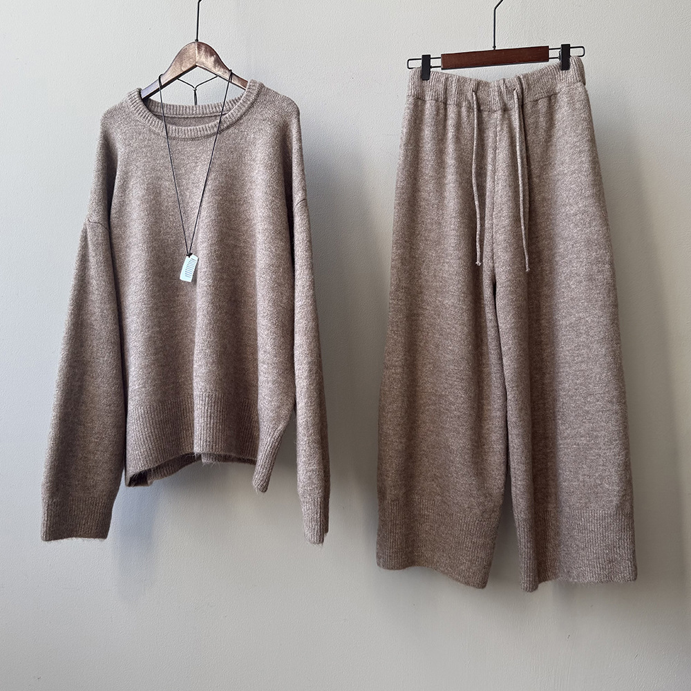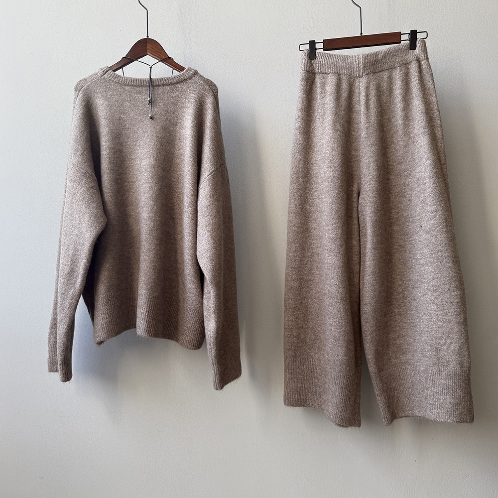2点セット!【セットアップ】ふんわりニット 上下セット レディース 秋冬 ゆったり プルオーバー+ニットパンツ 韓国風 カジュアル【JZシリーズ】