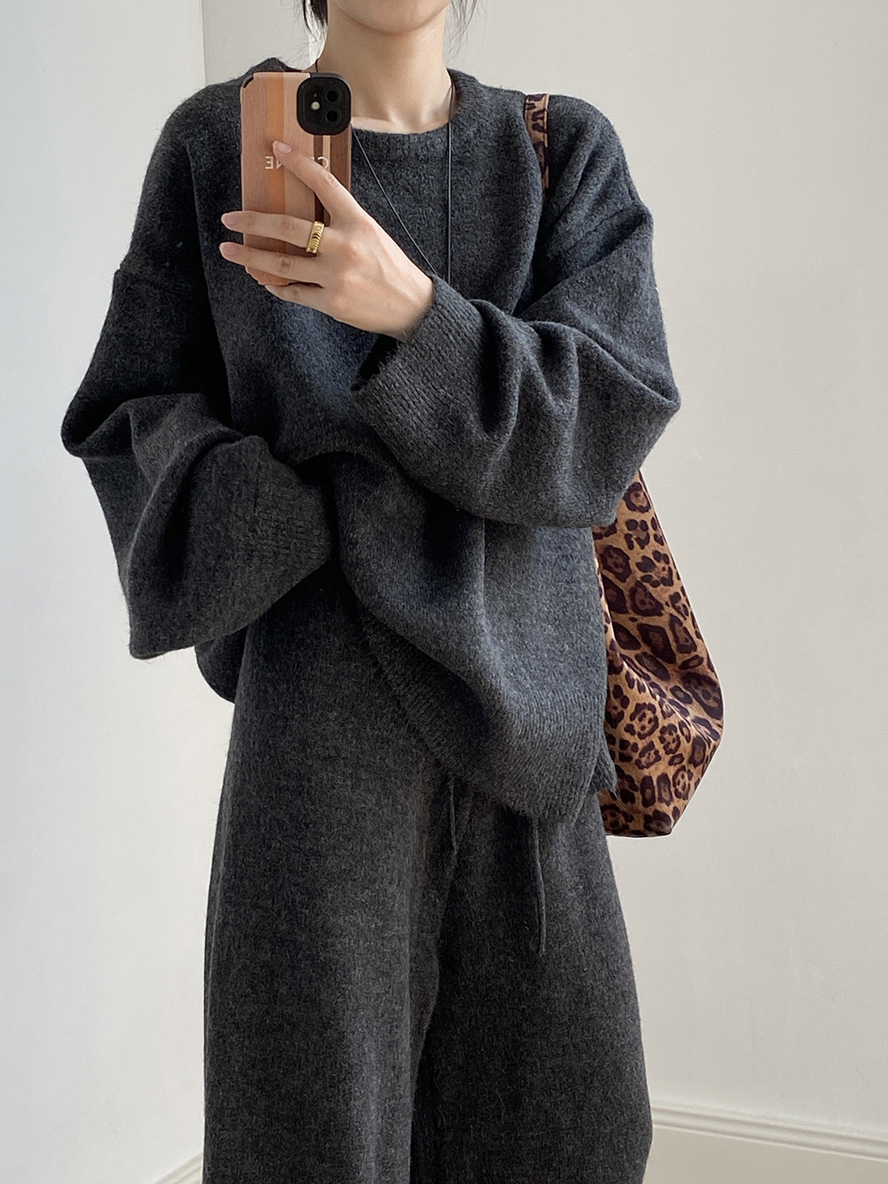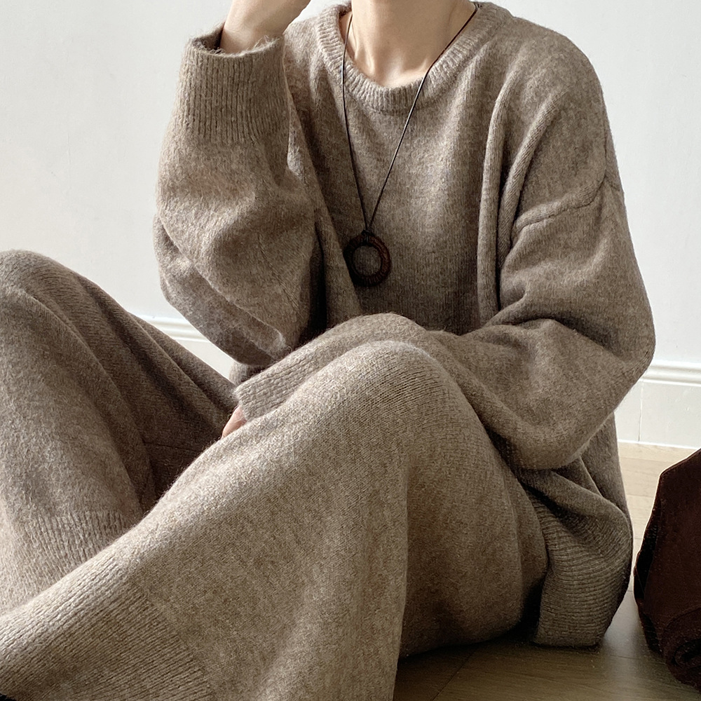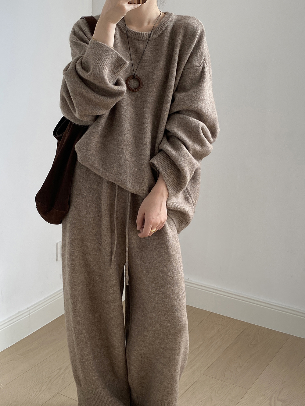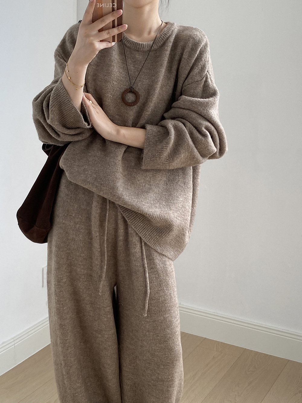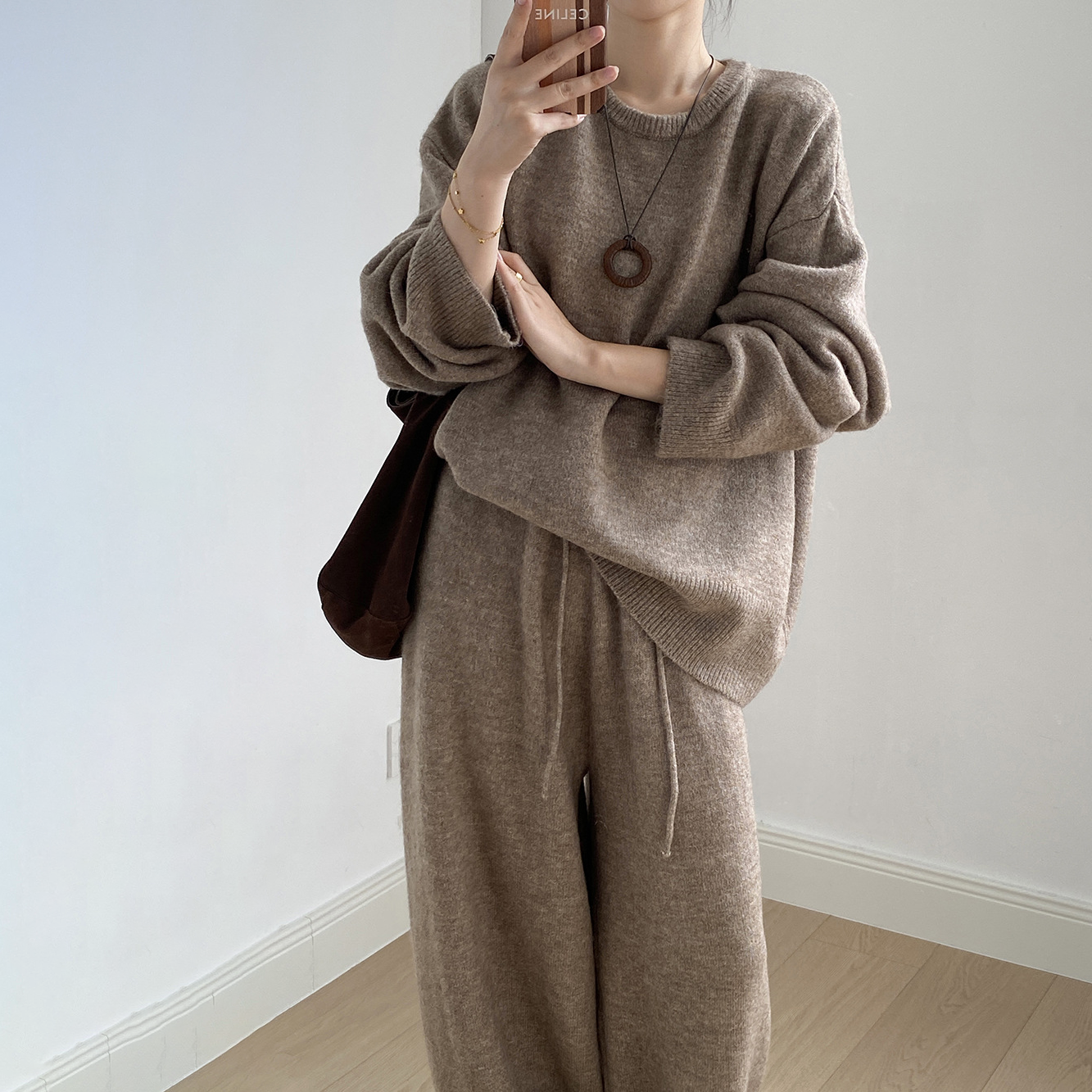 2点セット!【セットアップ】ふんわりニット 上下セット レディース 秋冬 ゆったり プルオーバー+ニットパンツ 韓国風 カジュアル【JZシリーズ】