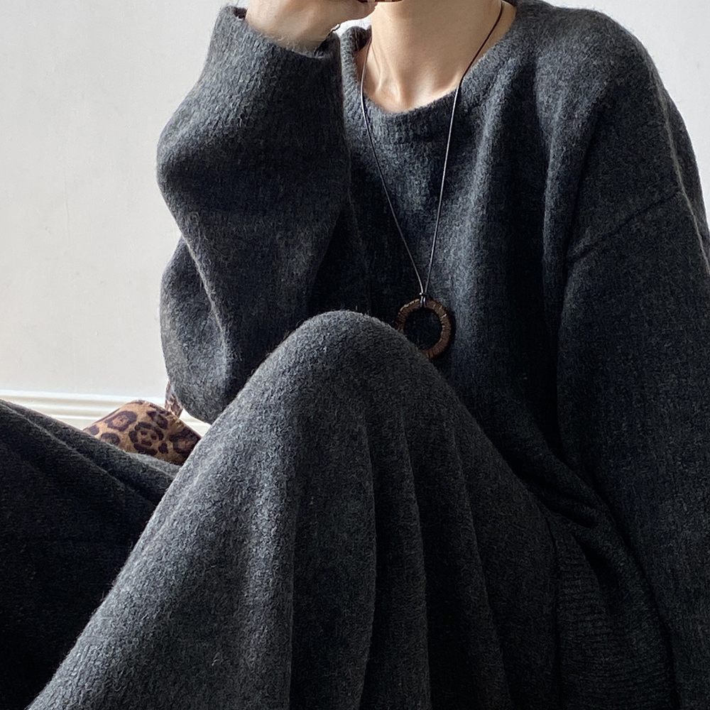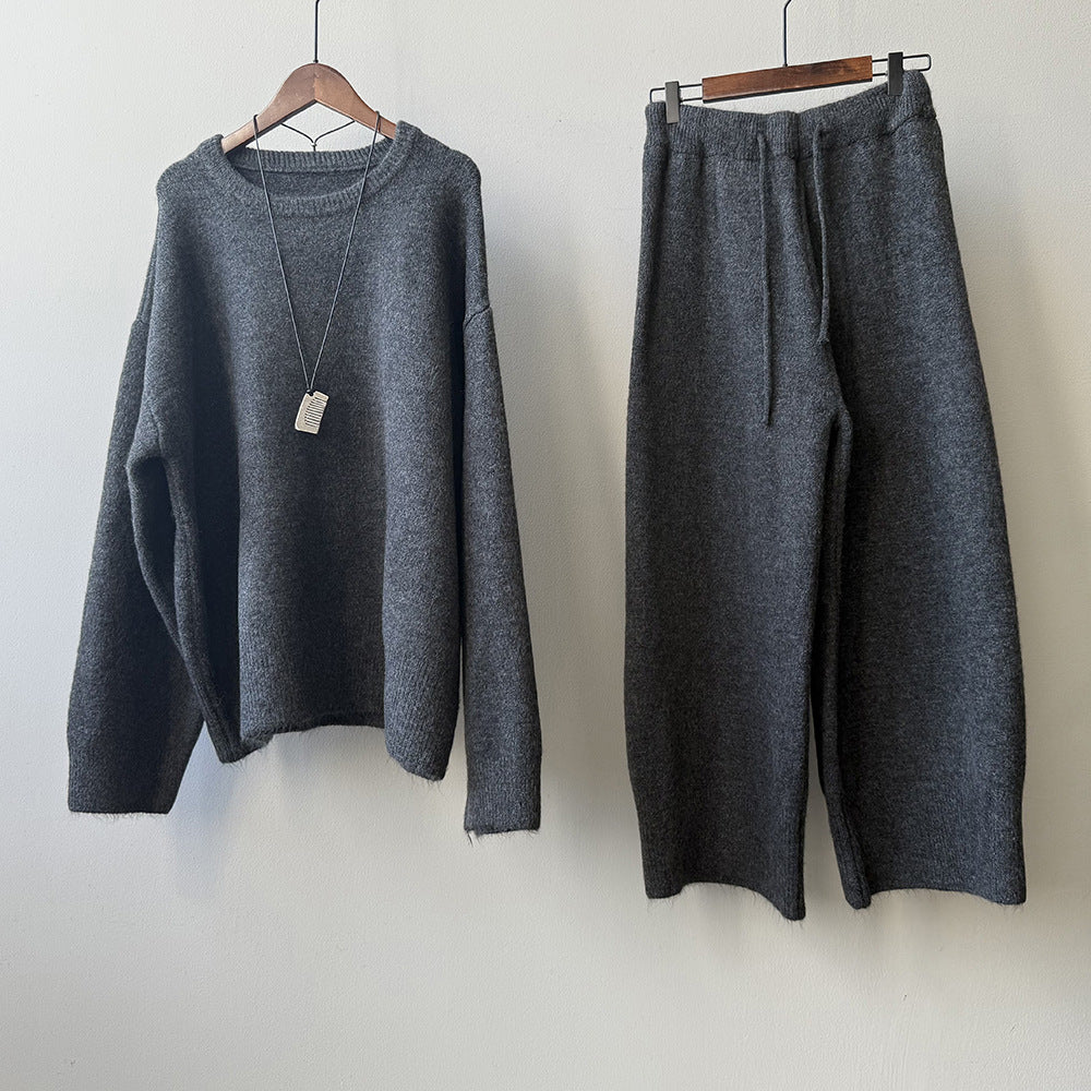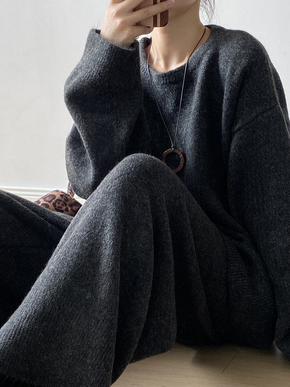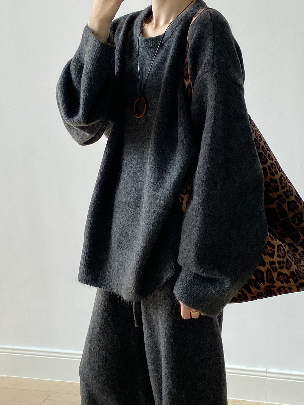 2点セット!【セットアップ】ふんわりニット 上下セット レディース 秋冬 ゆったり プルオーバー+ニットパンツ 韓国風 カジュアル【JZシリーズ】