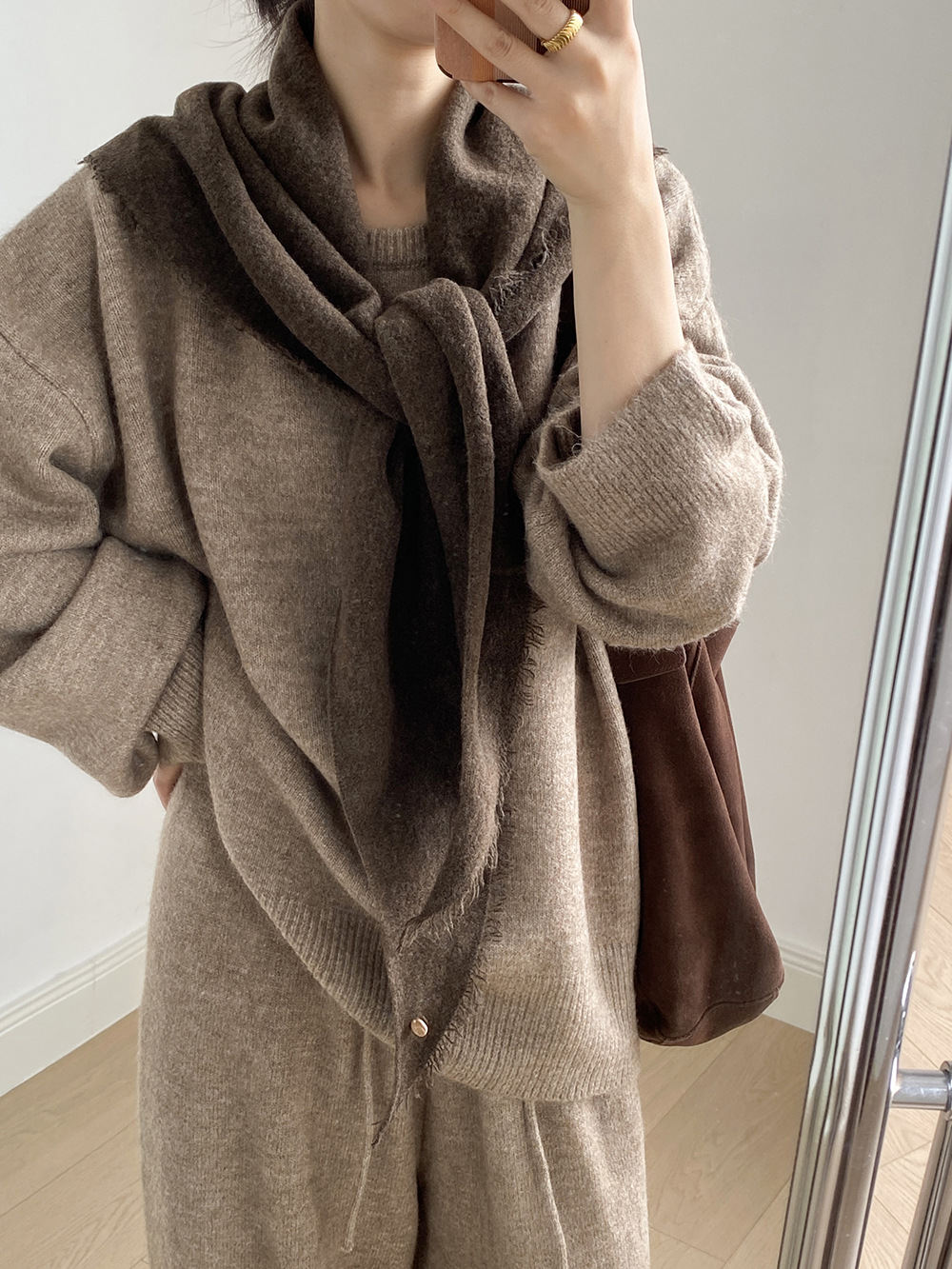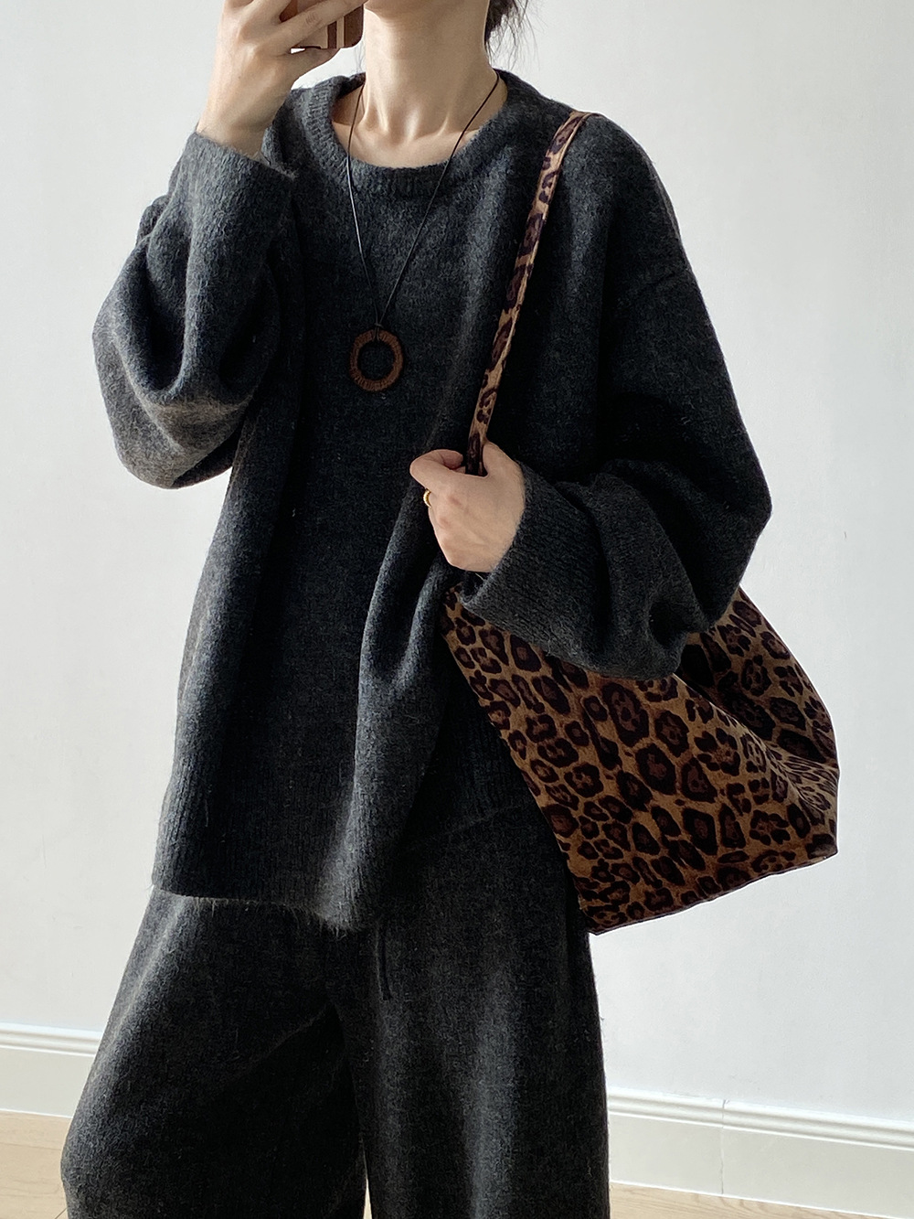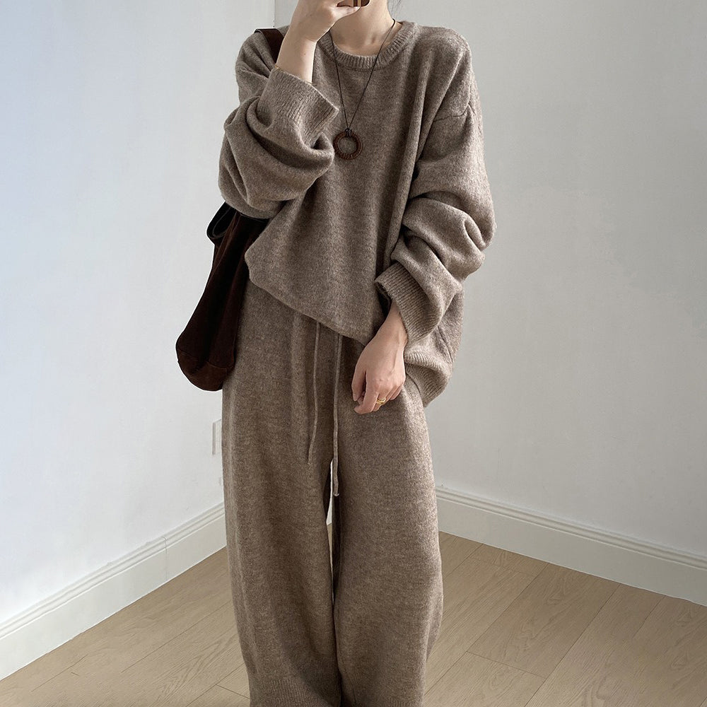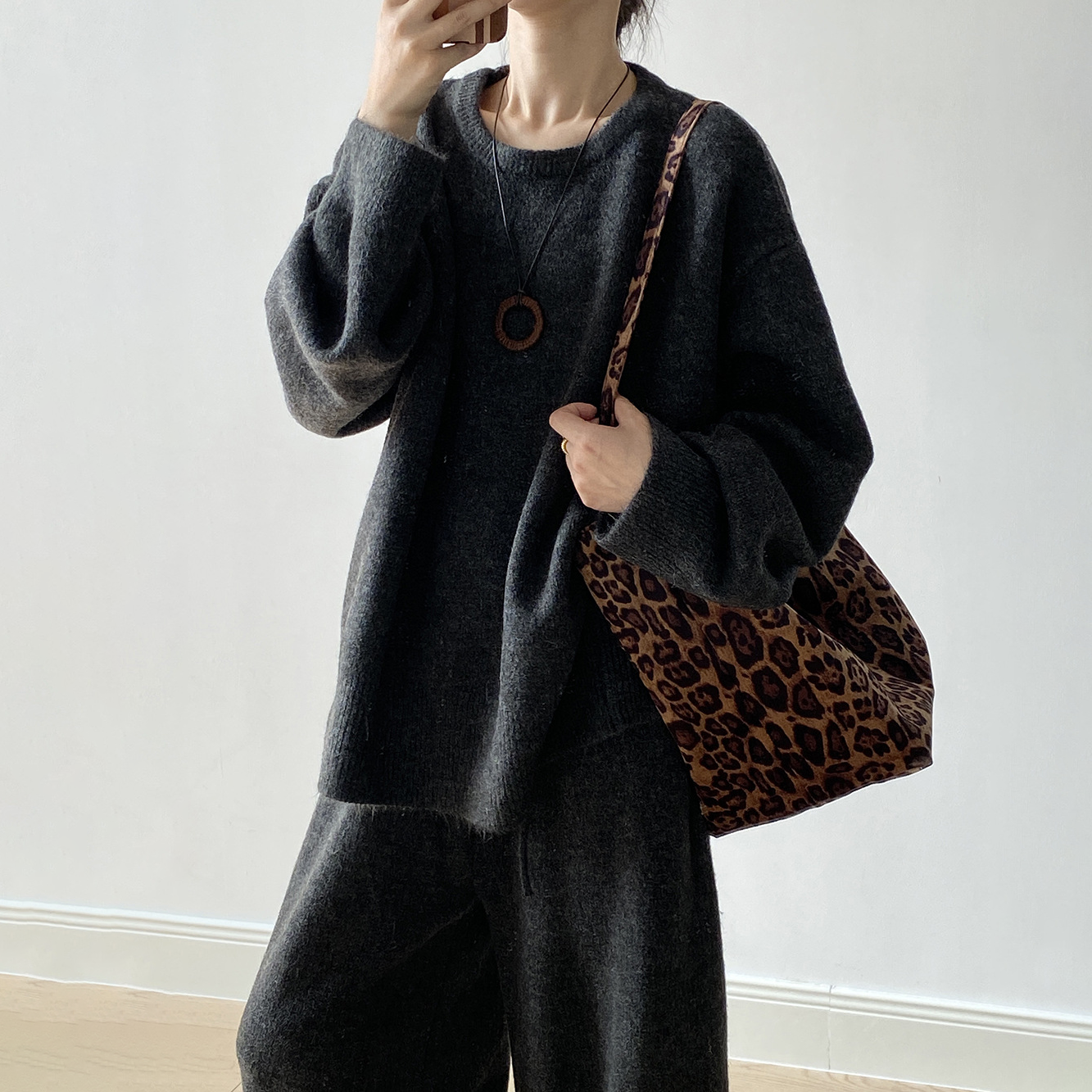 2点セット!【セットアップ】ふんわりニット 上下セット レディース 秋冬 ゆったり プルオーバー+ニットパンツ 韓国風 カジュアル【JZシリーズ】