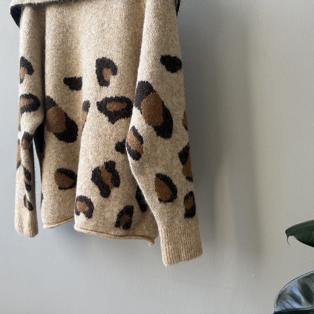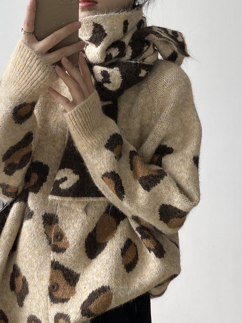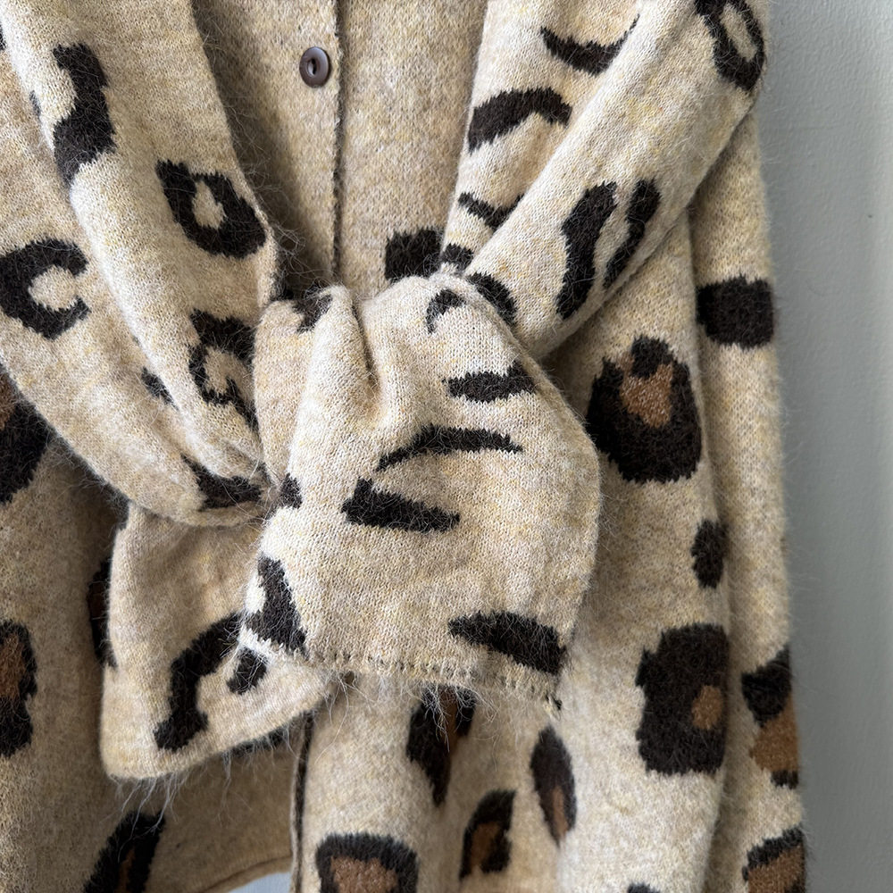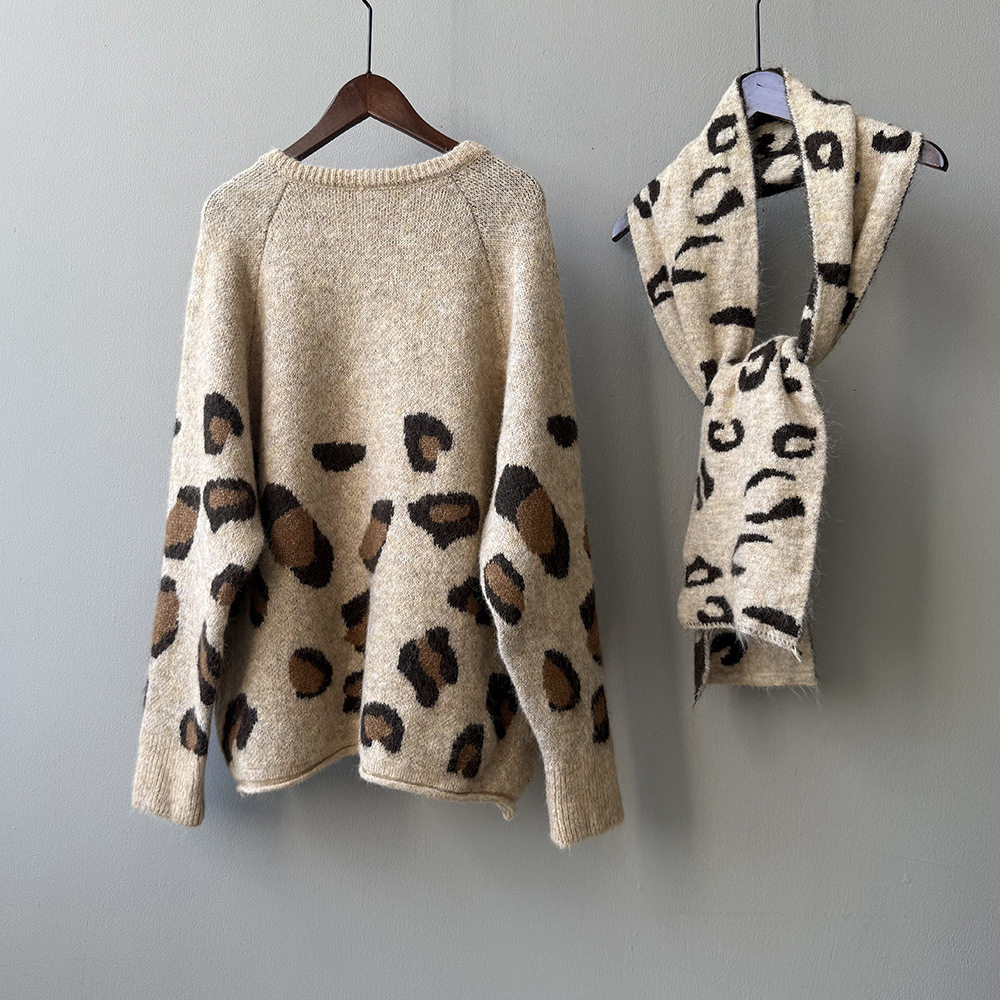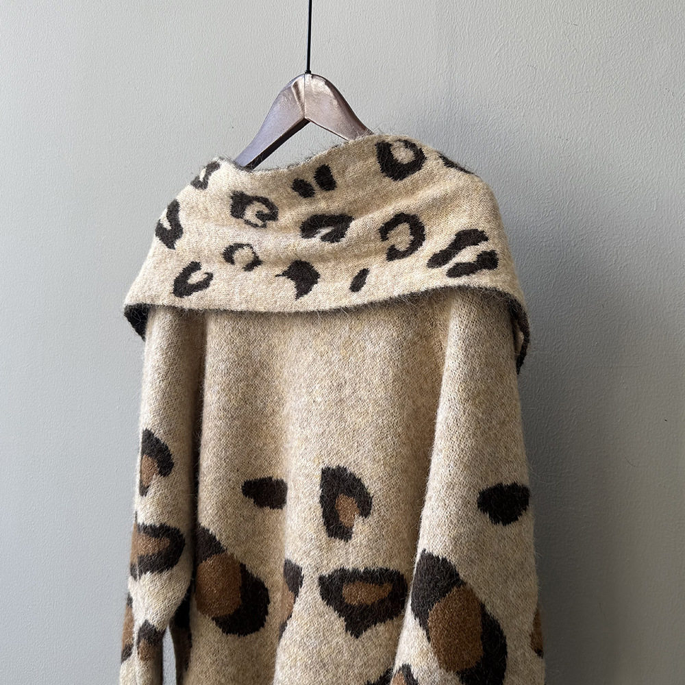 【トップス】ゆるニット レオパード柄カーディガン マフラー付き 秋冬 暖かい おしゃれ レディース【JZシリーズ】