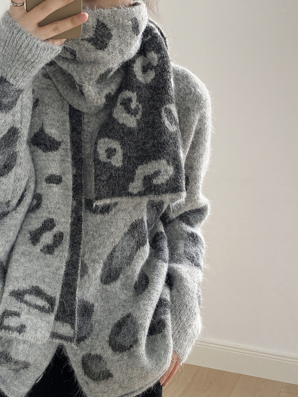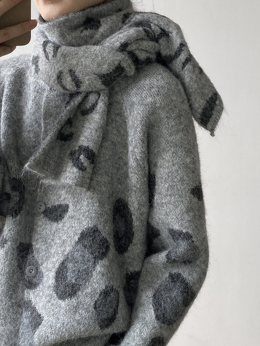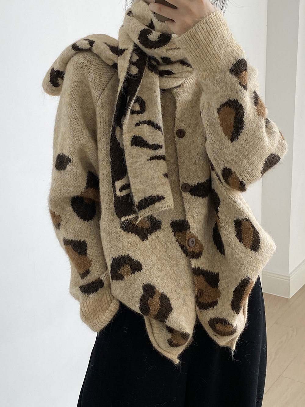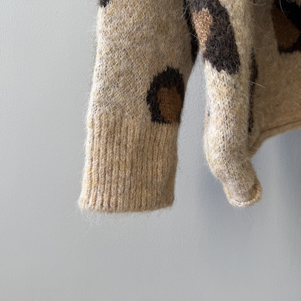 【トップス】ゆるニット レオパード柄カーディガン マフラー付き 秋冬 暖かい おしゃれ レディース【JZシリーズ】