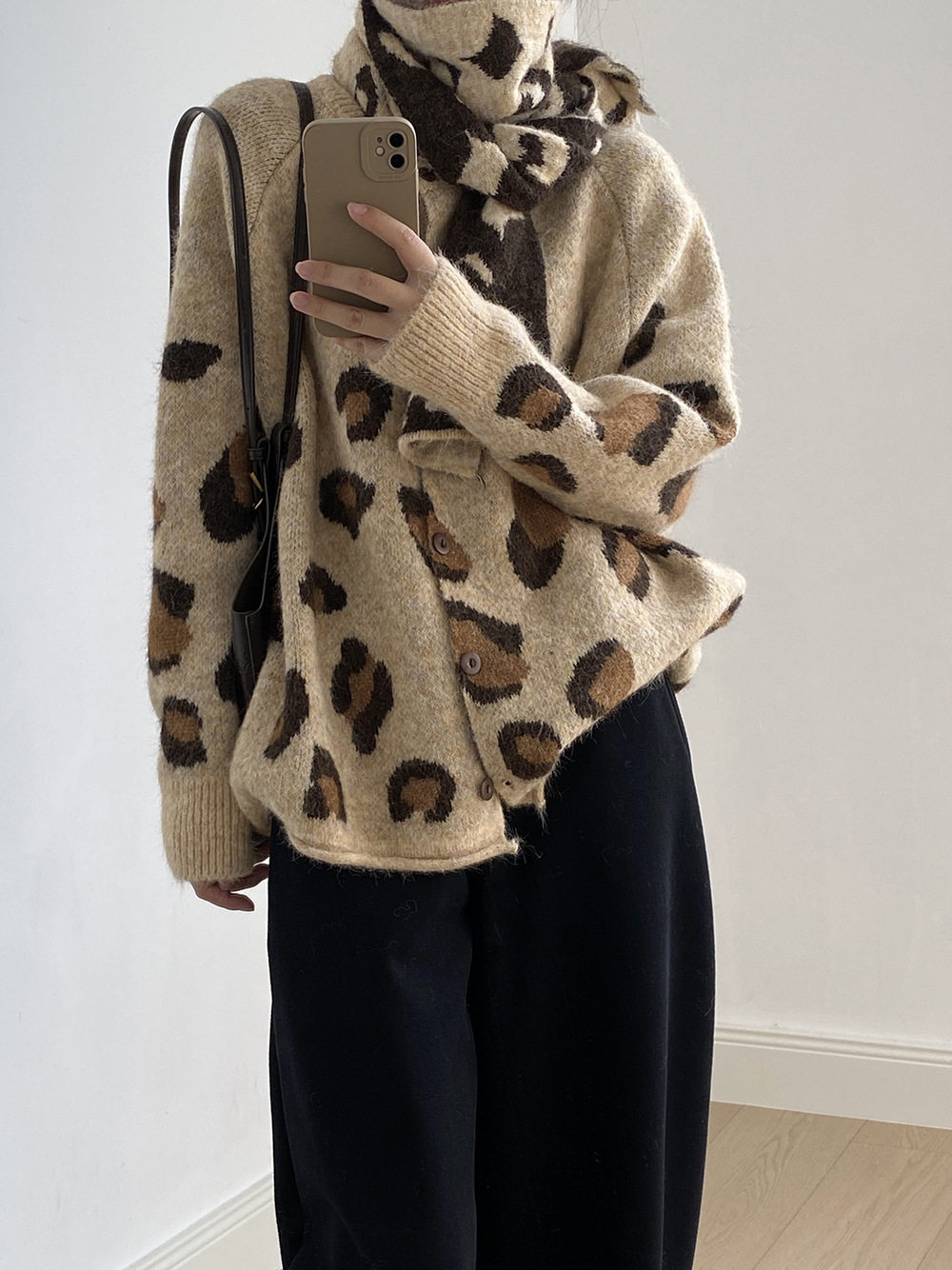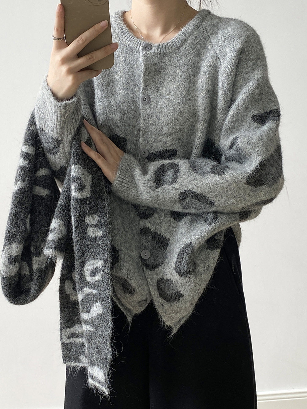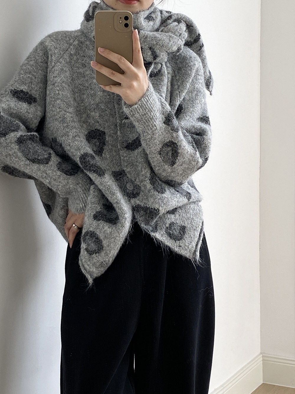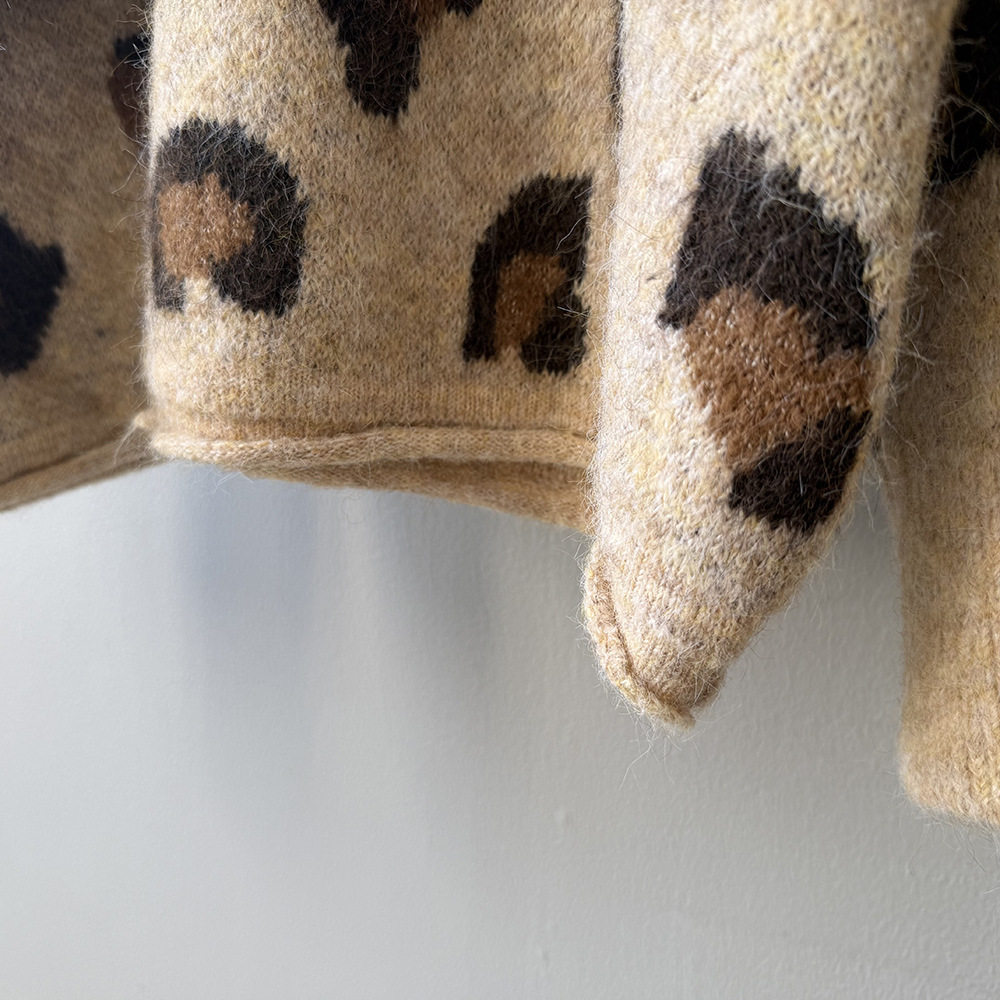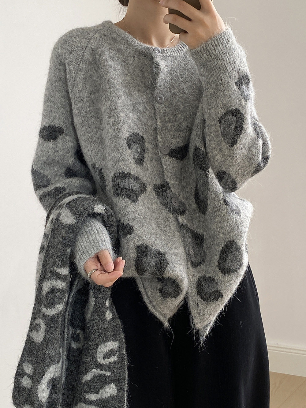 【トップス】ゆるニット レオパード柄カーディガン マフラー付き 秋冬 暖かい おしゃれ レディース【JZシリーズ】