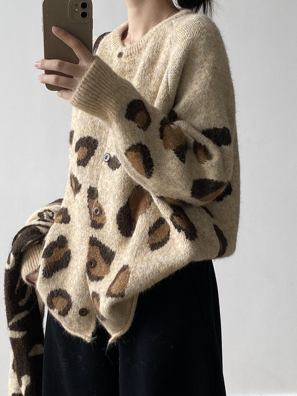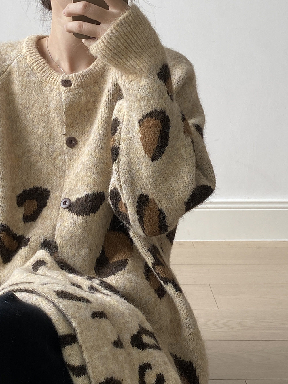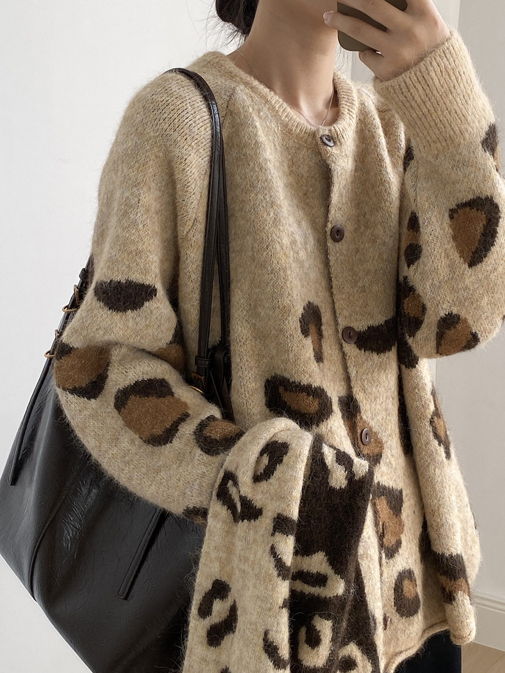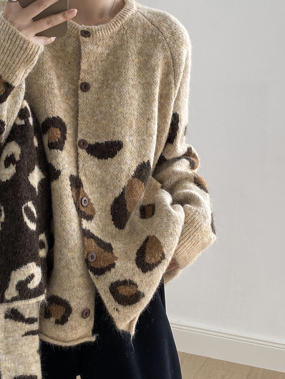 【トップス】ゆるニット レオパード柄カーディガン マフラー付き 秋冬 暖かい おしゃれ レディース【JZシリーズ】