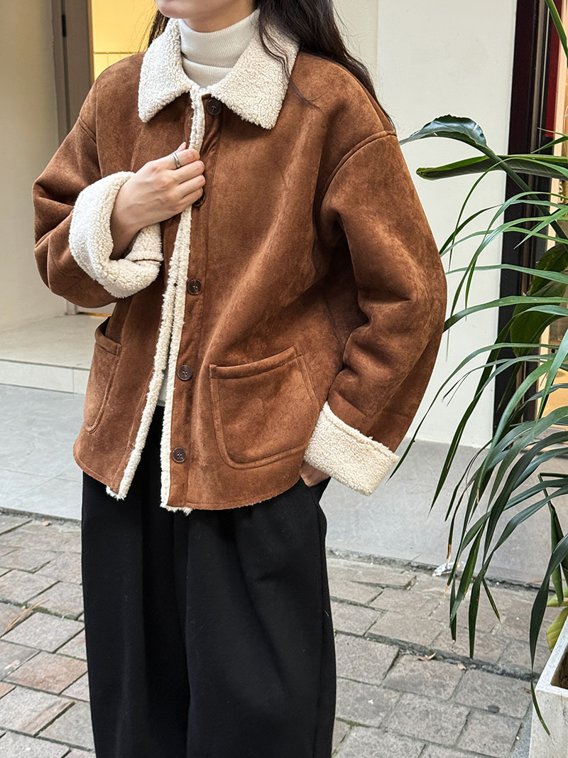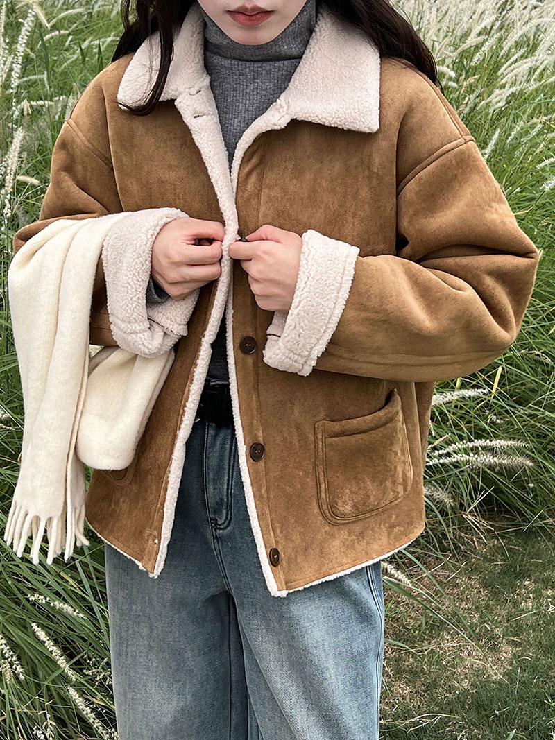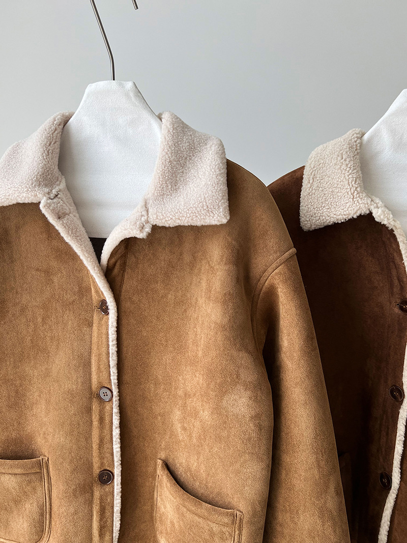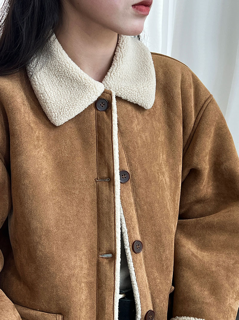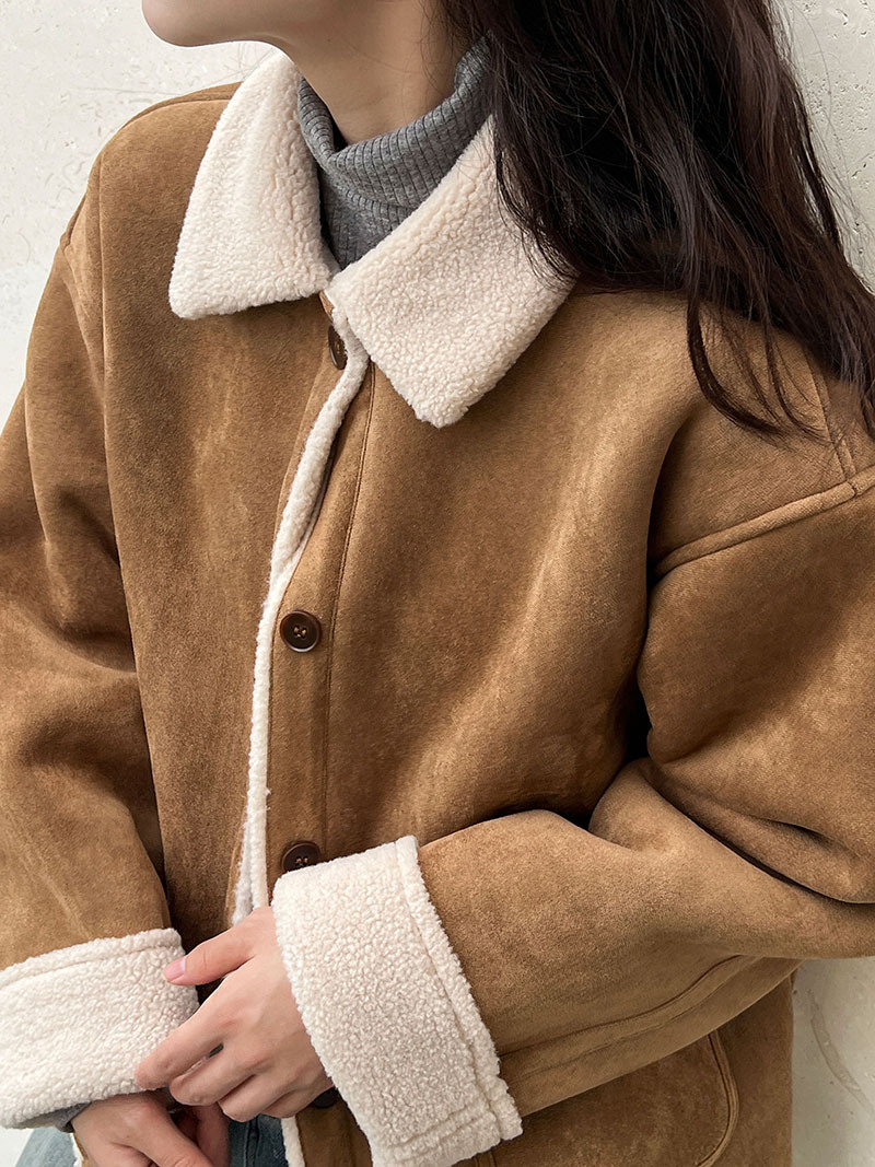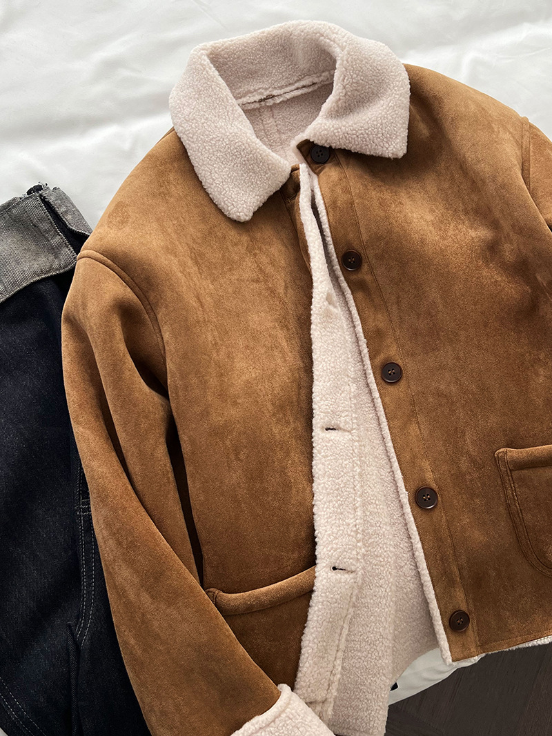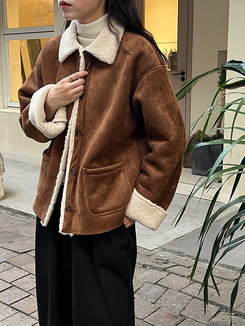 【アウター】春 秋 冬 ムートン風 折り襟 シープボア スエード調 ジャケット 【JZシリーズ】