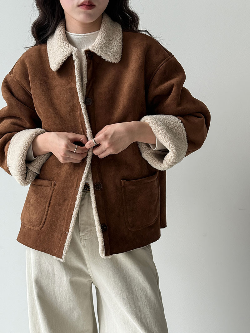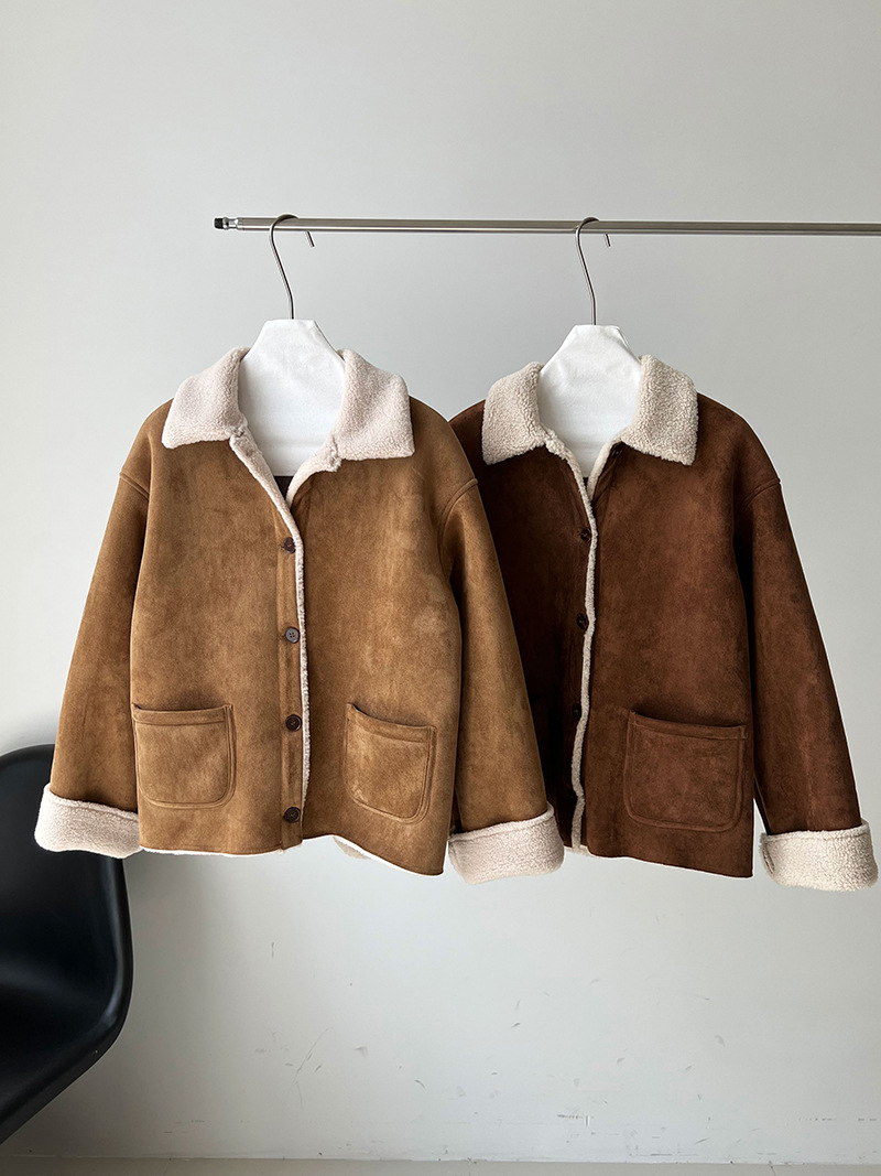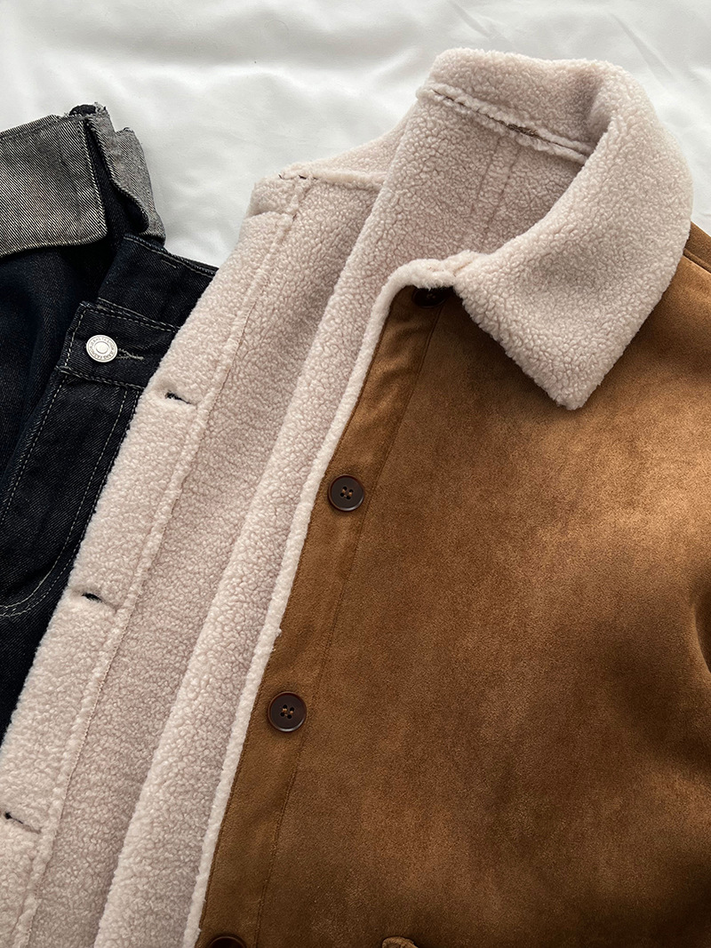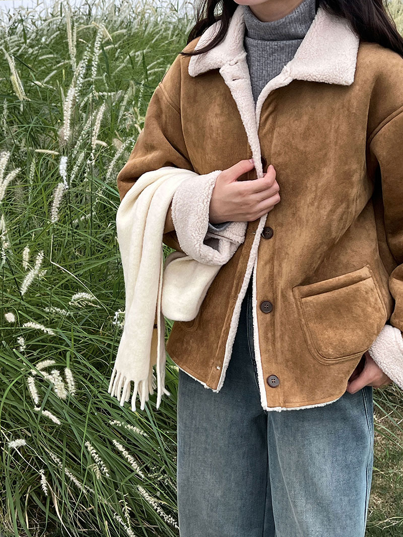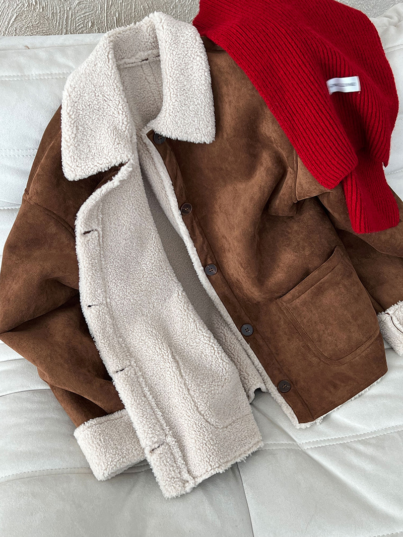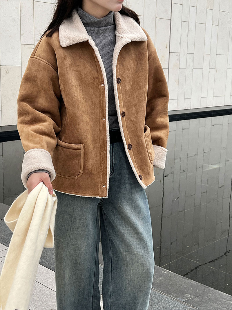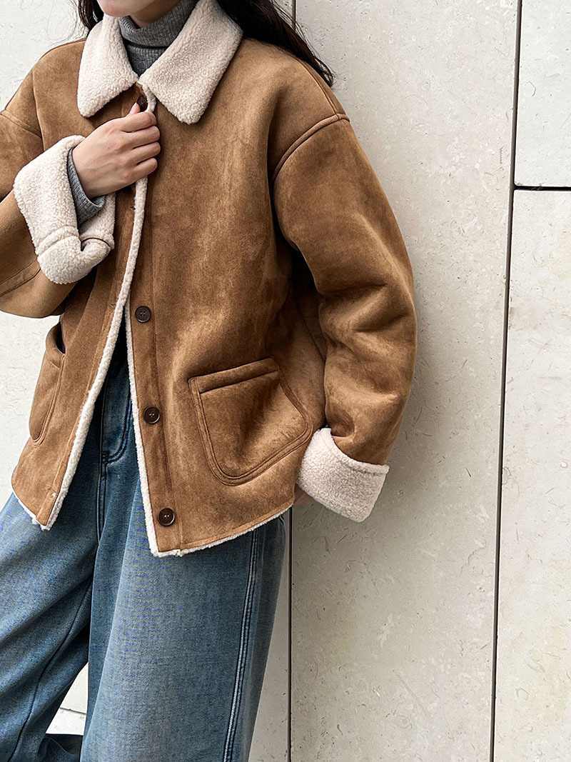 【アウター】春 秋 冬 ムートン風 折り襟 シープボア スエード調 ジャケット 【JZシリーズ】