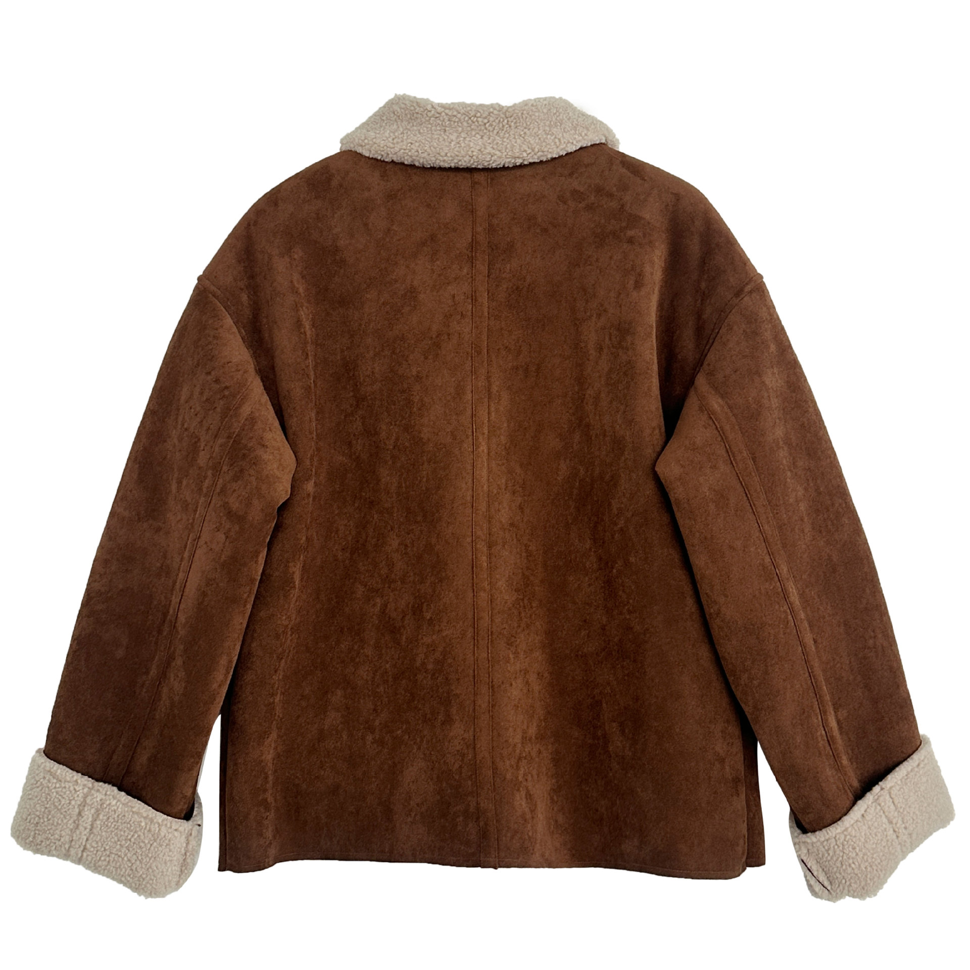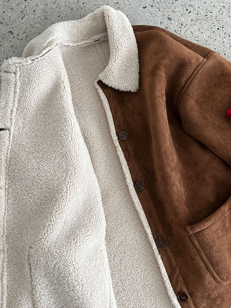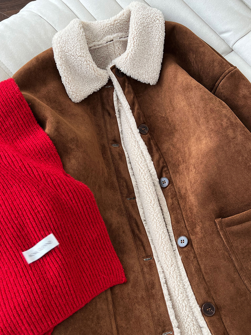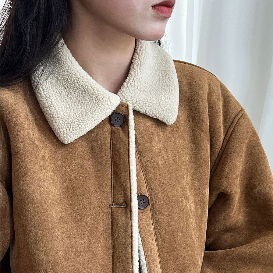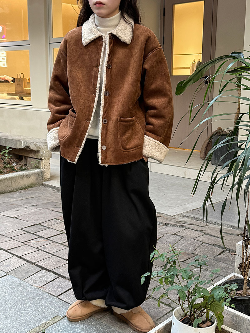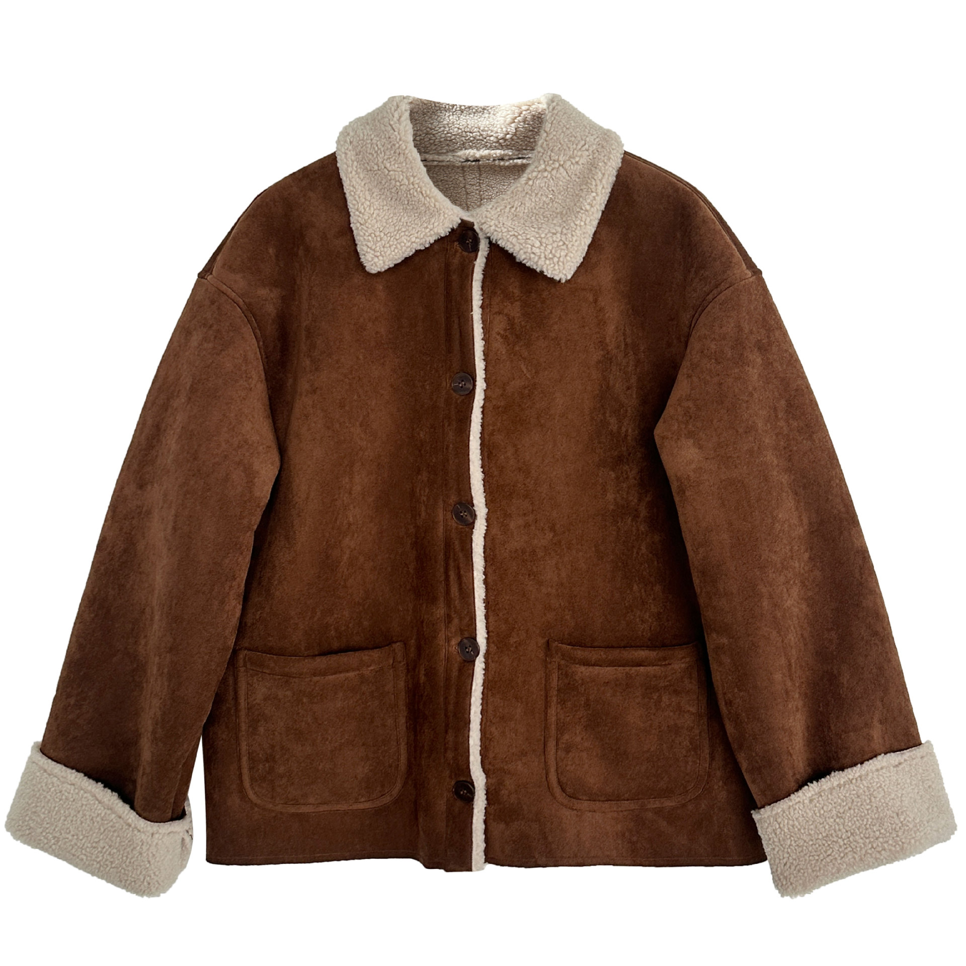 【アウター】春 秋 冬 ムートン風 折り襟 シープボア スエード調 ジャケット 【JZシリーズ】