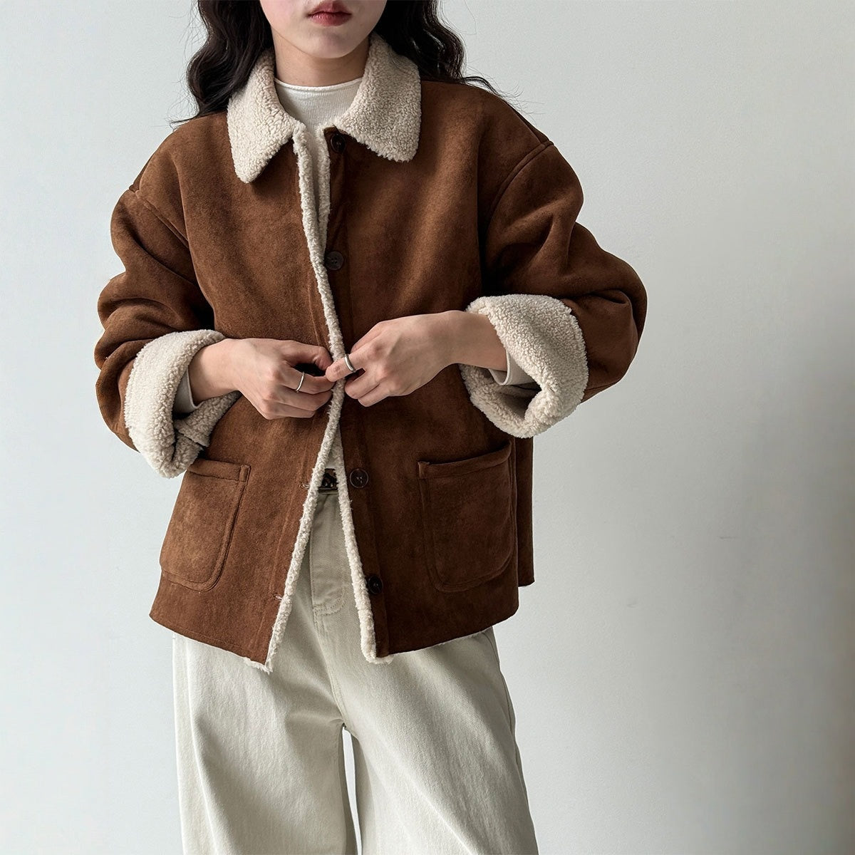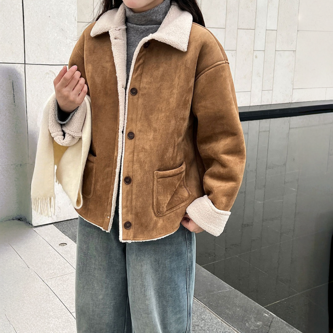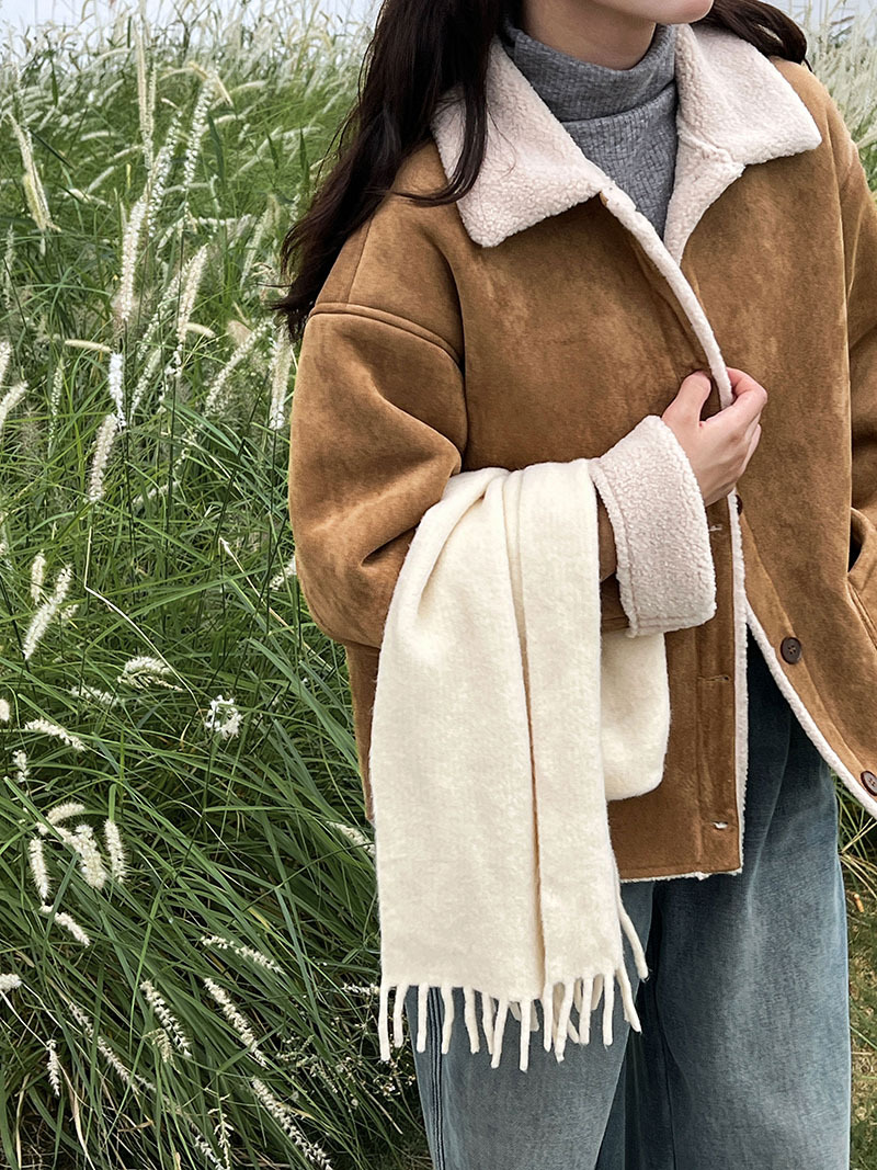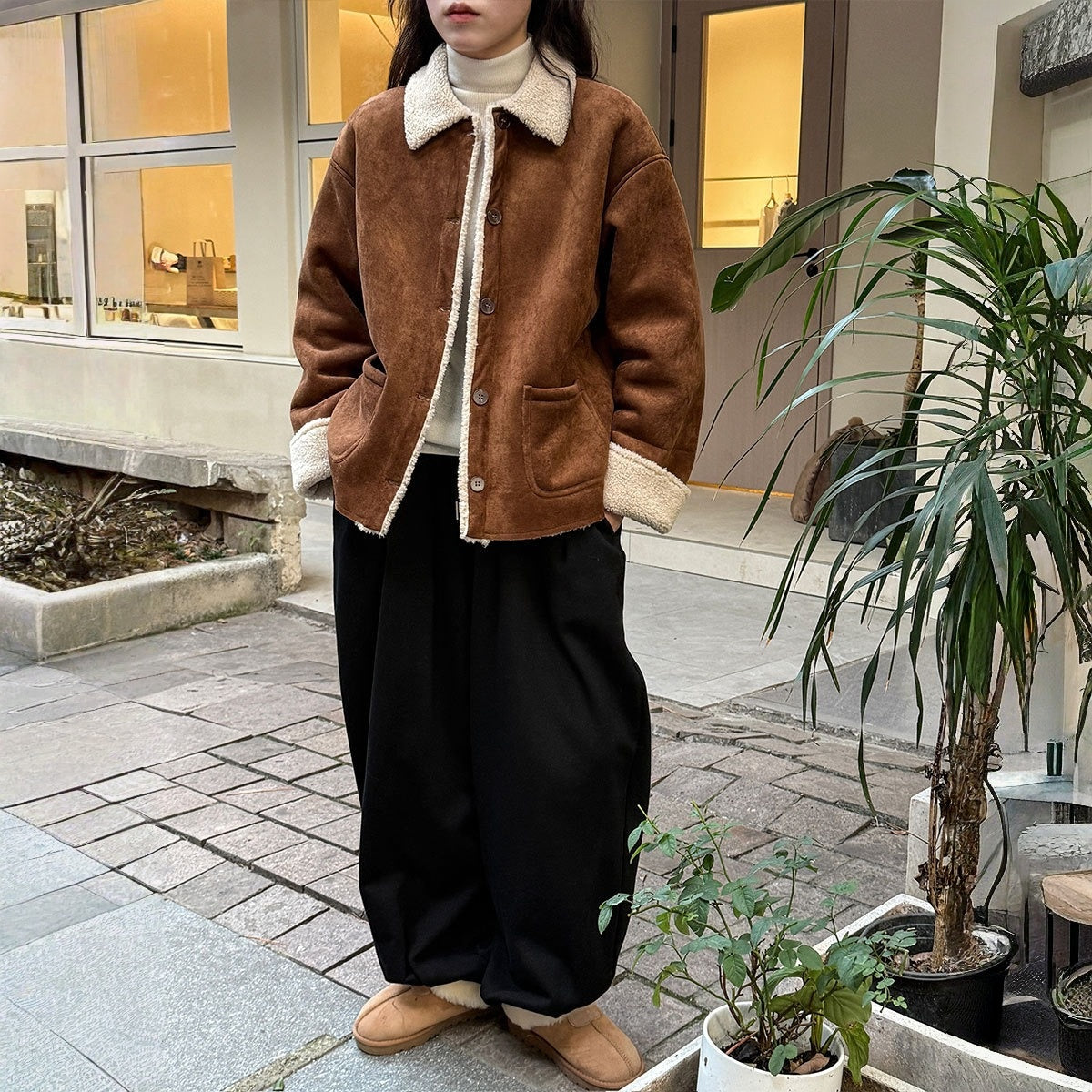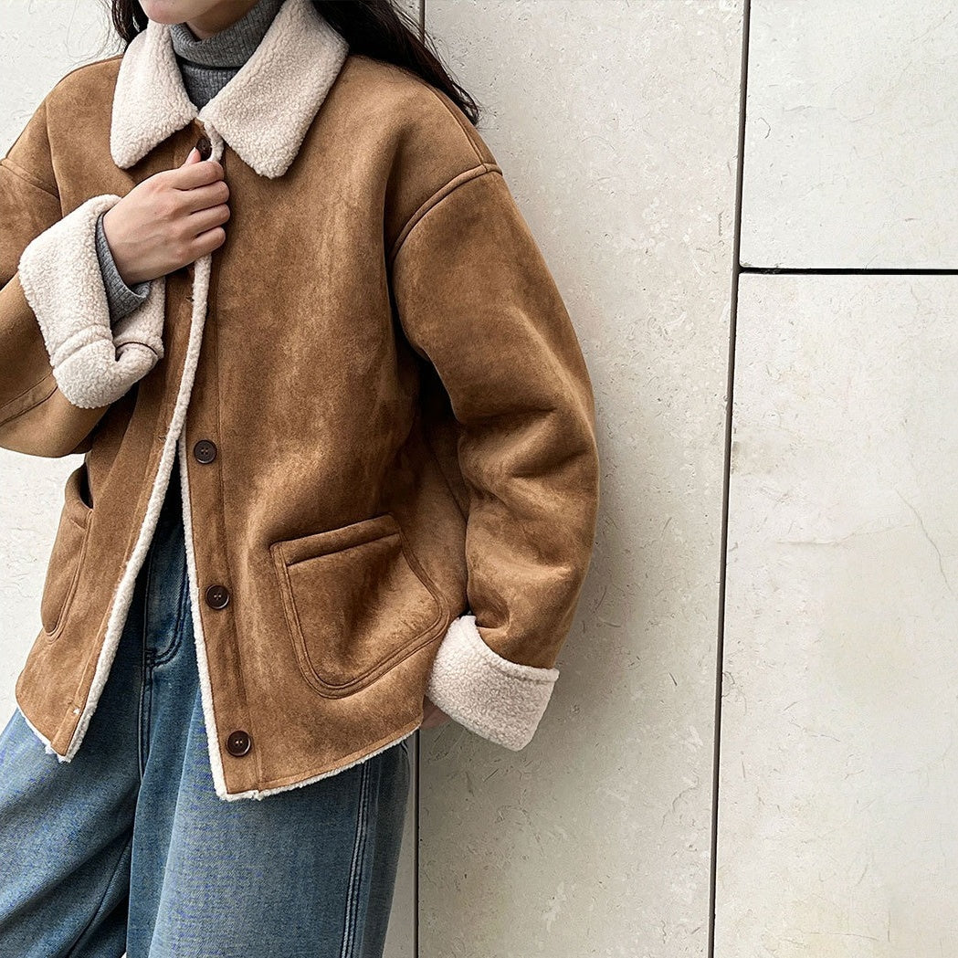 【アウター】春 秋 冬 ムートン風 折り襟 シープボア スエード調 ジャケット 【JZシリーズ】