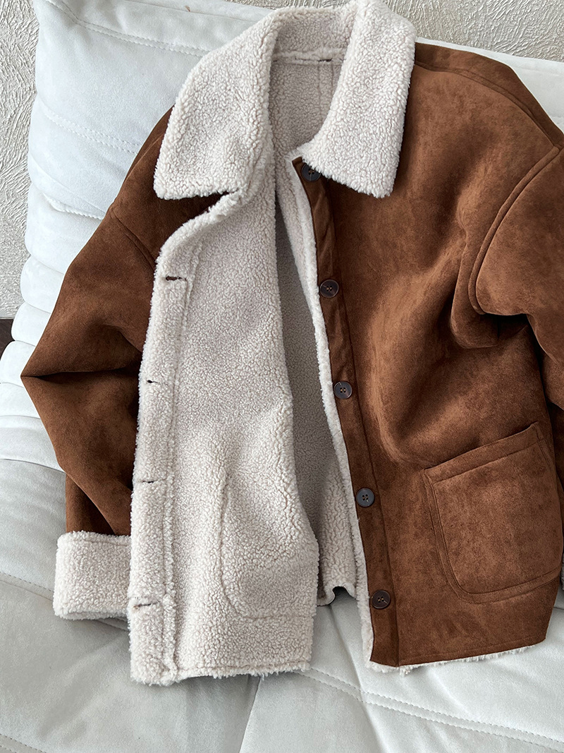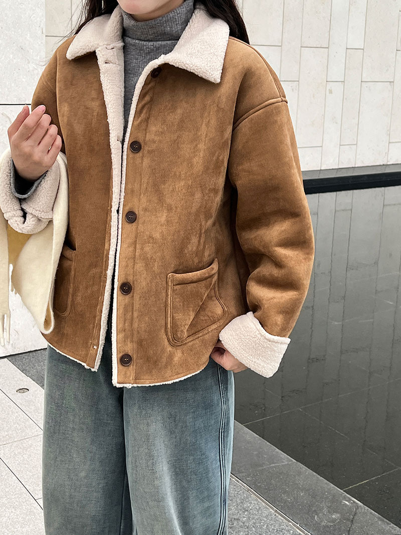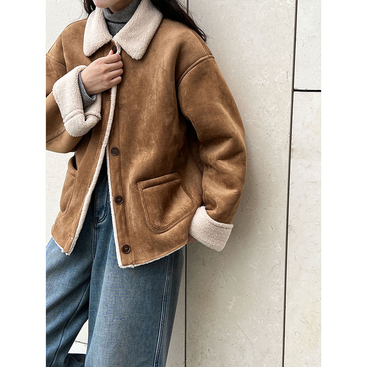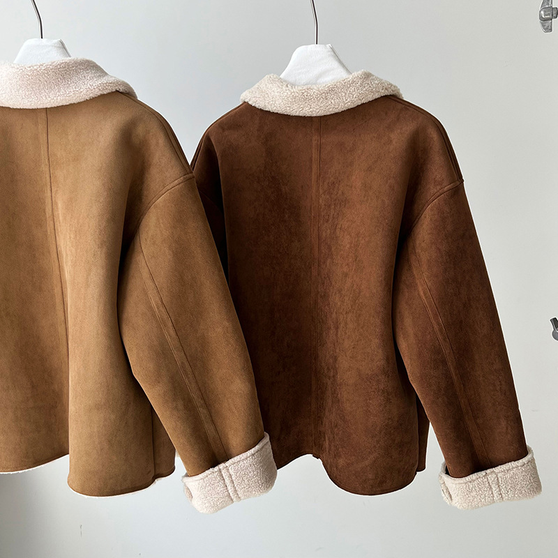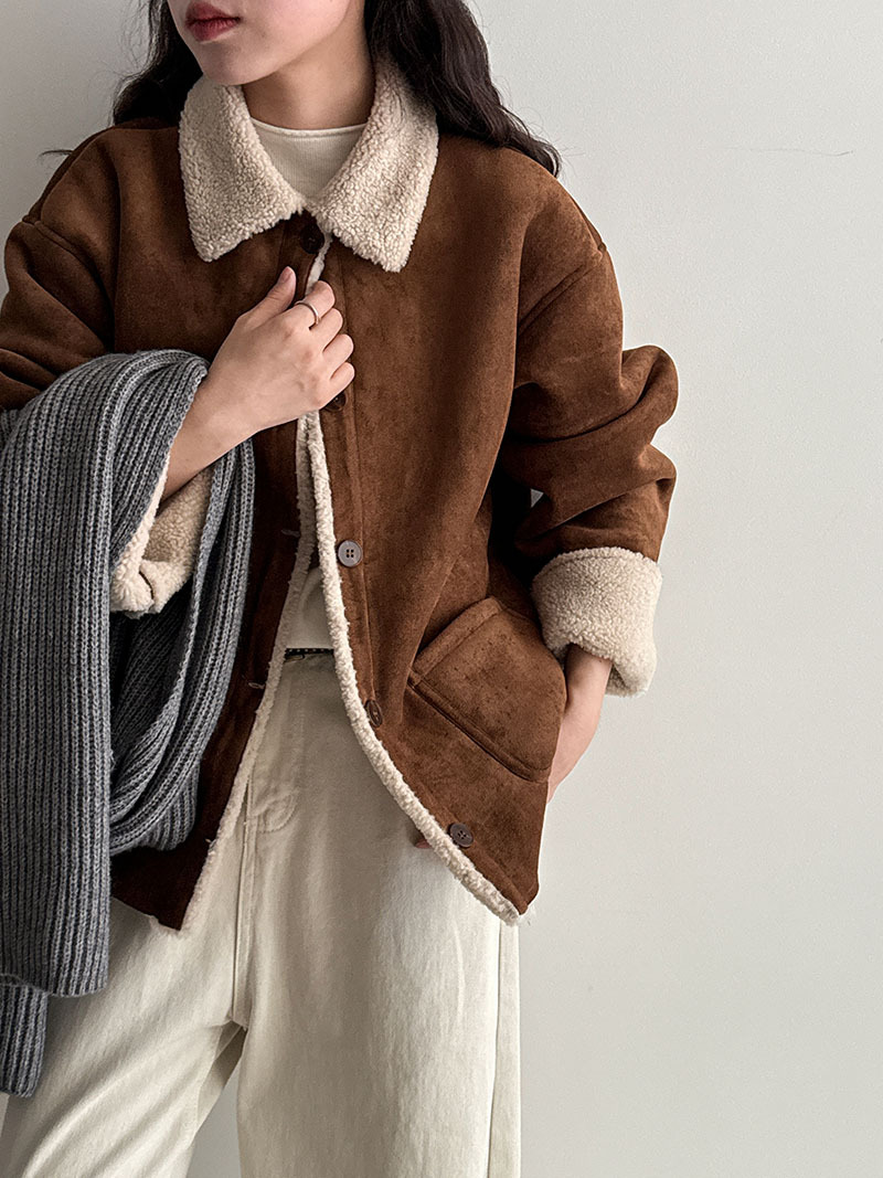 【商品名】【アウター】春 秋 冬 ムートン風 折り襟 シープボア スエード調 ジャケット 【JZシリーズ】