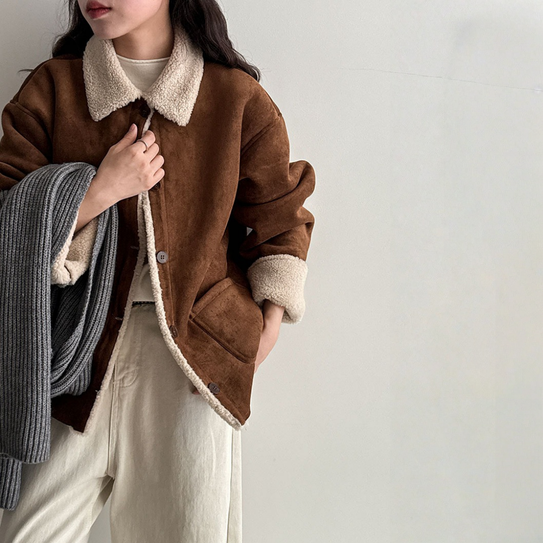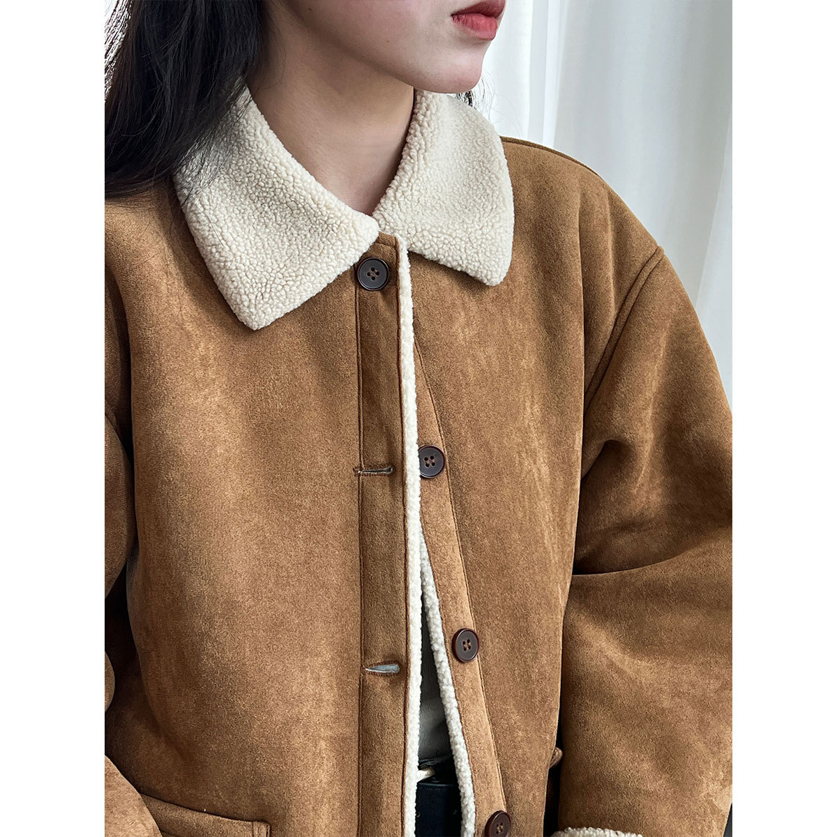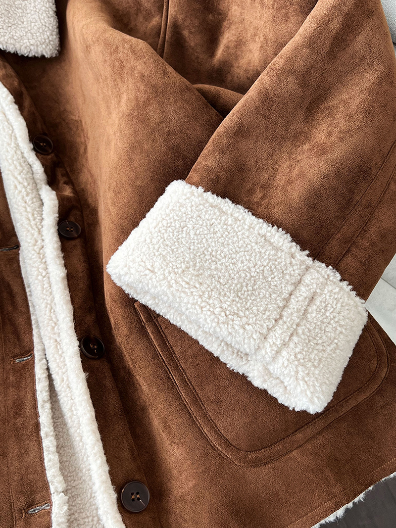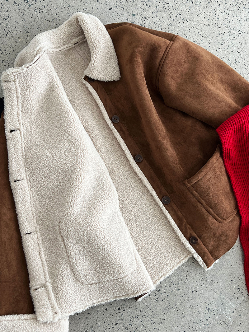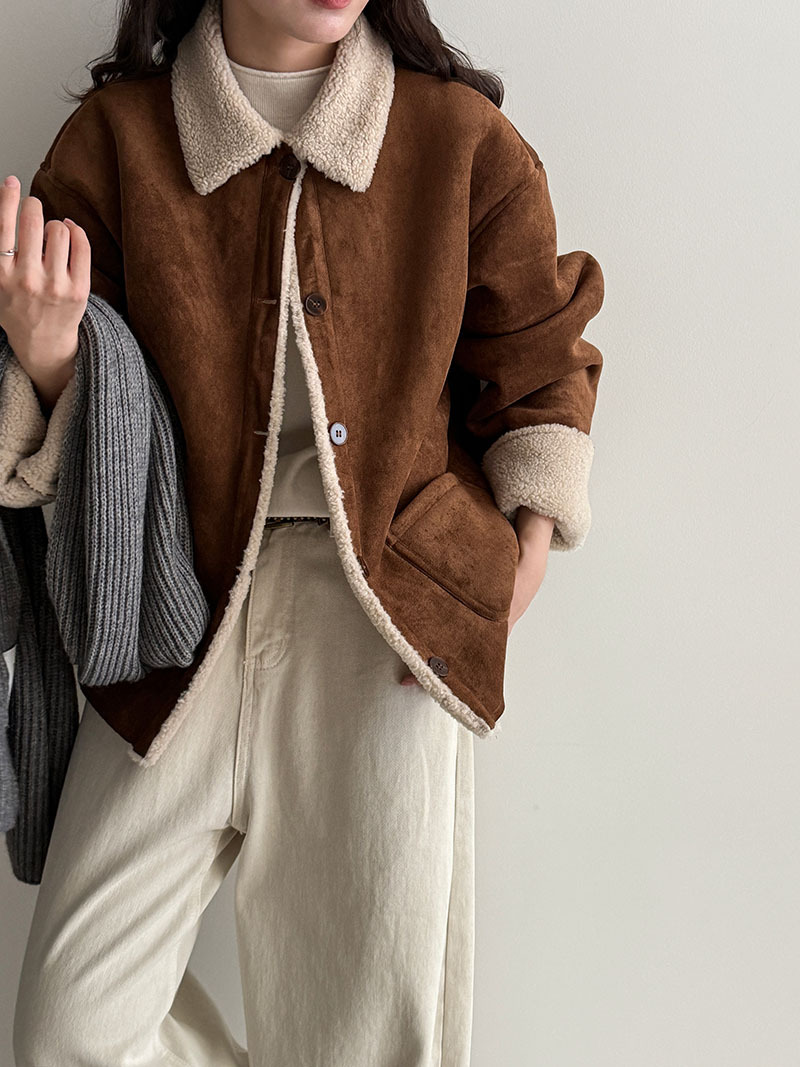【商品名】【アウター】春 秋 冬 ムートン風 折り襟 シープボア スエード調 ジャケット 【JZシリーズ】
