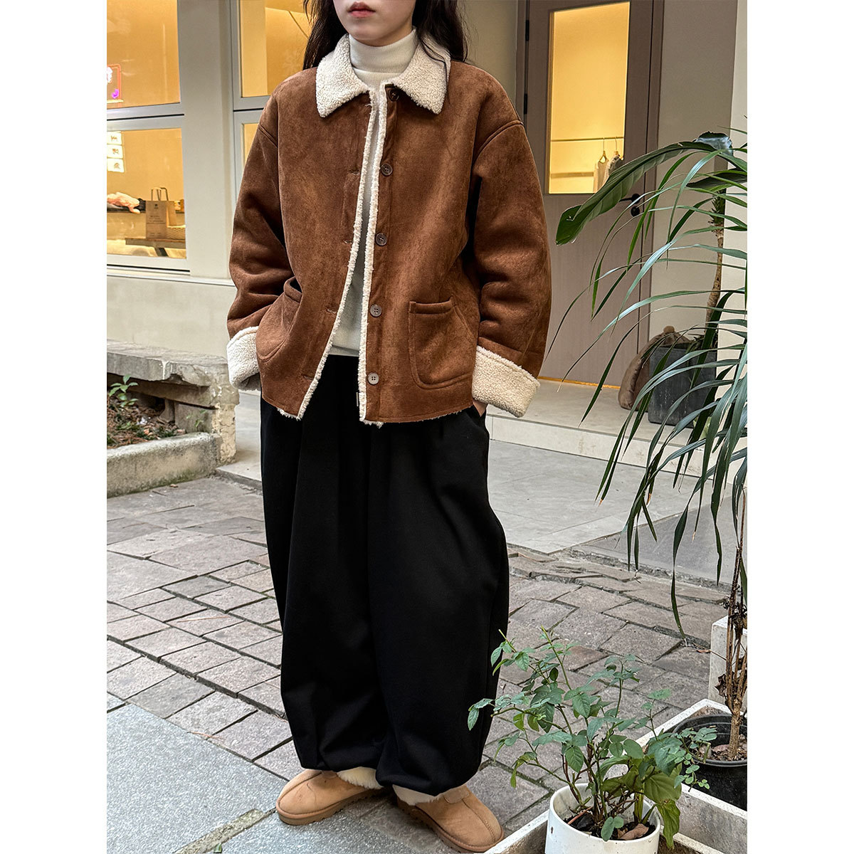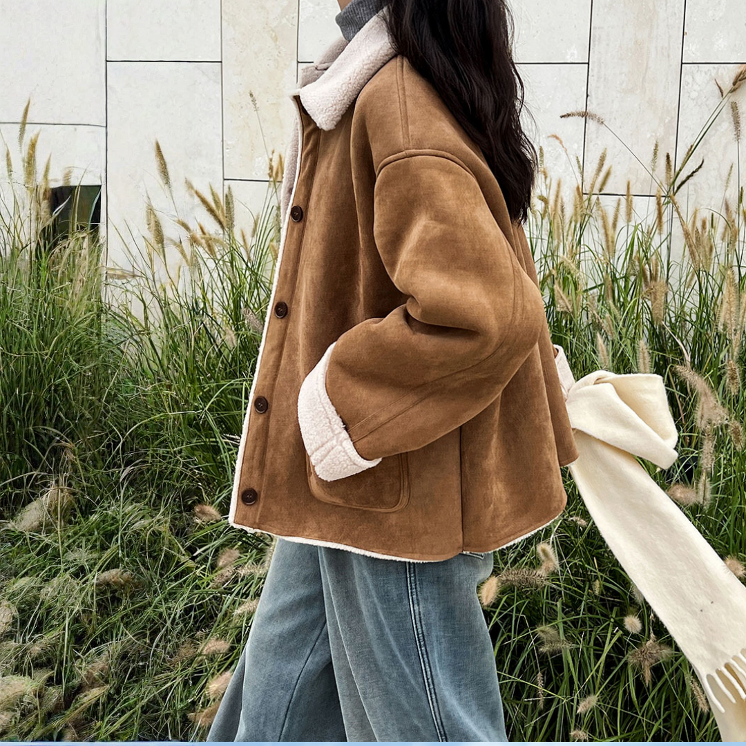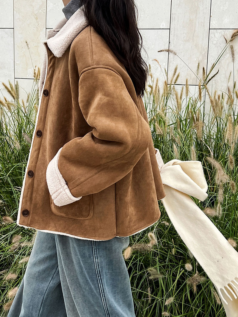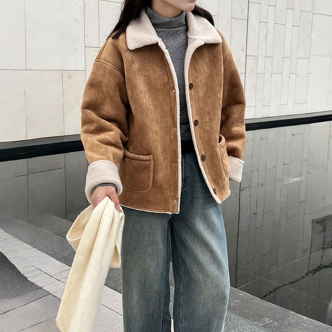 【商品名】【アウター】春 秋 冬 ムートン風 折り襟 シープボア スエード調 ジャケット 【JZシリーズ】