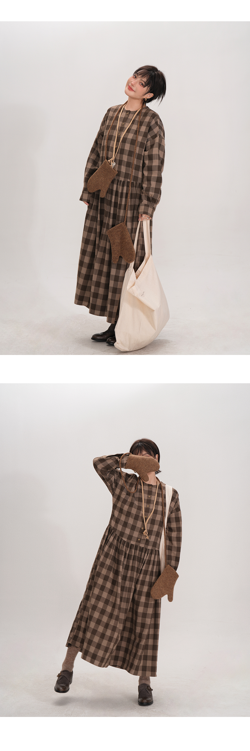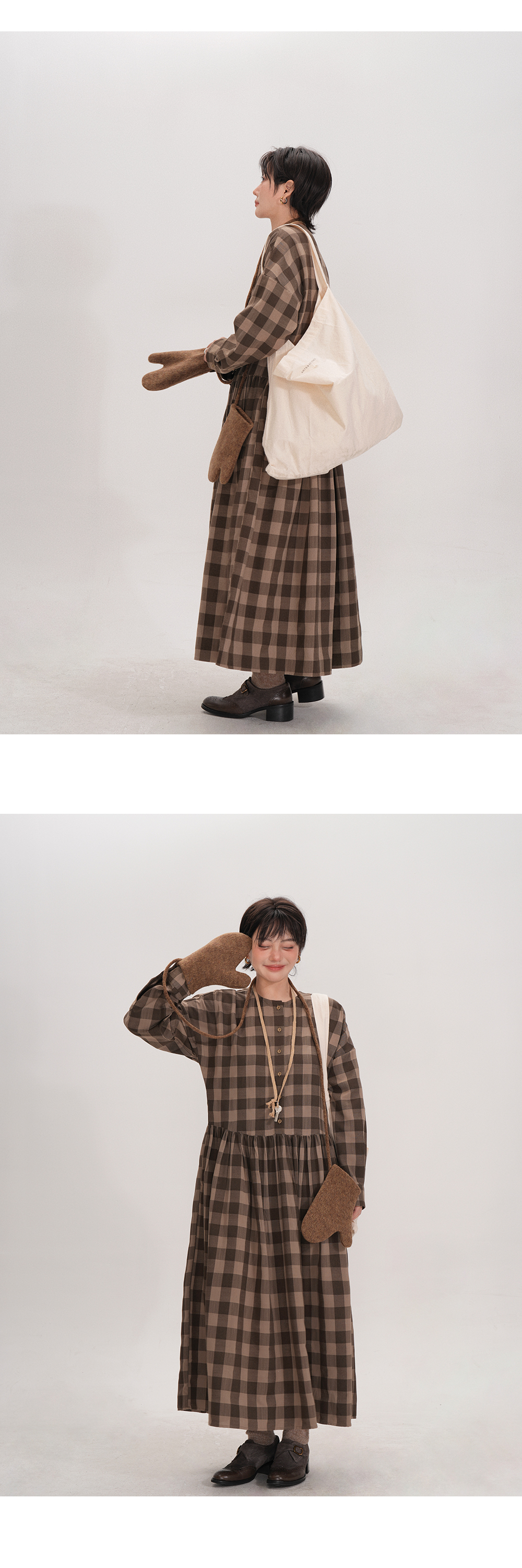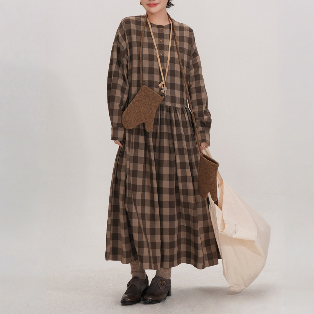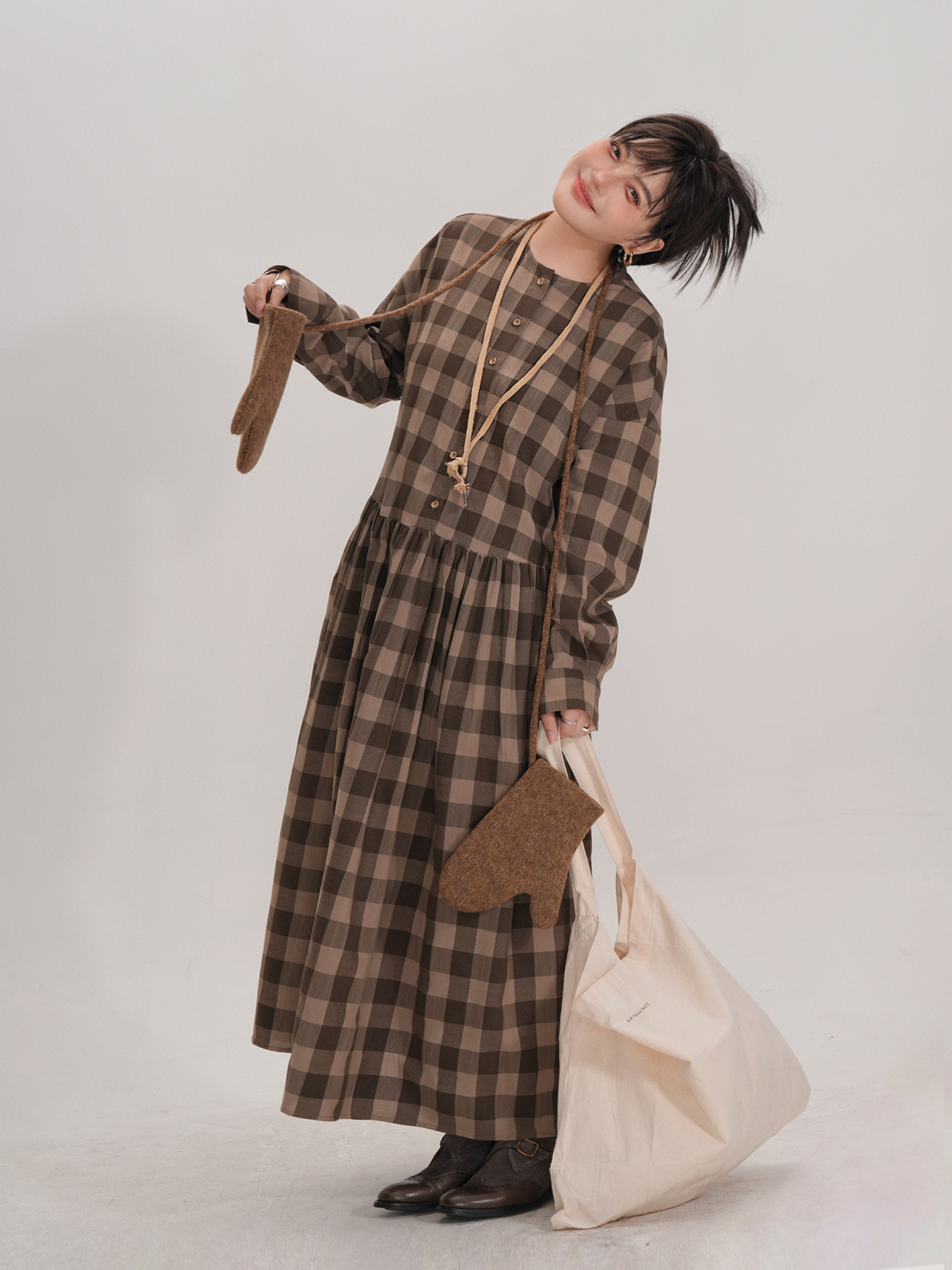 【ワンピース】春 秋 冬 チェック柄 ゆるリラックス ラウンドネック【JZシリーズ】