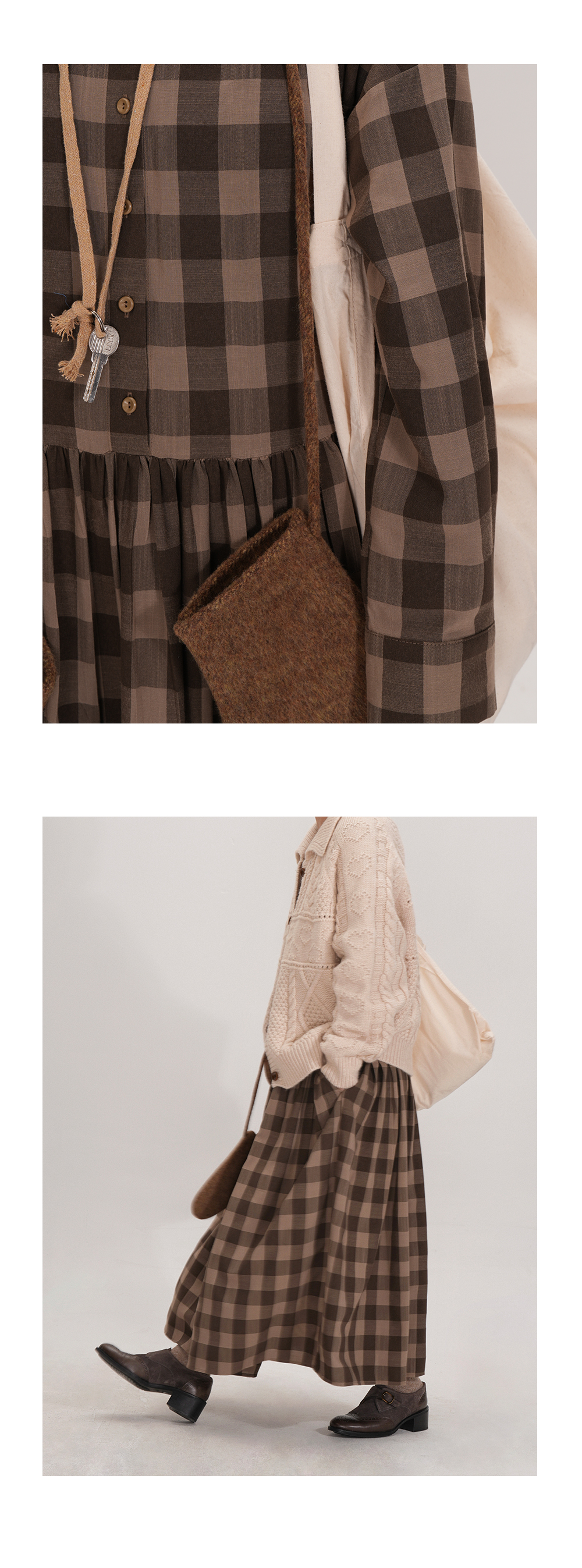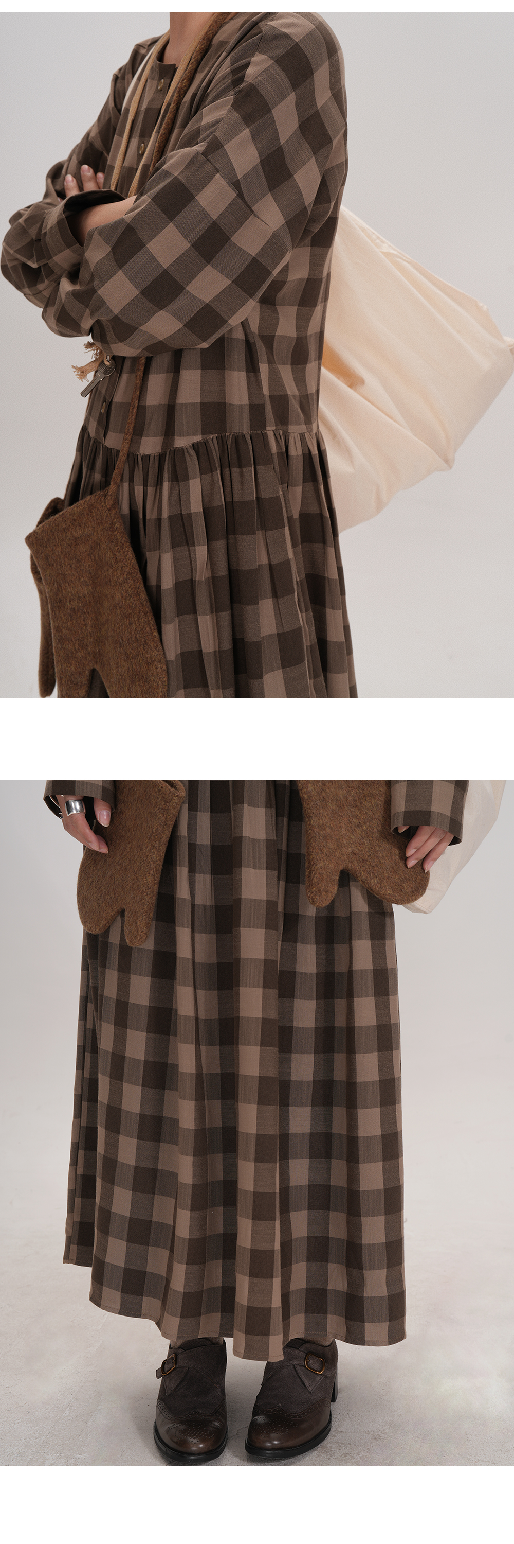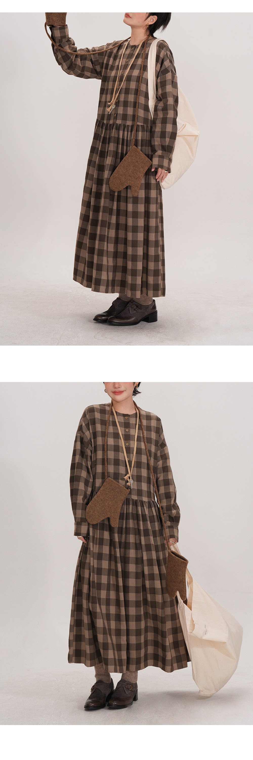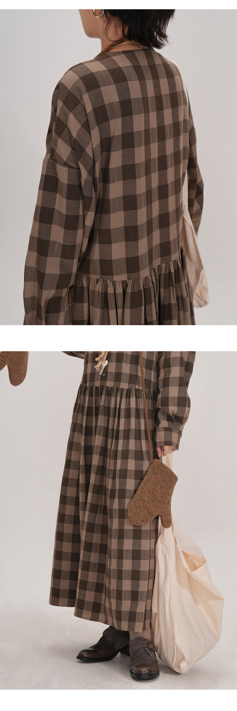【ワンピース】春 秋 冬 チェック柄 ゆるリラックス ラウンドネック【JZシリーズ】