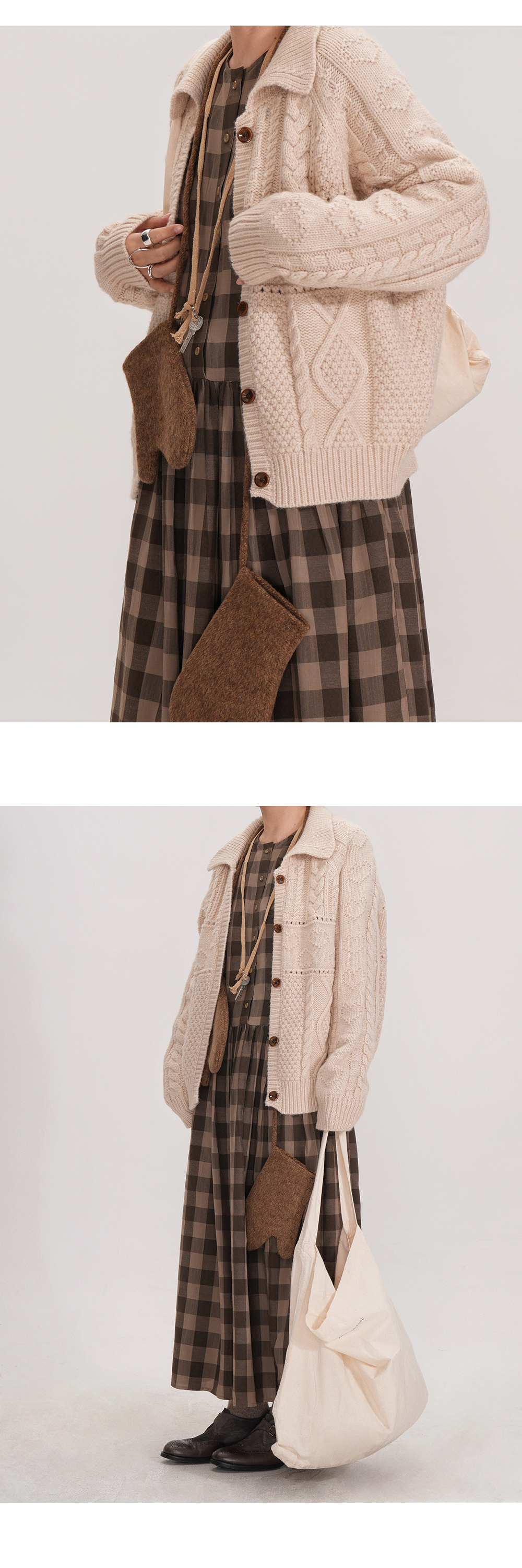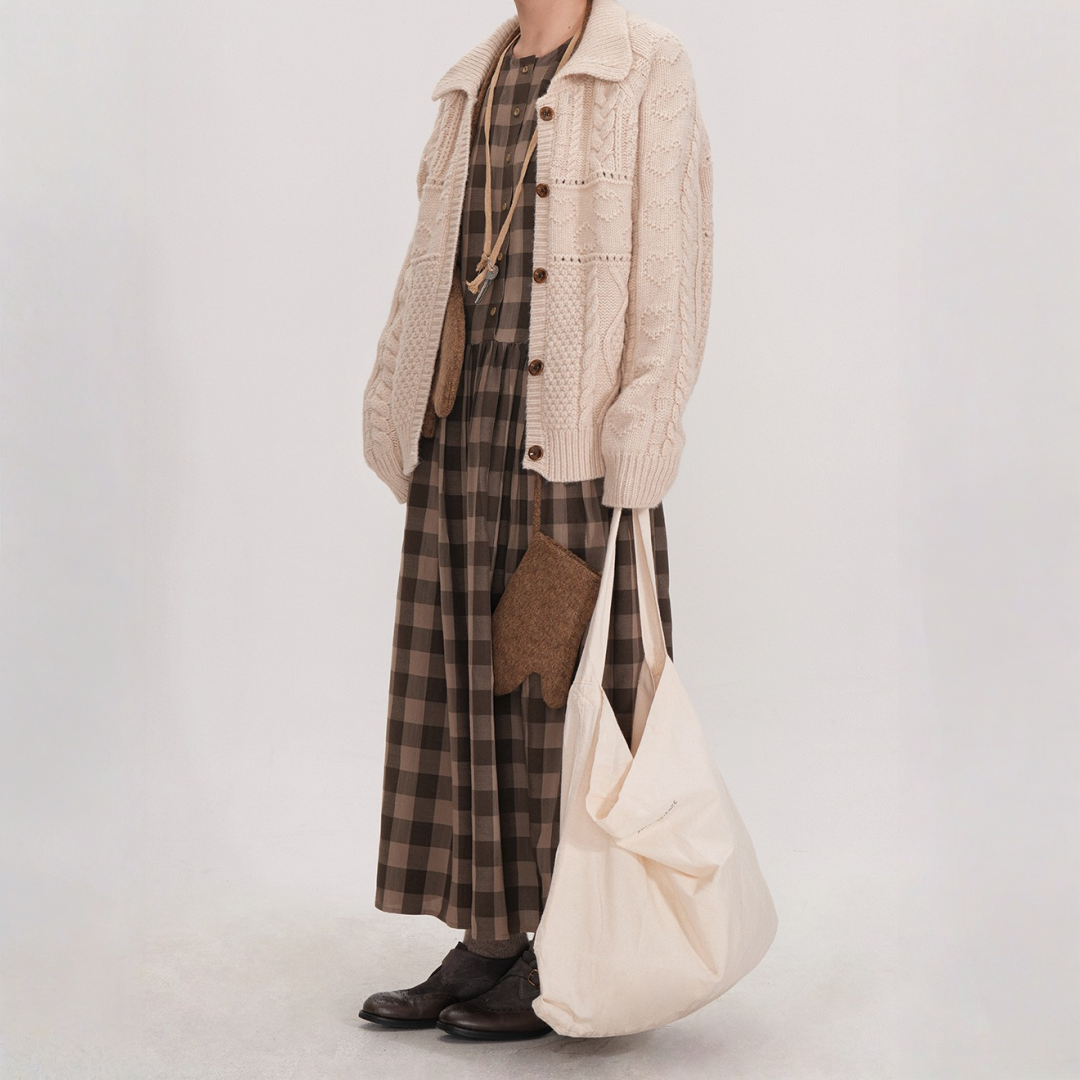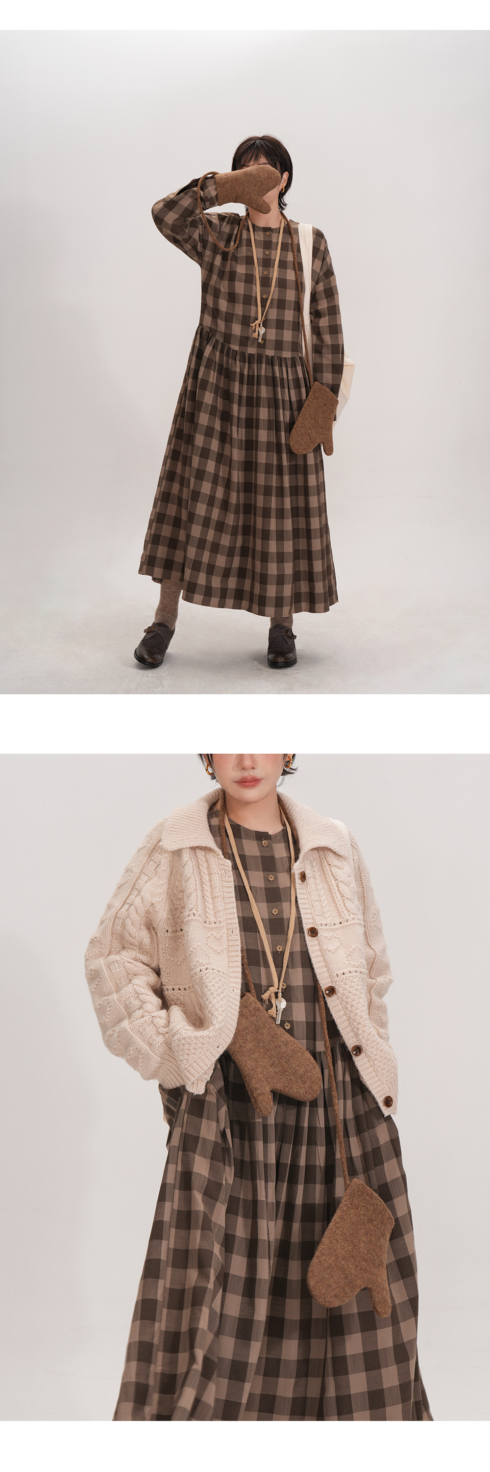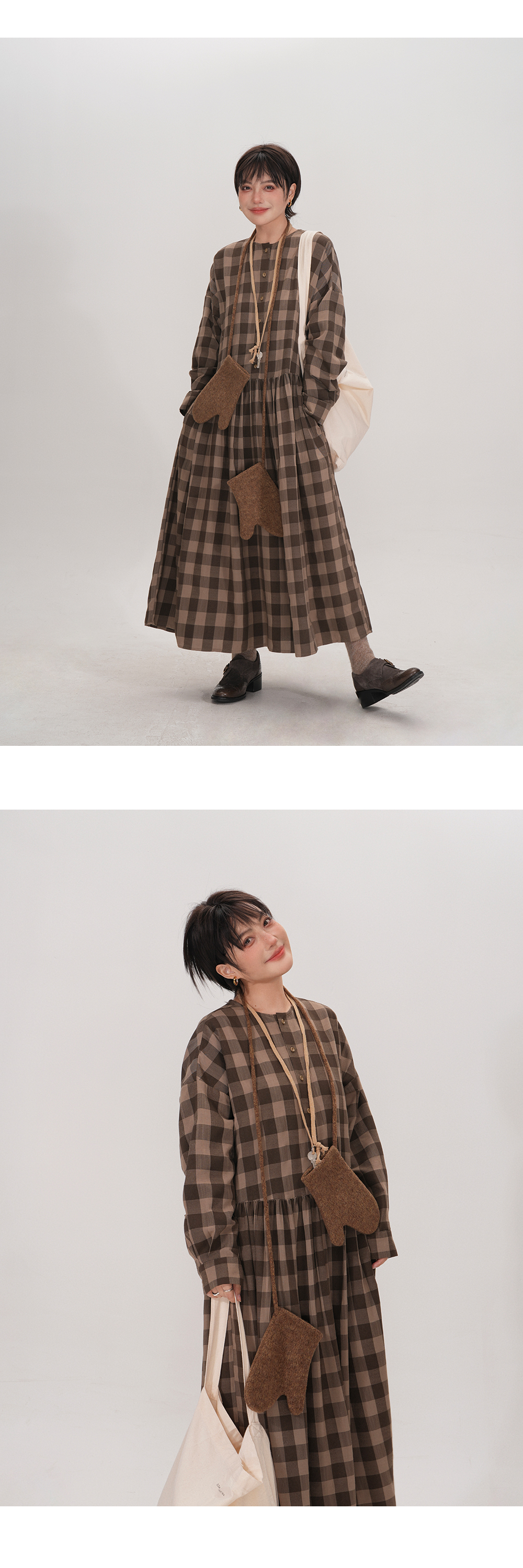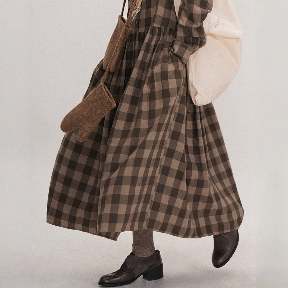 【ワンピース】起毛素材 チェック柄 レトロ クルーネック 長袖 ワンピース 【JZシリーズ】