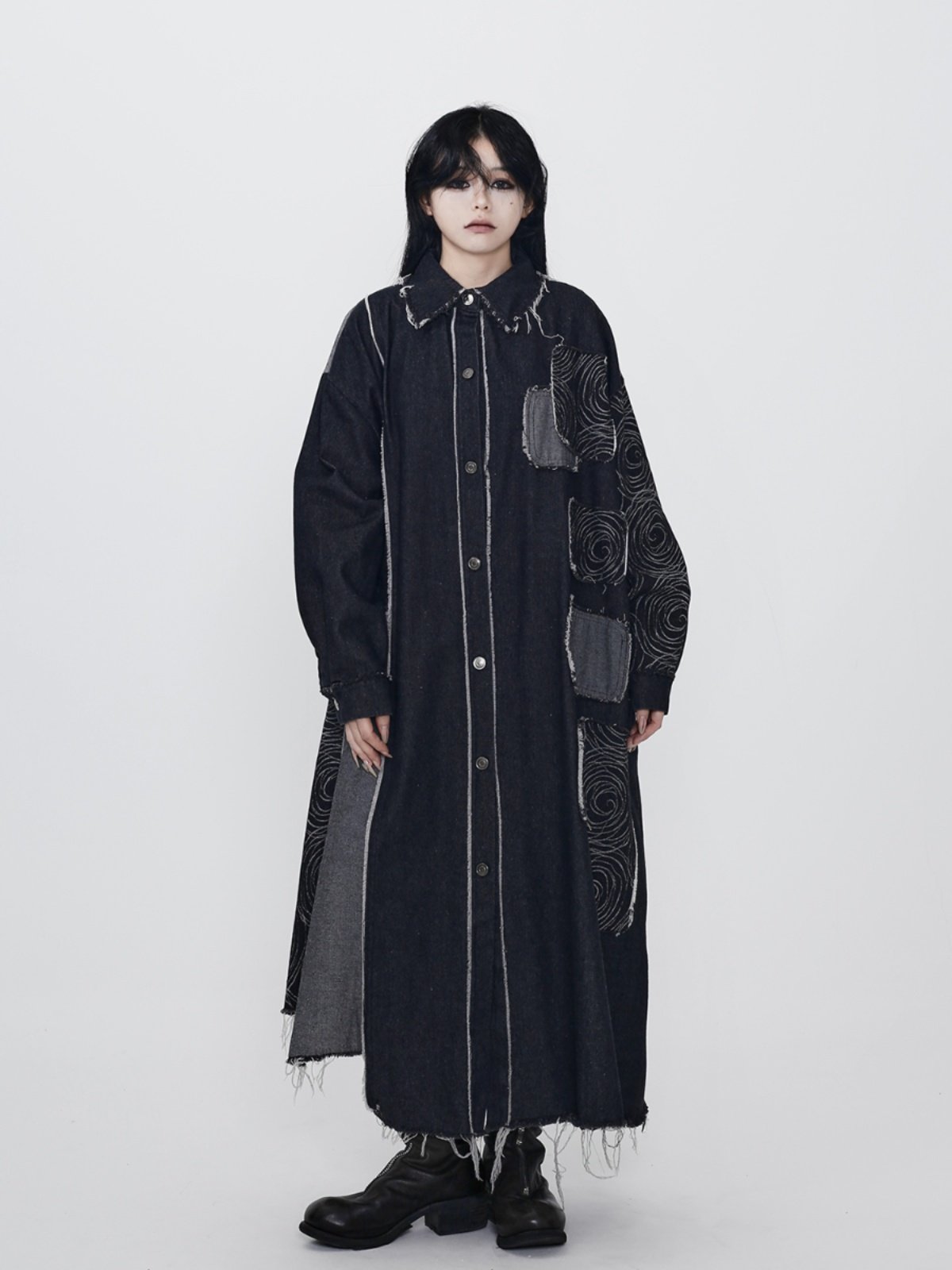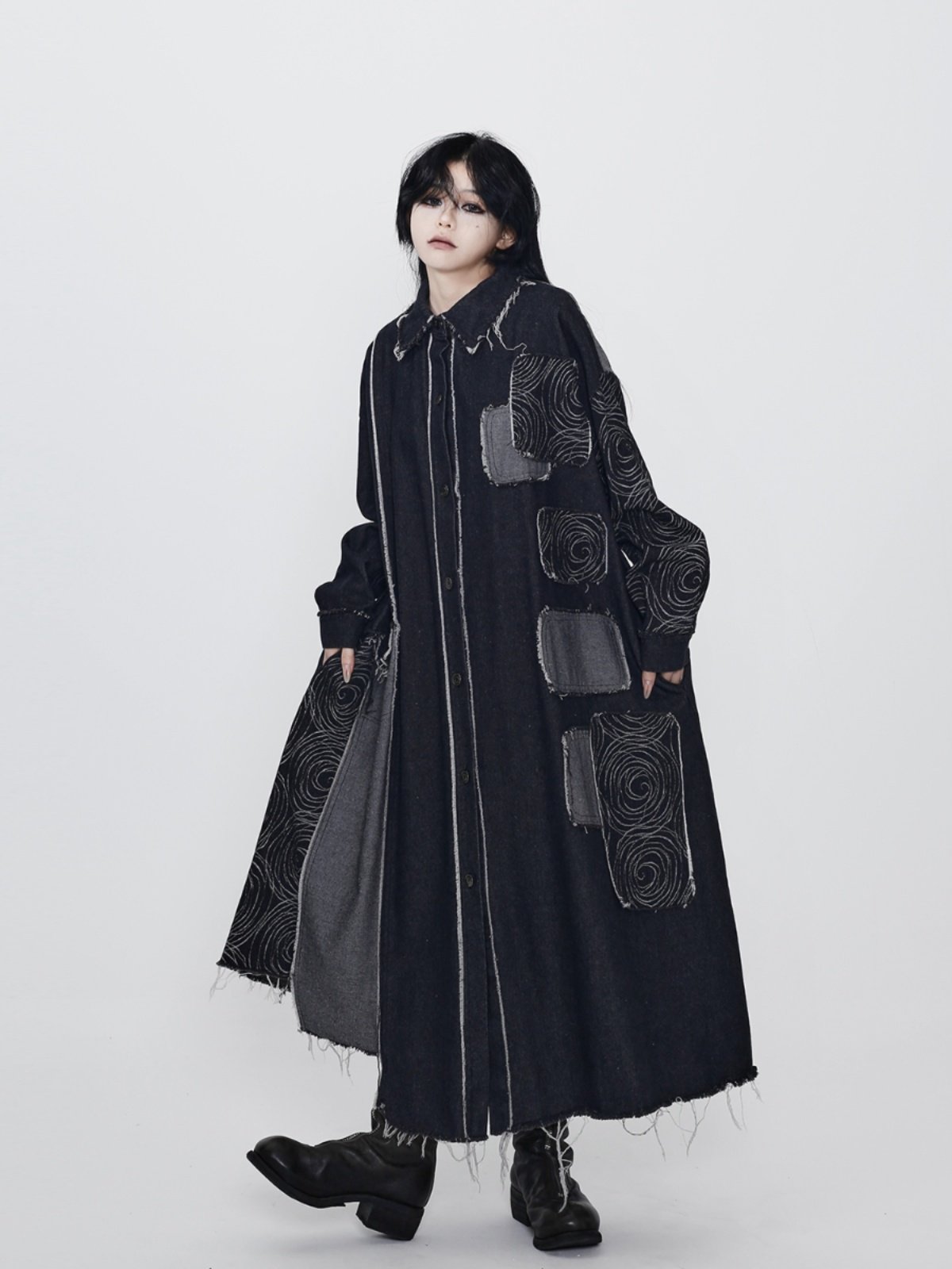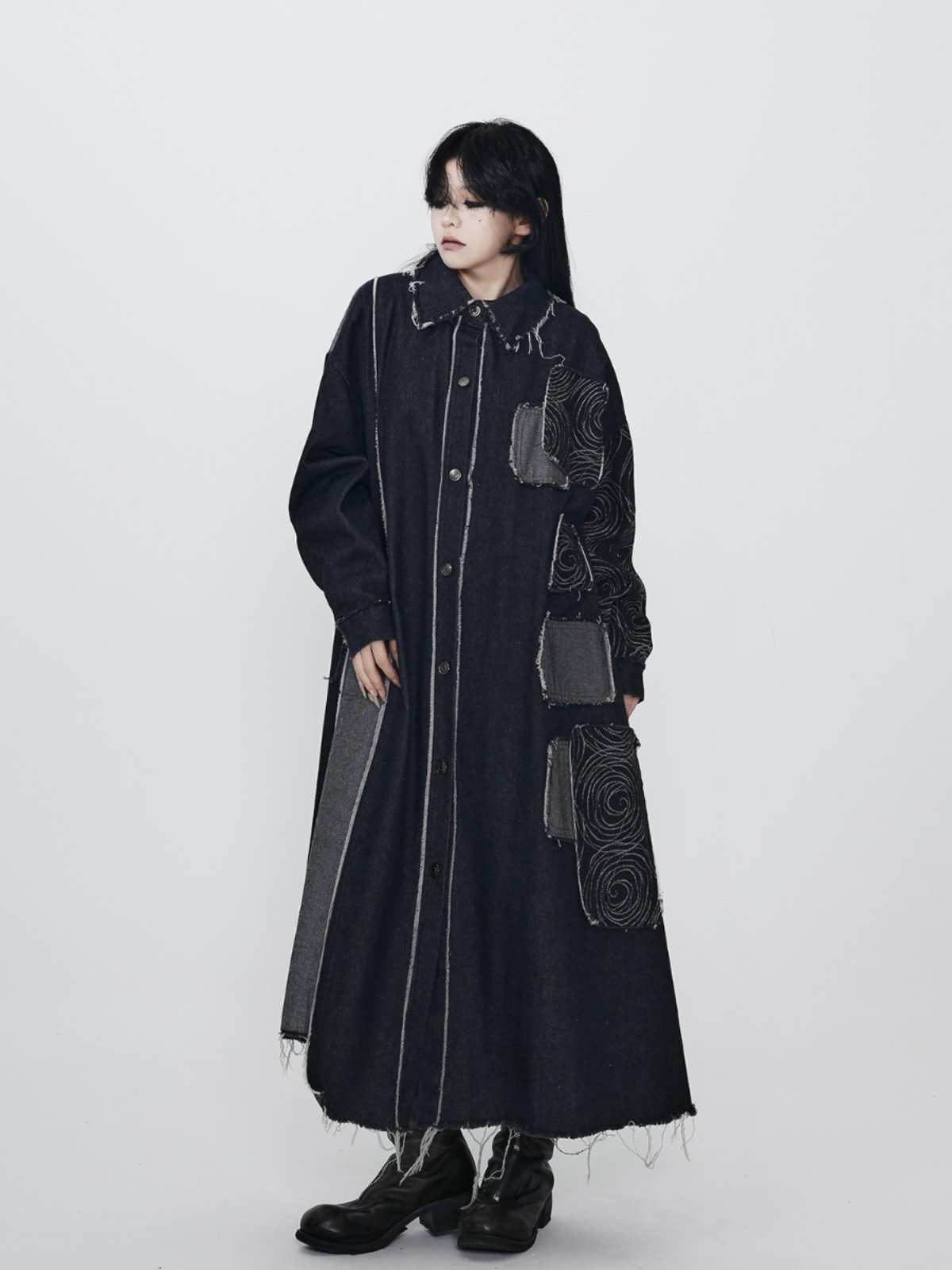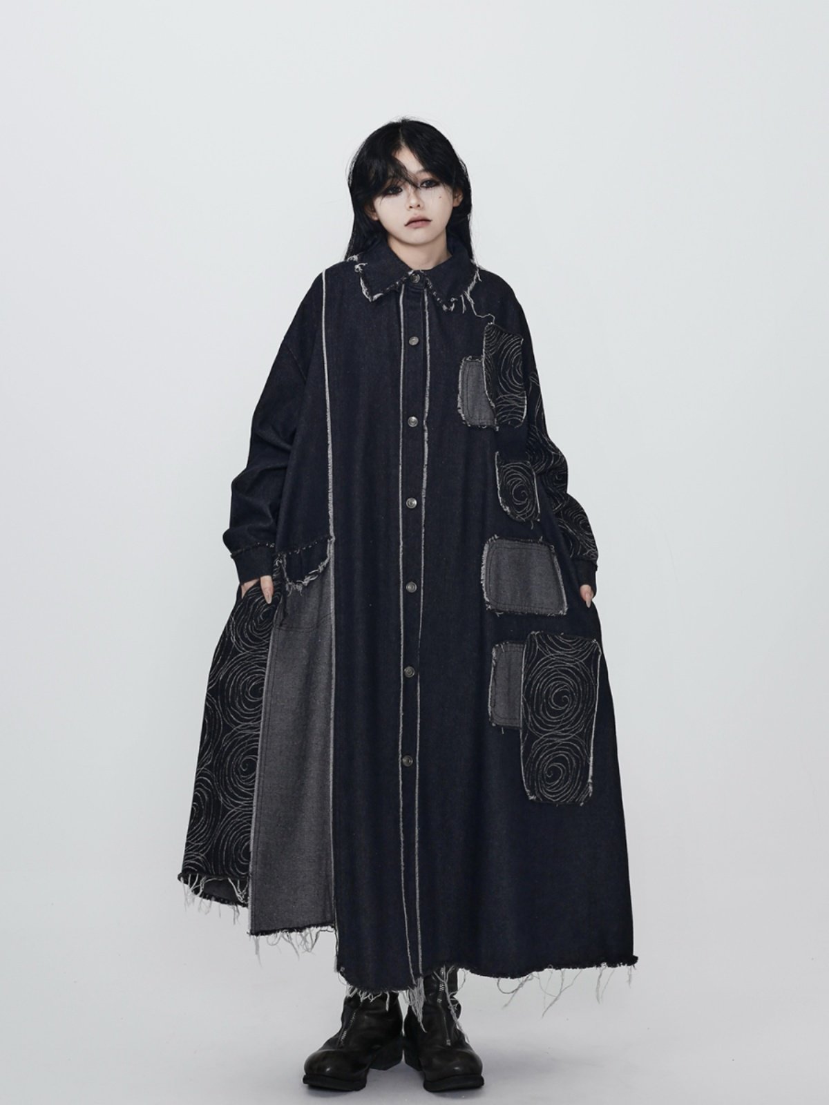 【ワンピース】春 秋 冬 ダーククール系 デニムトレンチコート ワンピース 【AHシリーズ】