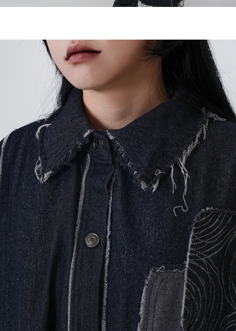 【トップス】春秋冬 Oversize レトロ 刺繍 ゆったり フード付き デニム パーカー【FCシリーズ】【15~20日発送】