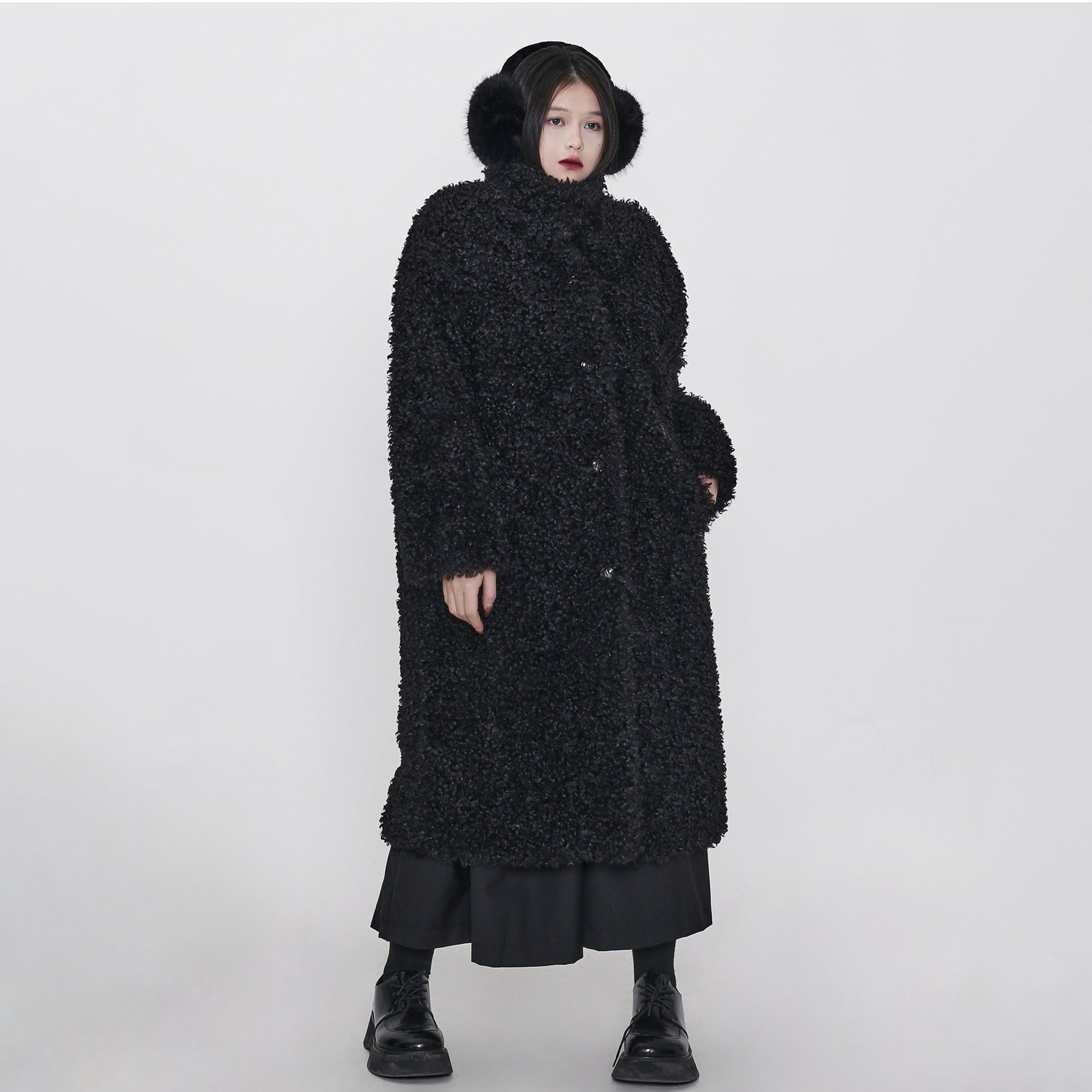 【アウター】冬新作 フェイクシープファー 立ち襟 ゆったりロング中綿コート レディース 気品ある上品デザイン 綿入れコート【AHシリーズ】