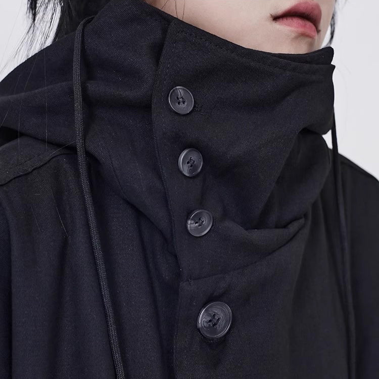 【アウター】秋冬 暗黒系デザイン ミディ丈 ゆったり大きめサイズ フード付きトレンチコート/綿入れコート レディース【AHシリーズ】