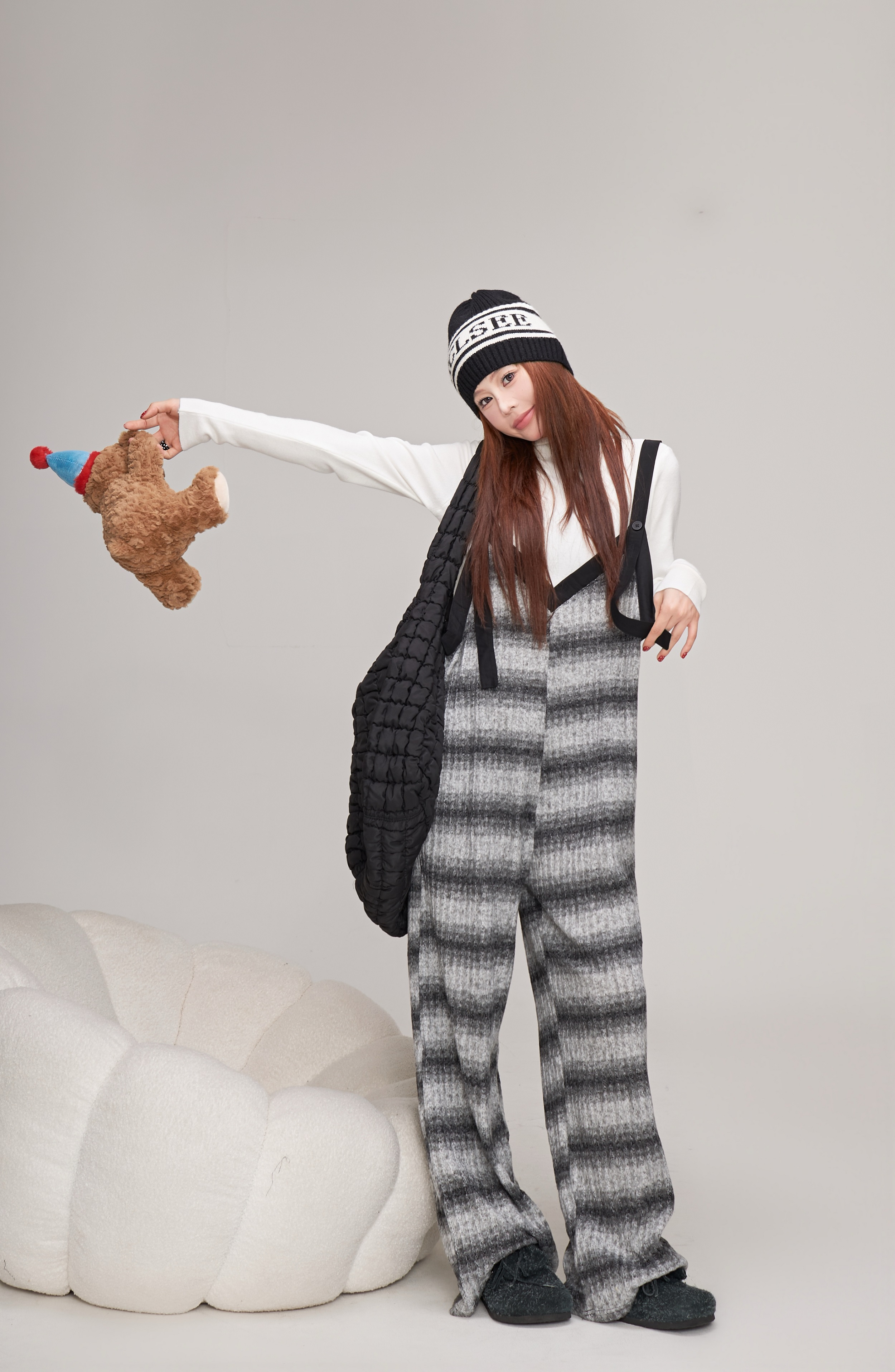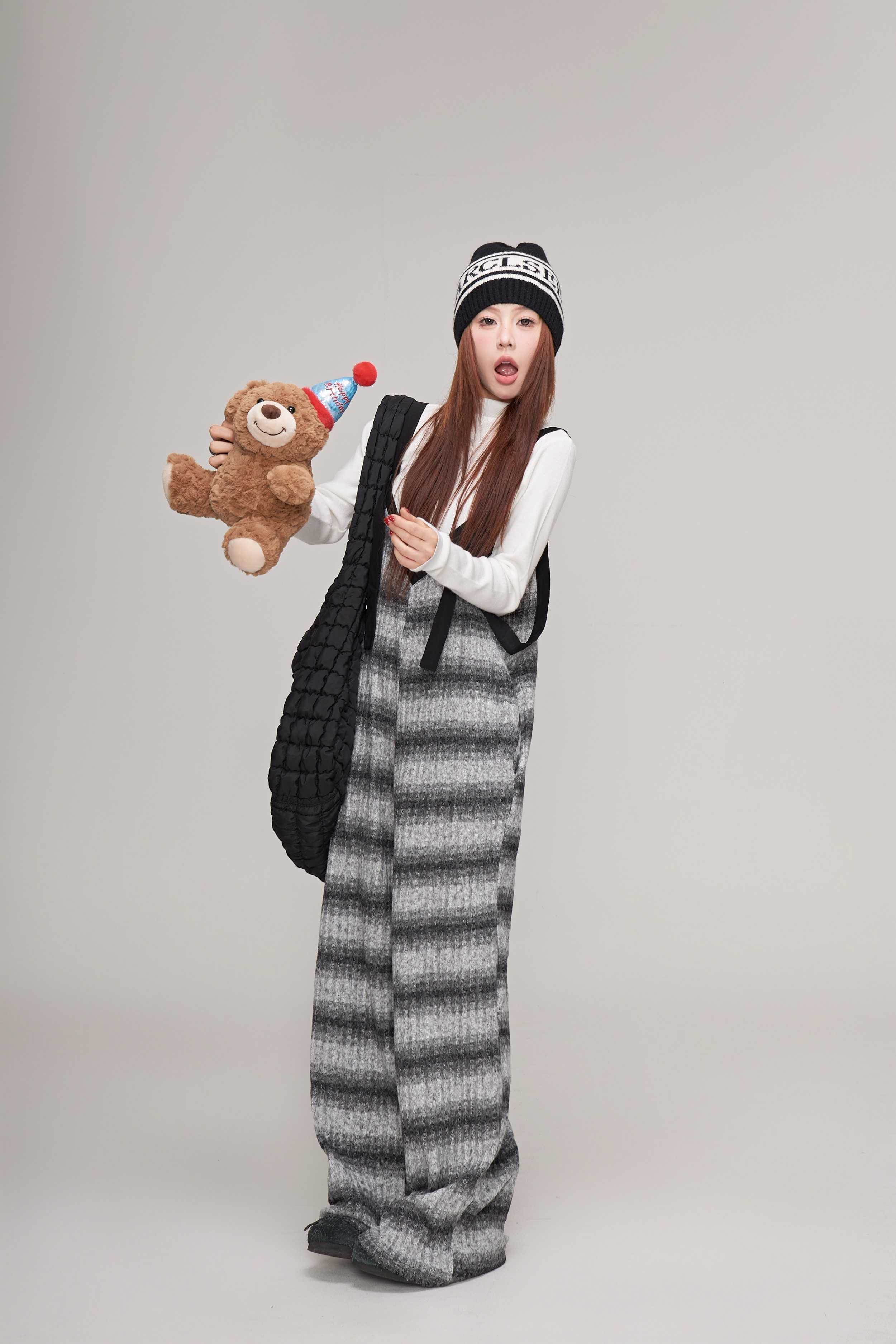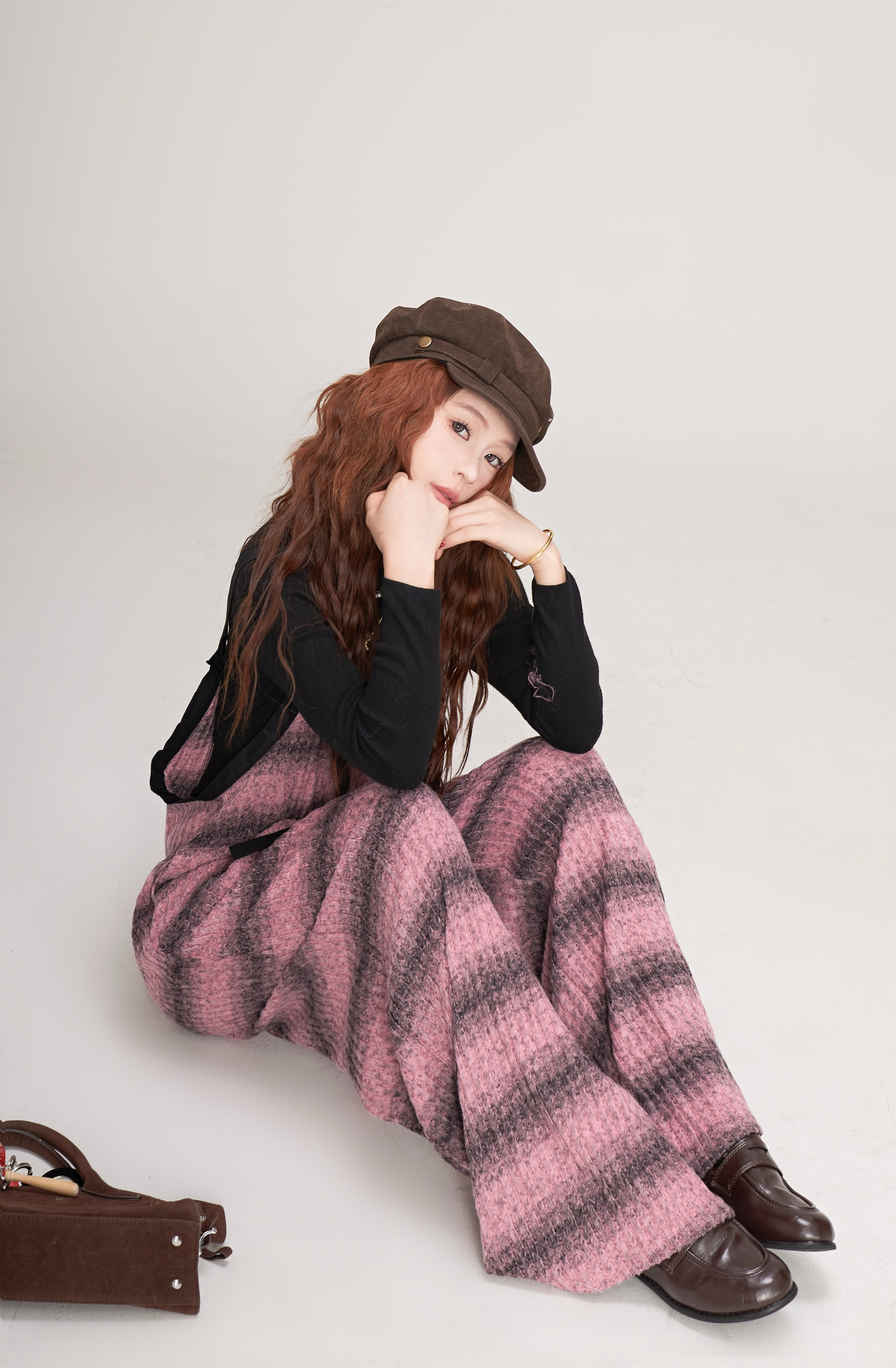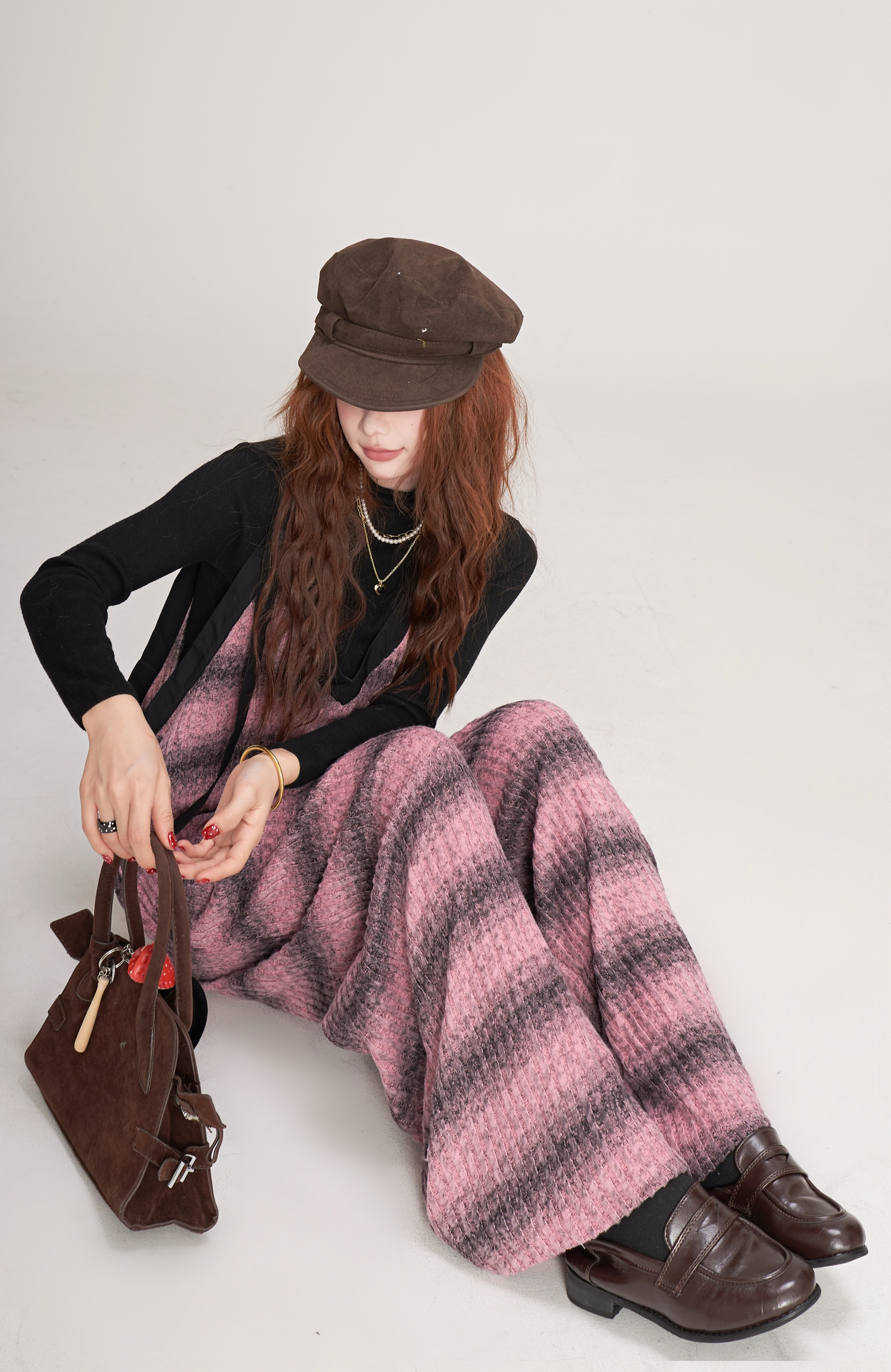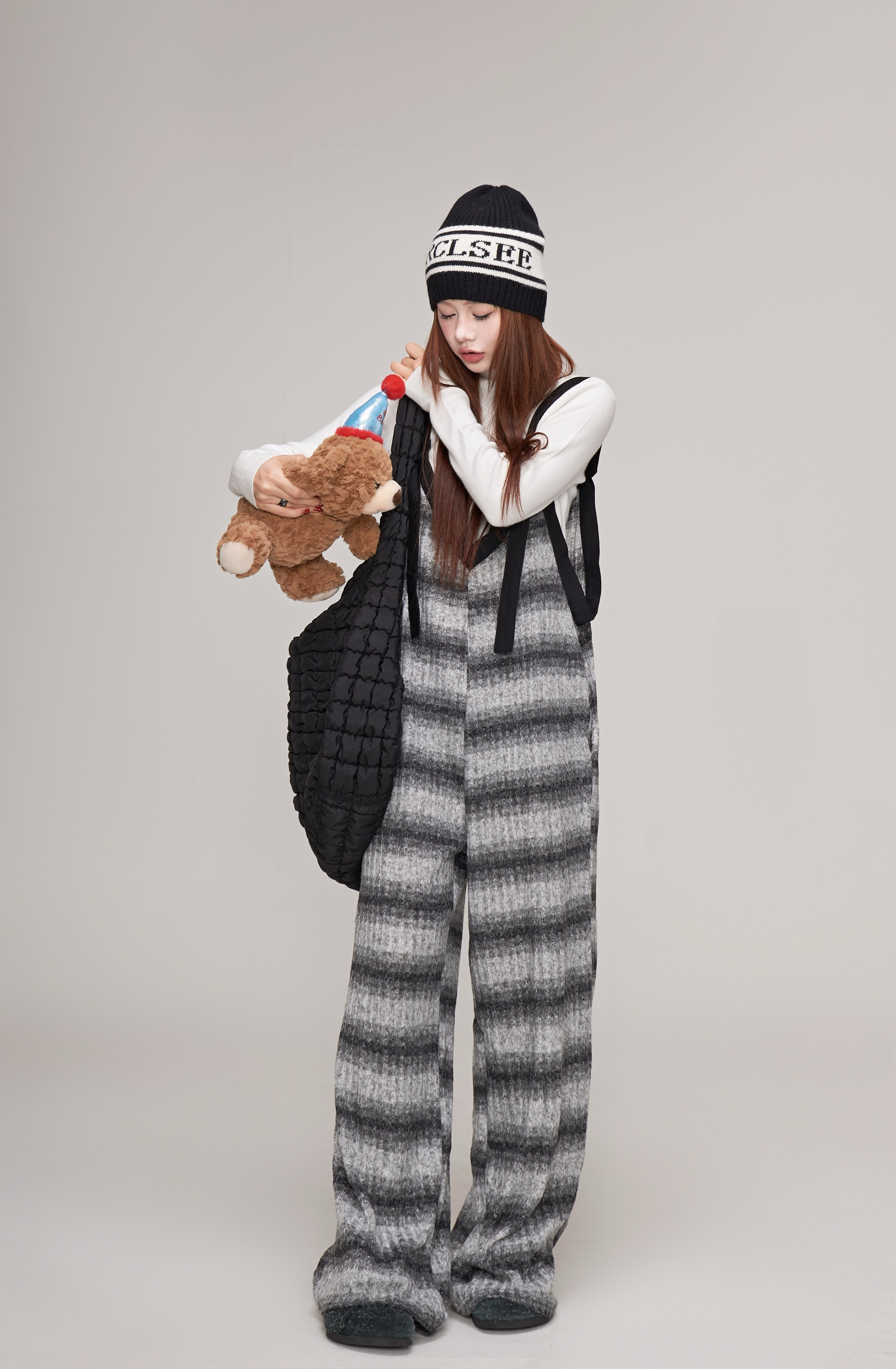 【ボトムス】秋冬 ゆったりVネック ニットサロペット グラデーション ワイドパンツ レディース オールインワン【SHシリーズ】