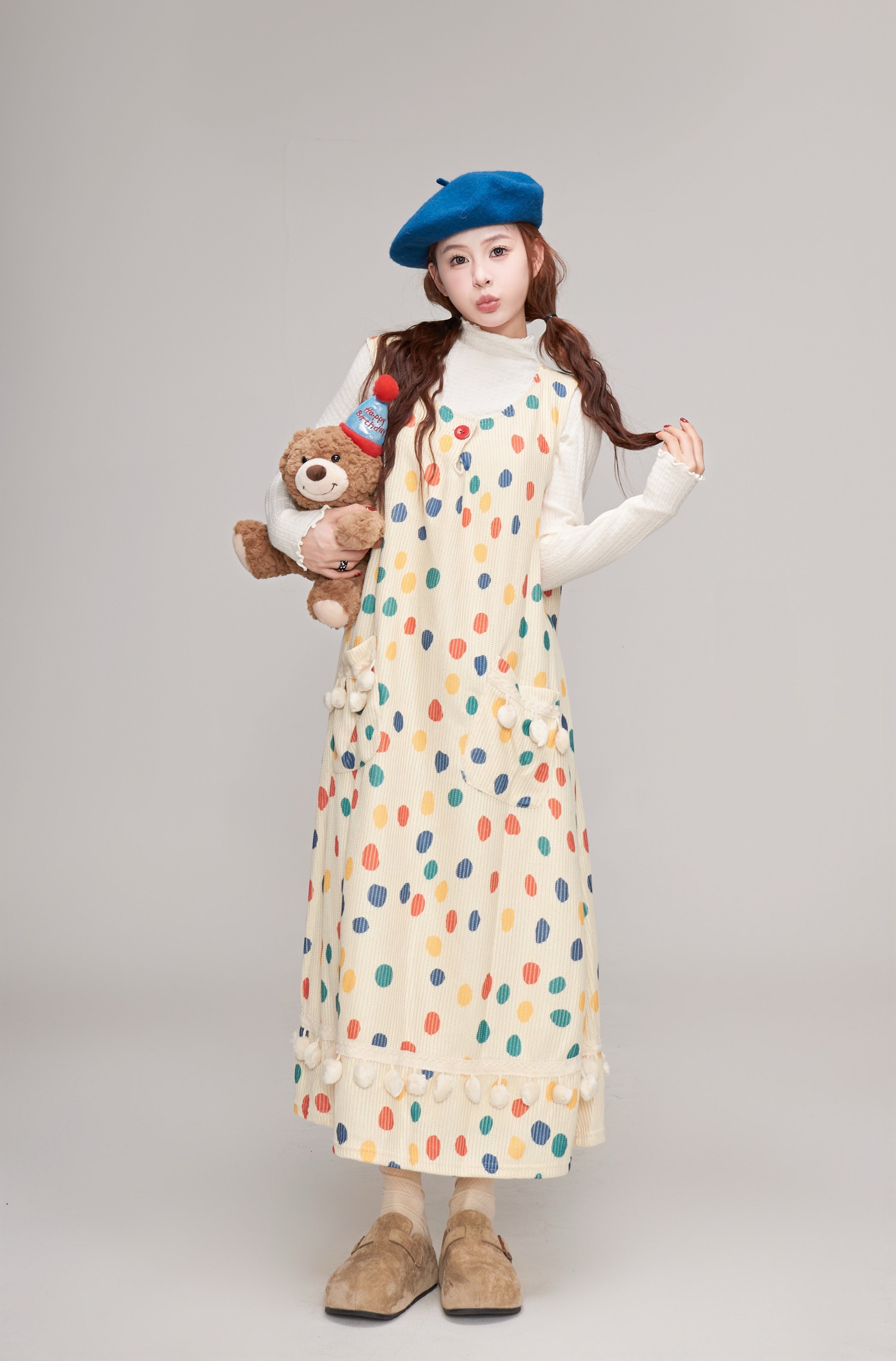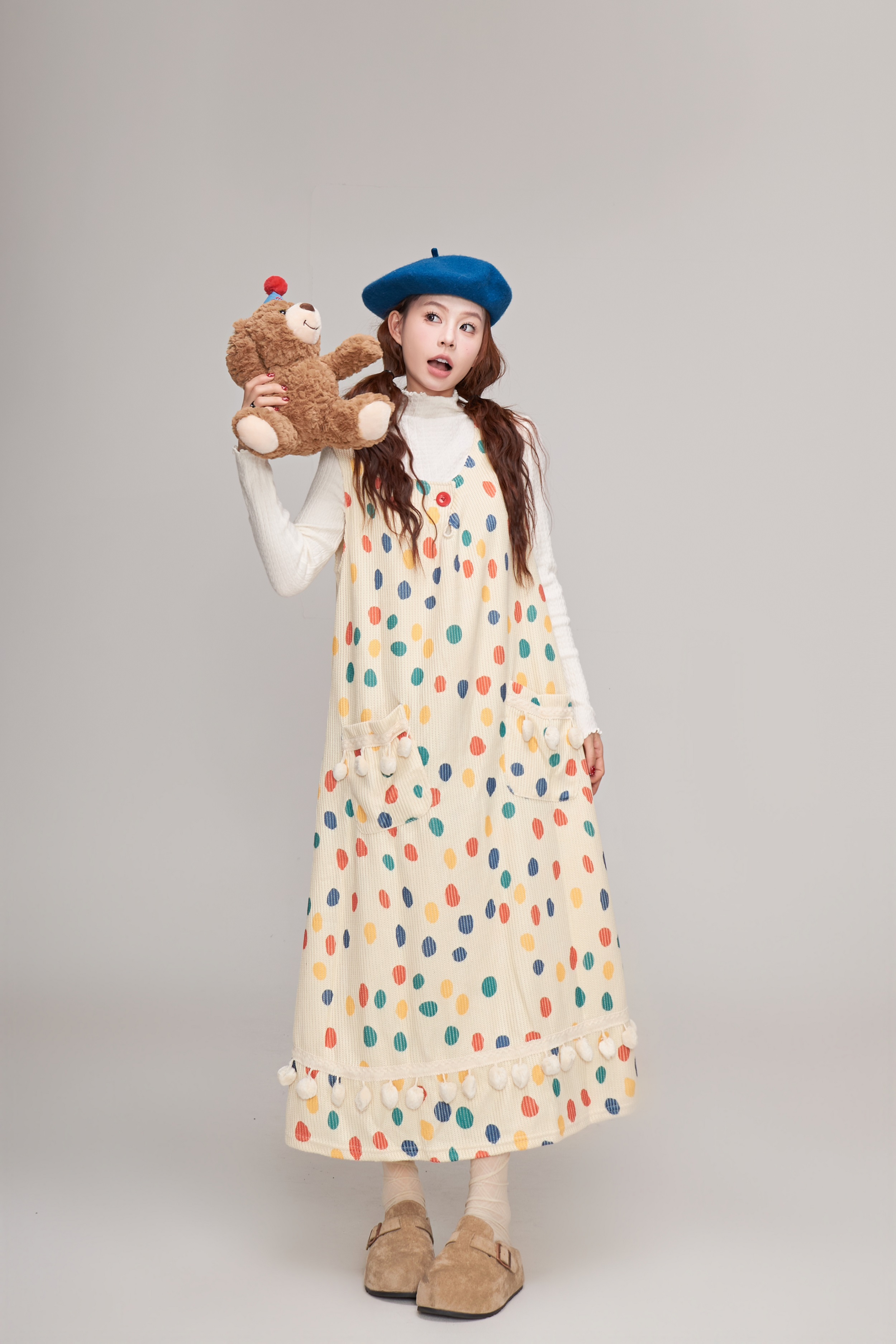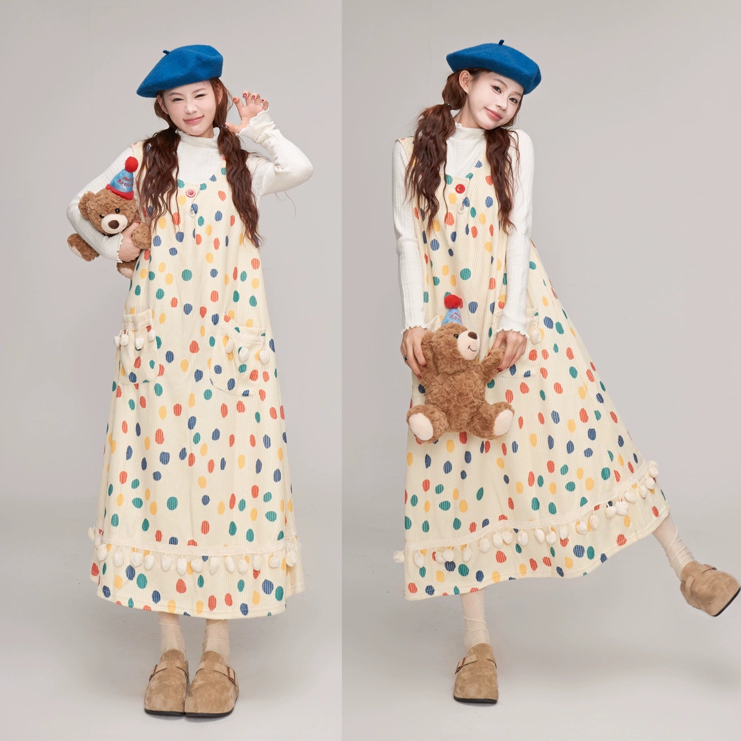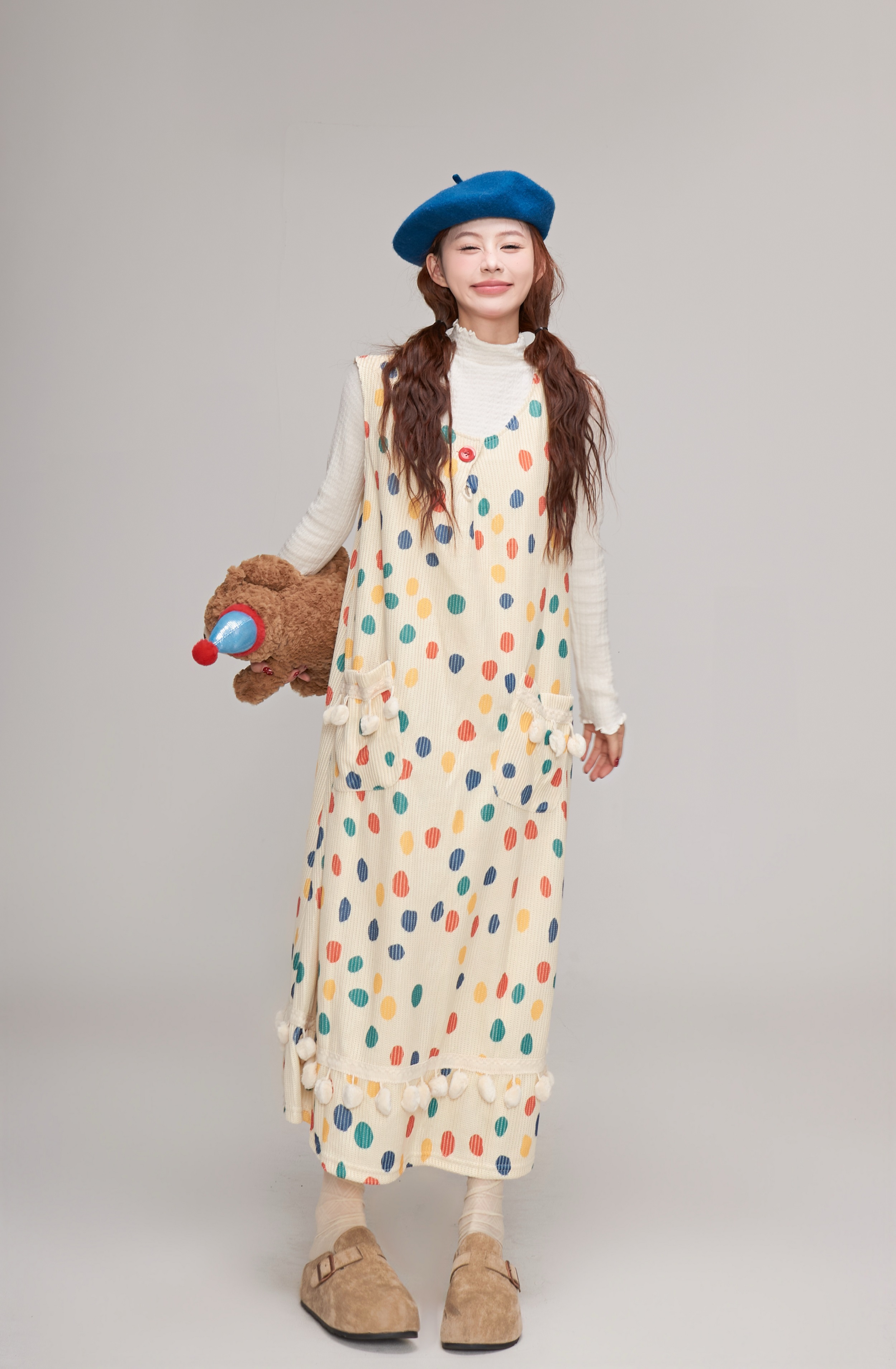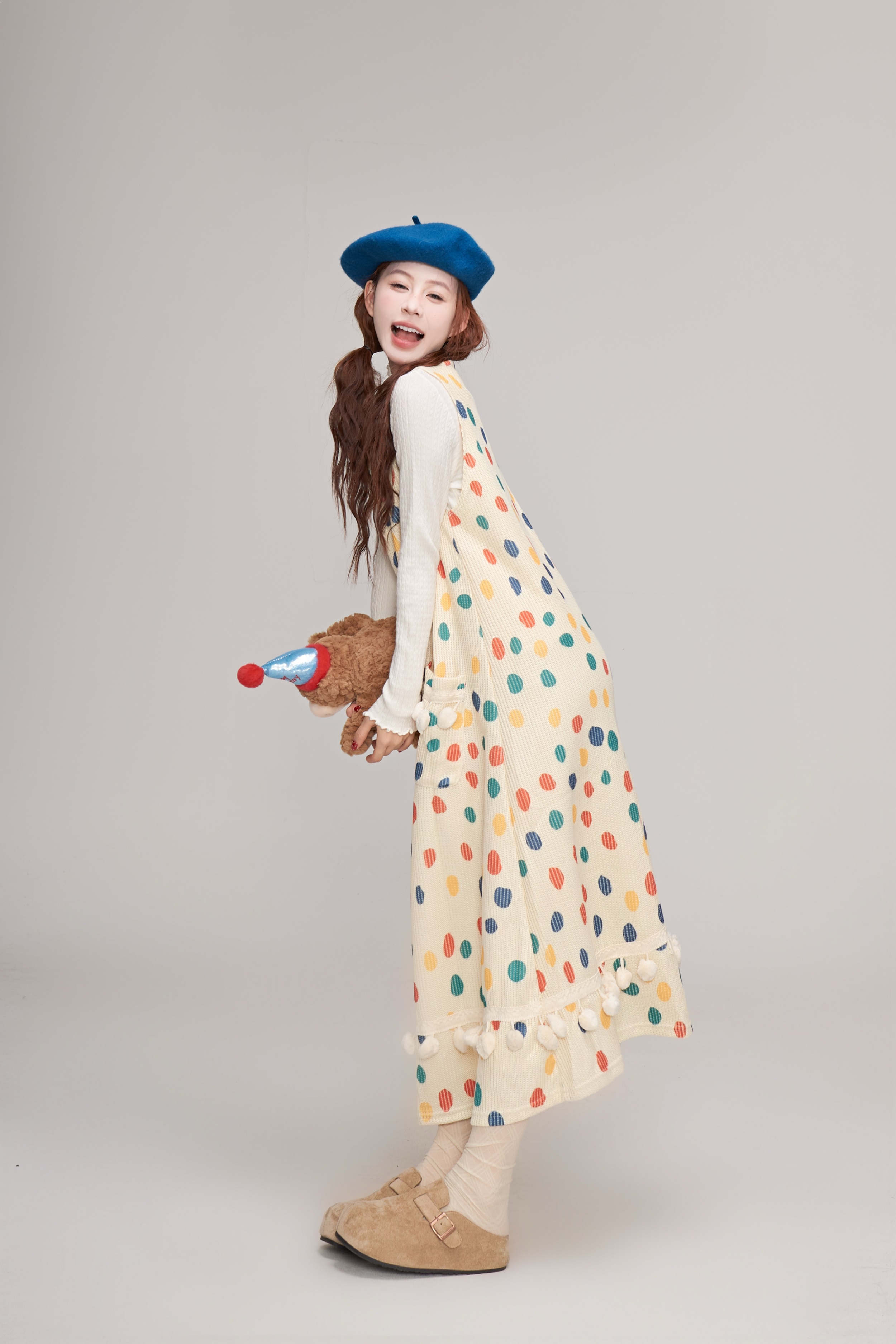 【商品名】【ワンピース】秋冬 ゆったり可愛い ドット柄 サロペットワンピース レディース Aラインデザイン ノースリーブワンピース【JZシリーズ】【SHシリーズ】