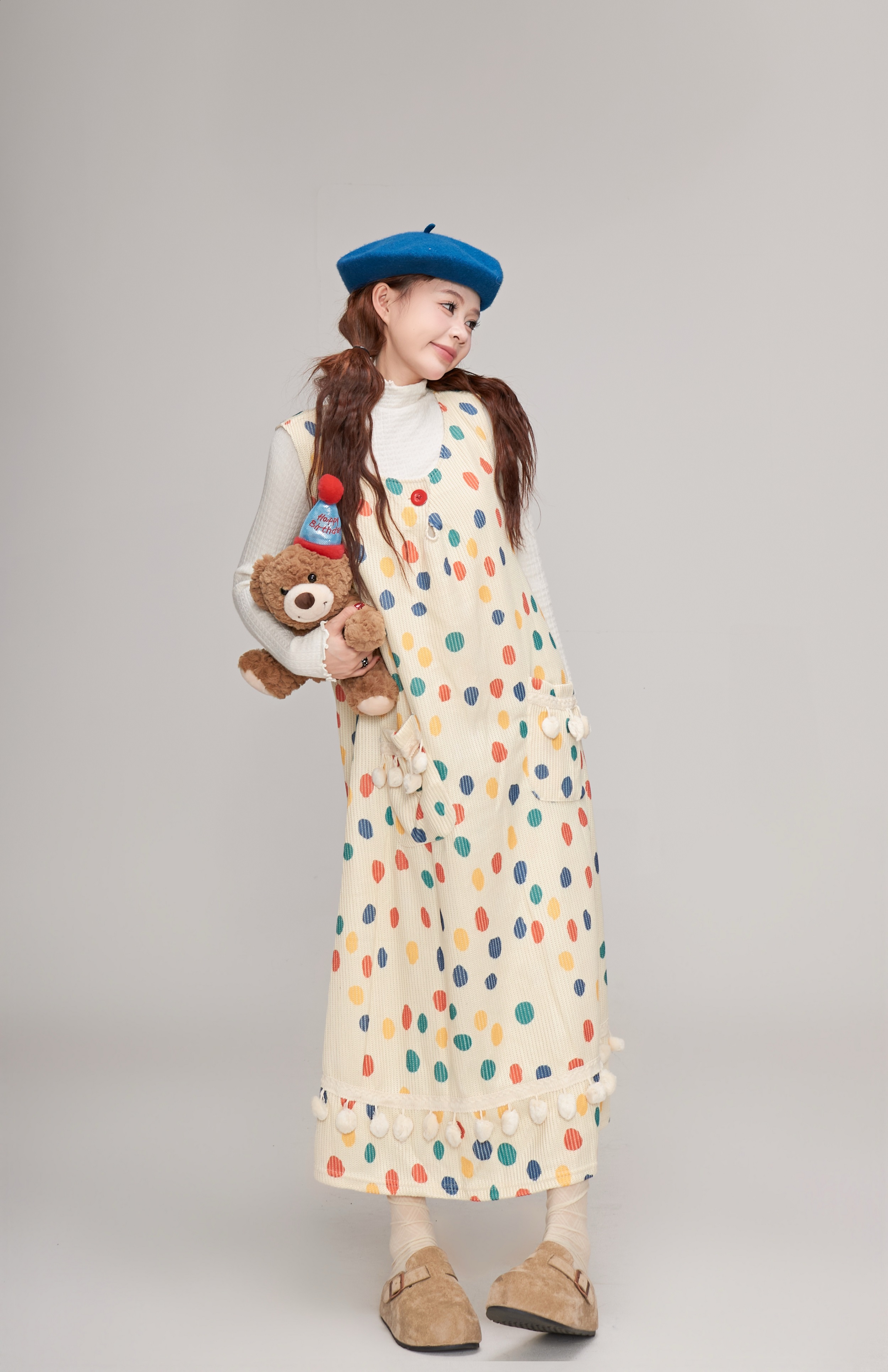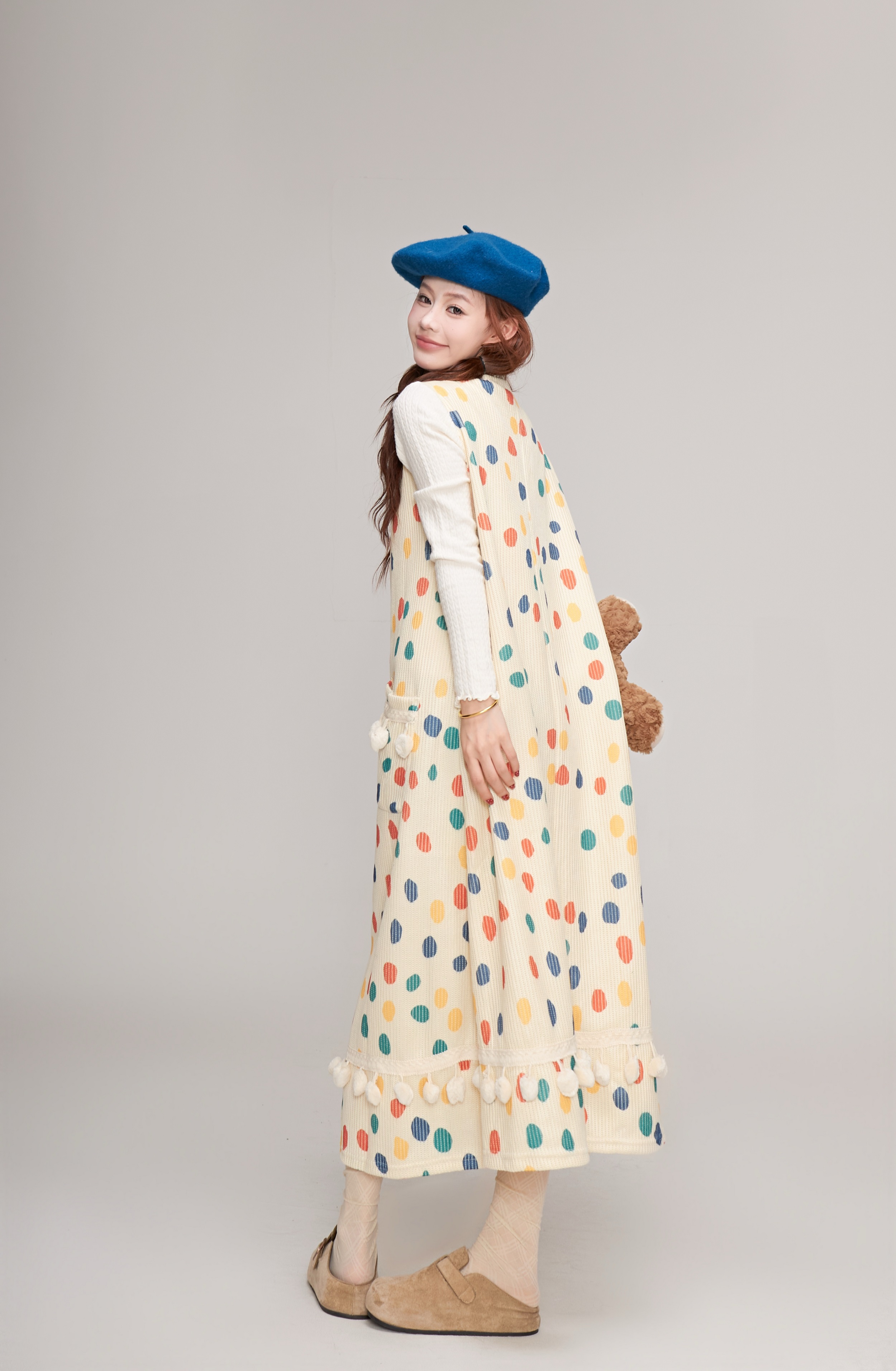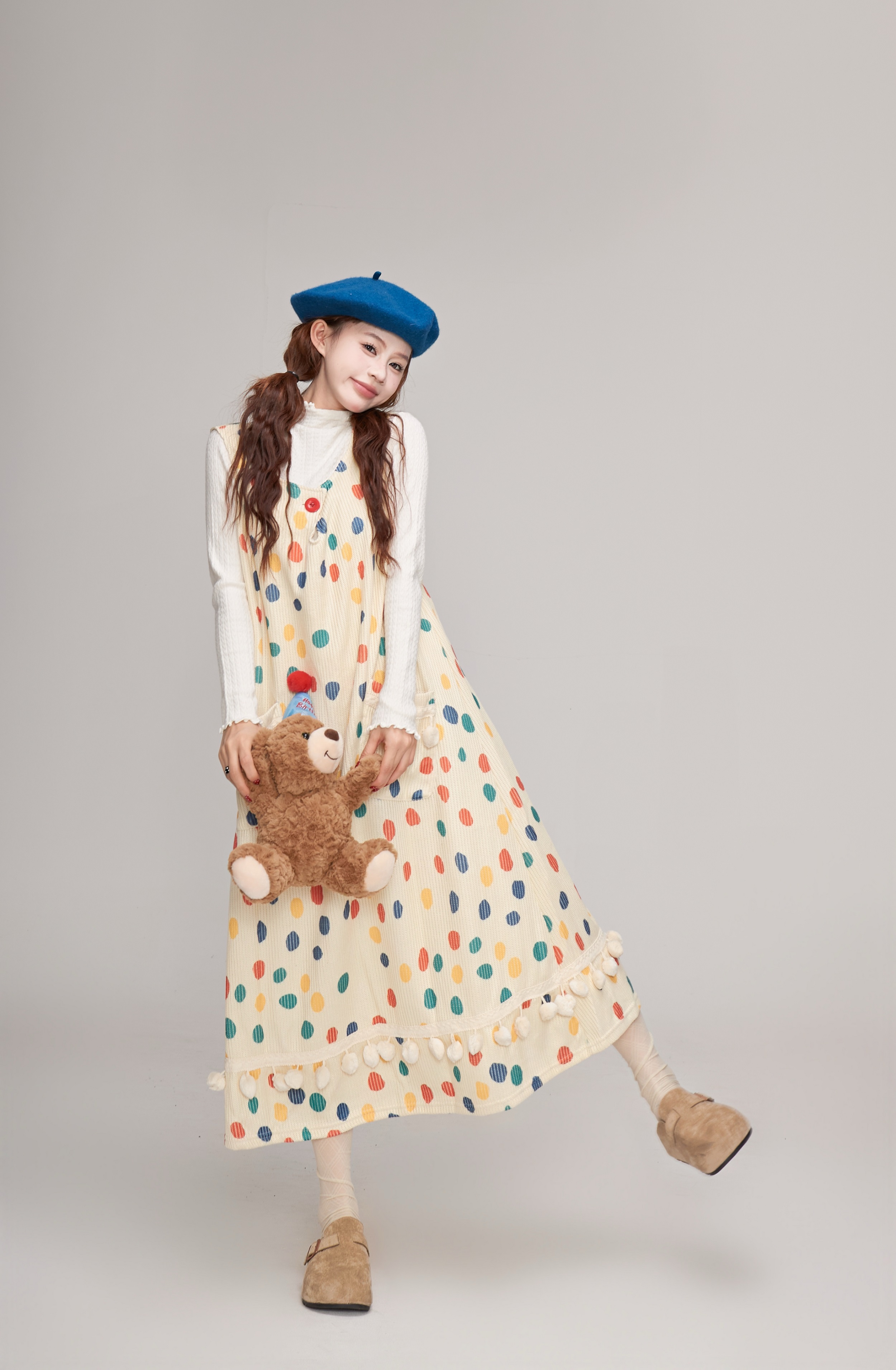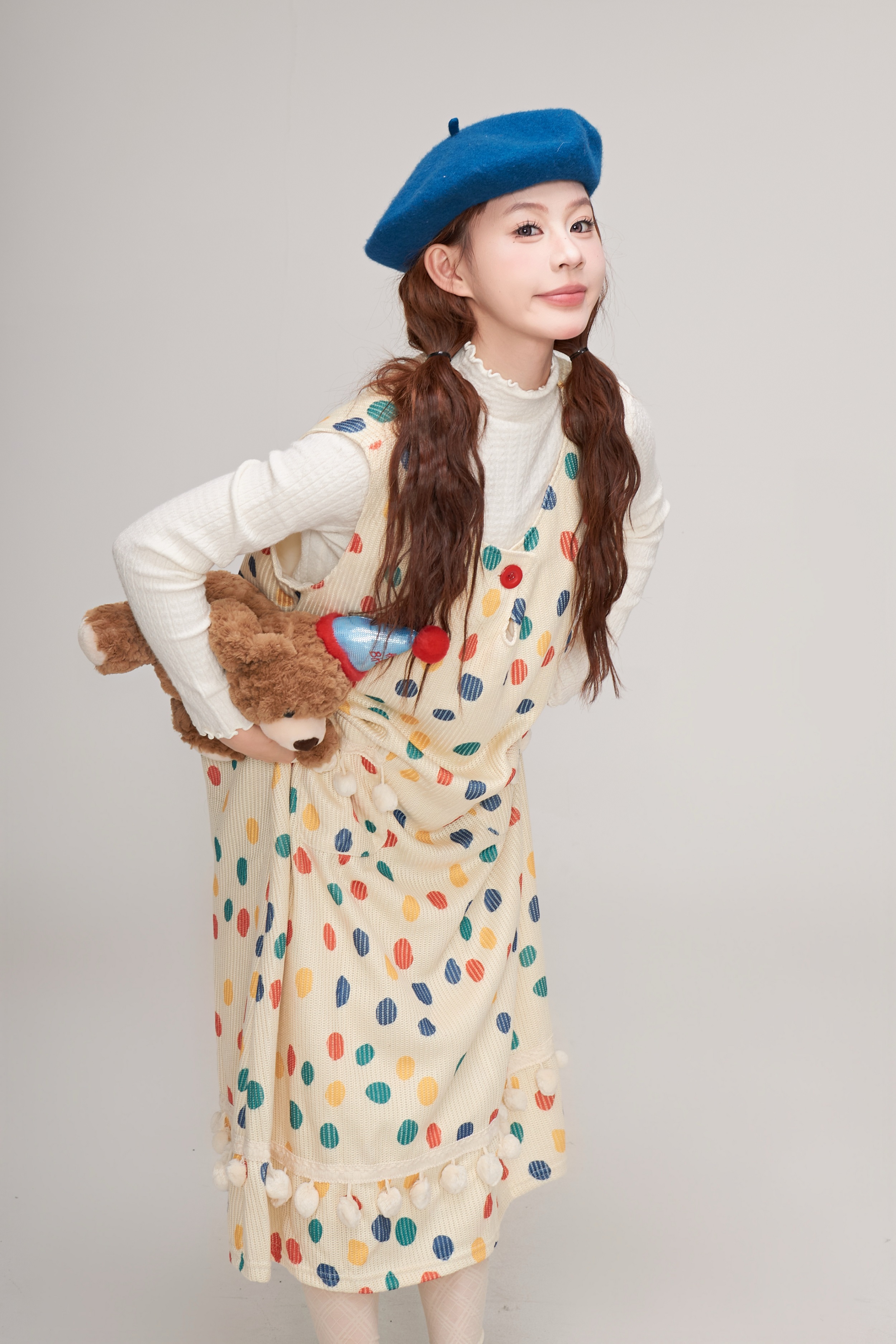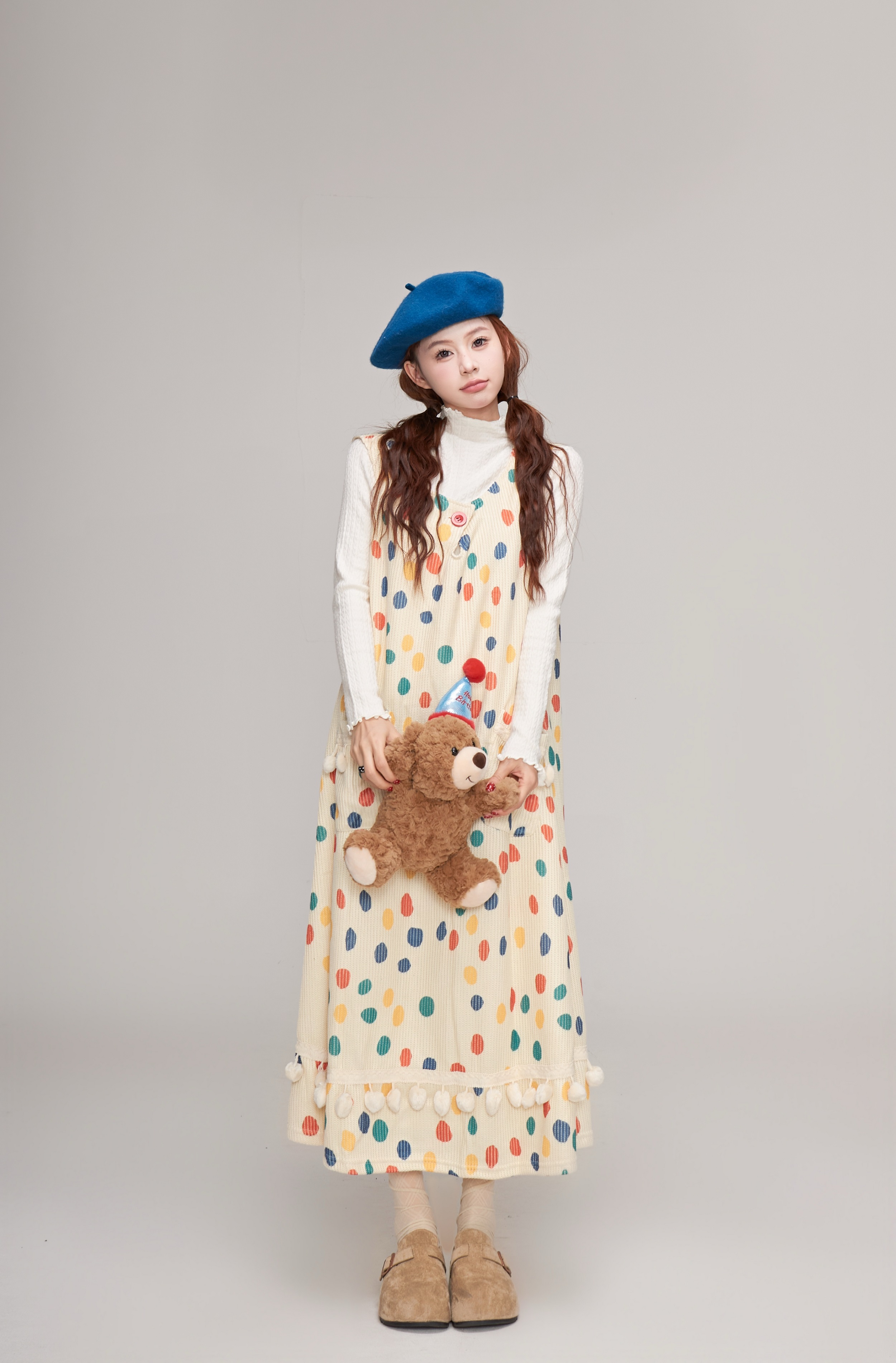 【商品名】【ワンピース】秋冬 ゆったり可愛い ドット柄 サロペットワンピース レディース Aラインデザイン ノースリーブワンピース【JZシリーズ】【SHシリーズ】