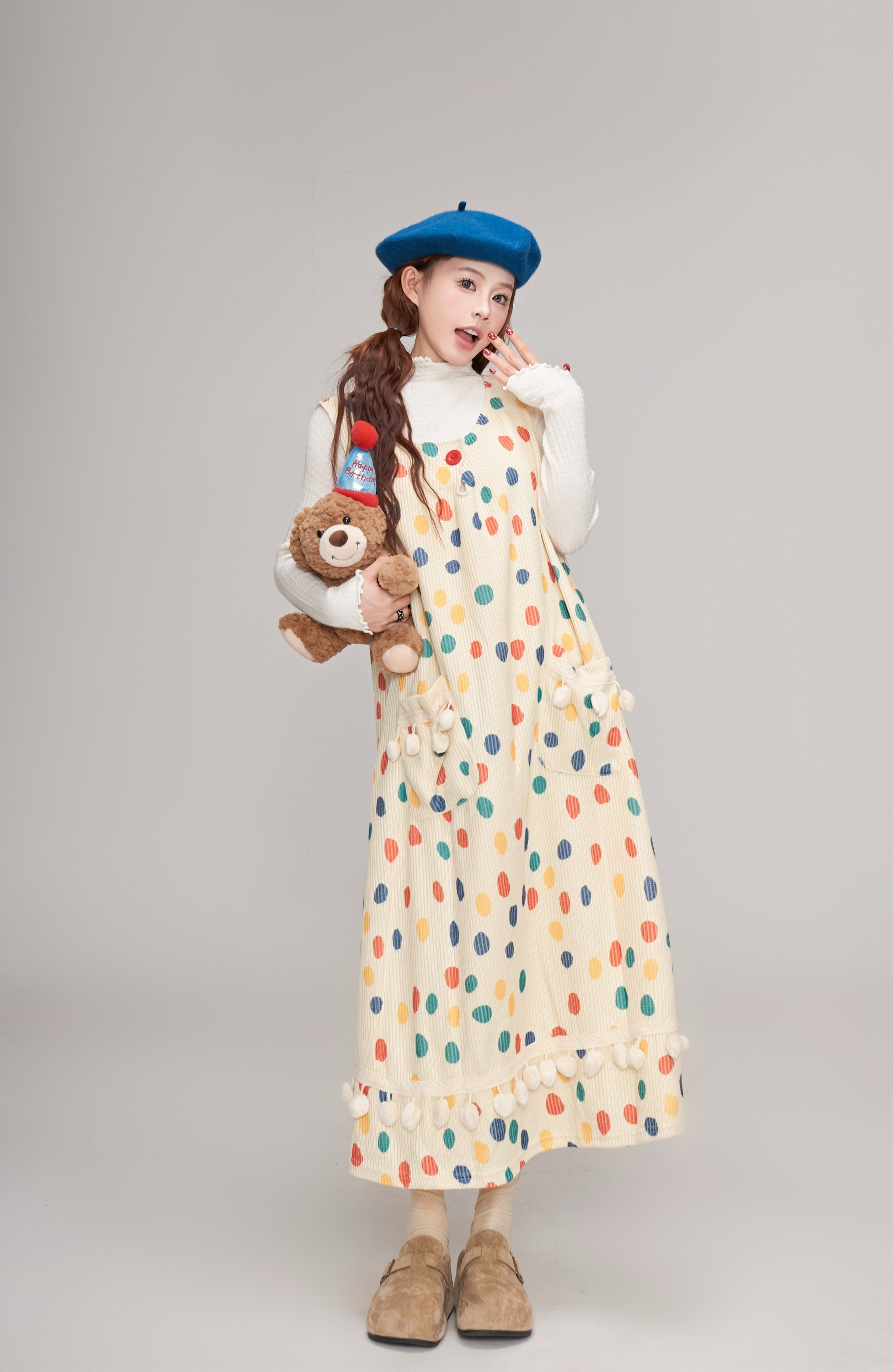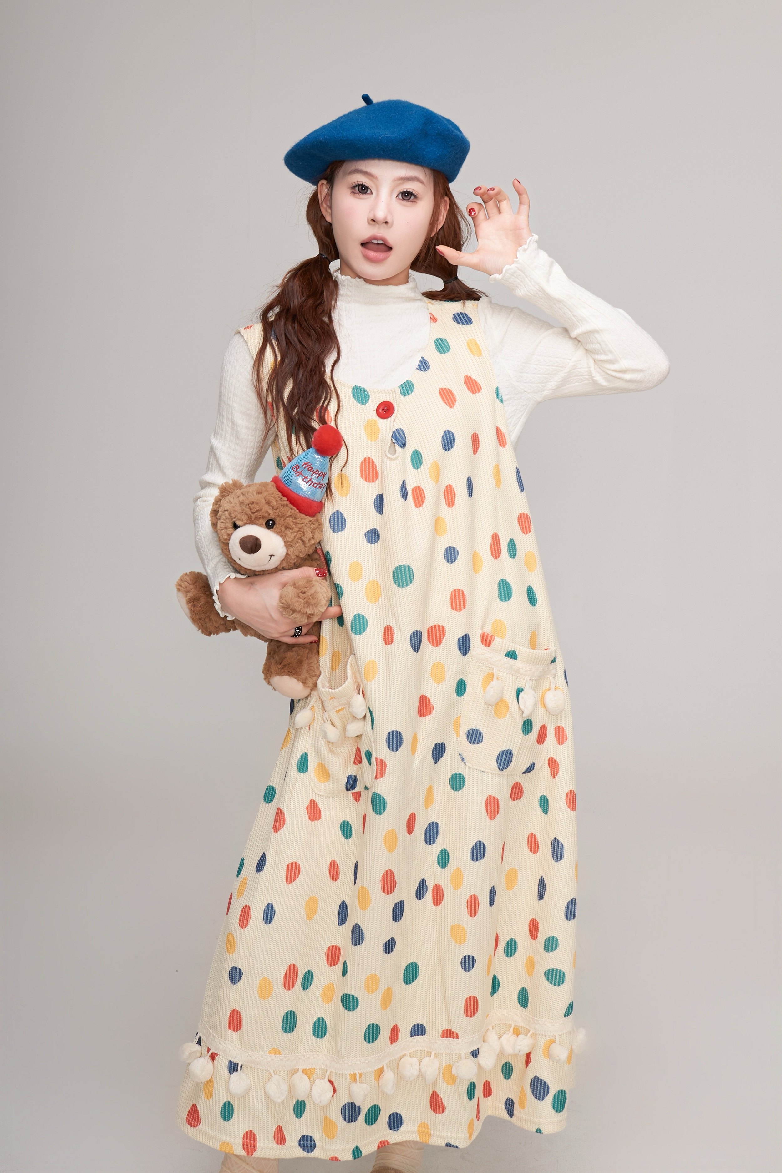 【ワンピース】秋冬 ゆったり可愛い ドット柄 サロペットワンピース レディース Aラインデザイン ノースリーブワンピース【JZシリーズ】【SHシリーズ】